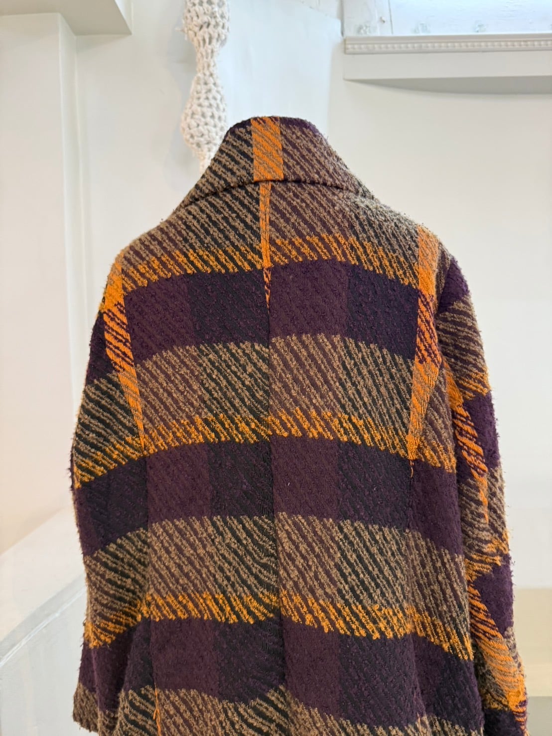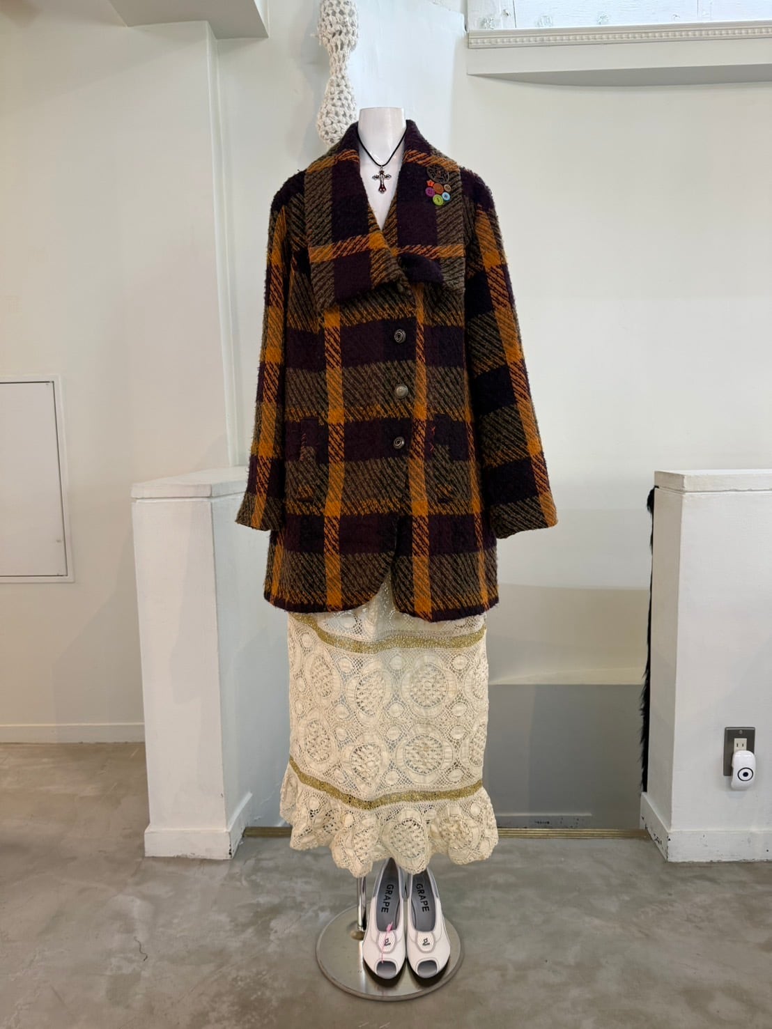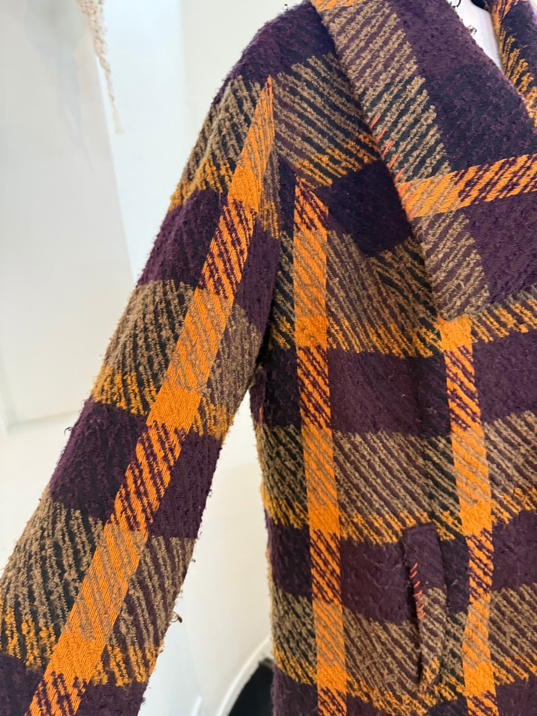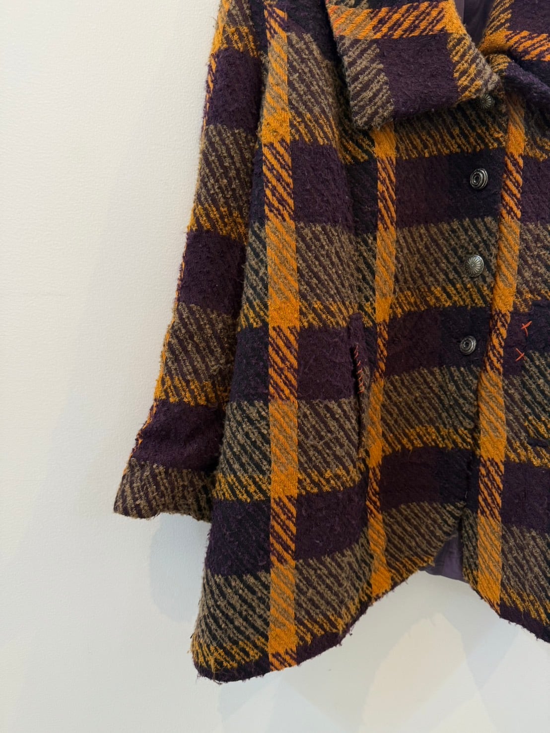 素材: 95%Polyester 5%Wool サイズ: 肩幅41cm 袖丈65cm 身幅60cm 身丈87cm 衿幅18cm(最大) ダメージ: 写真16枚目のような全体的に毛羽立ちがあります。