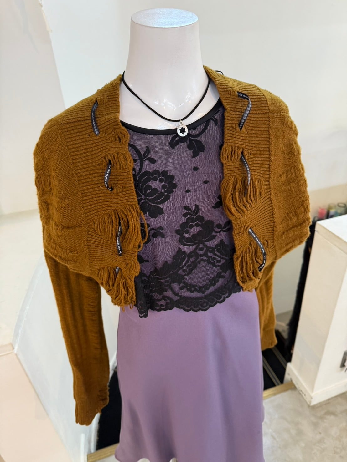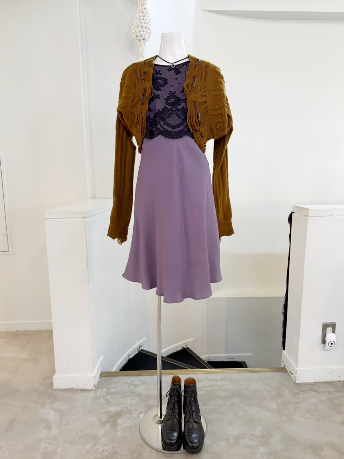 素材: 87%Acetate 13%Nylon サイズ: 肩幅28cm 身幅39cm 身丈89cm ダメージ: 写真15,16枚のような汚れがあります。 Made in U.S.A