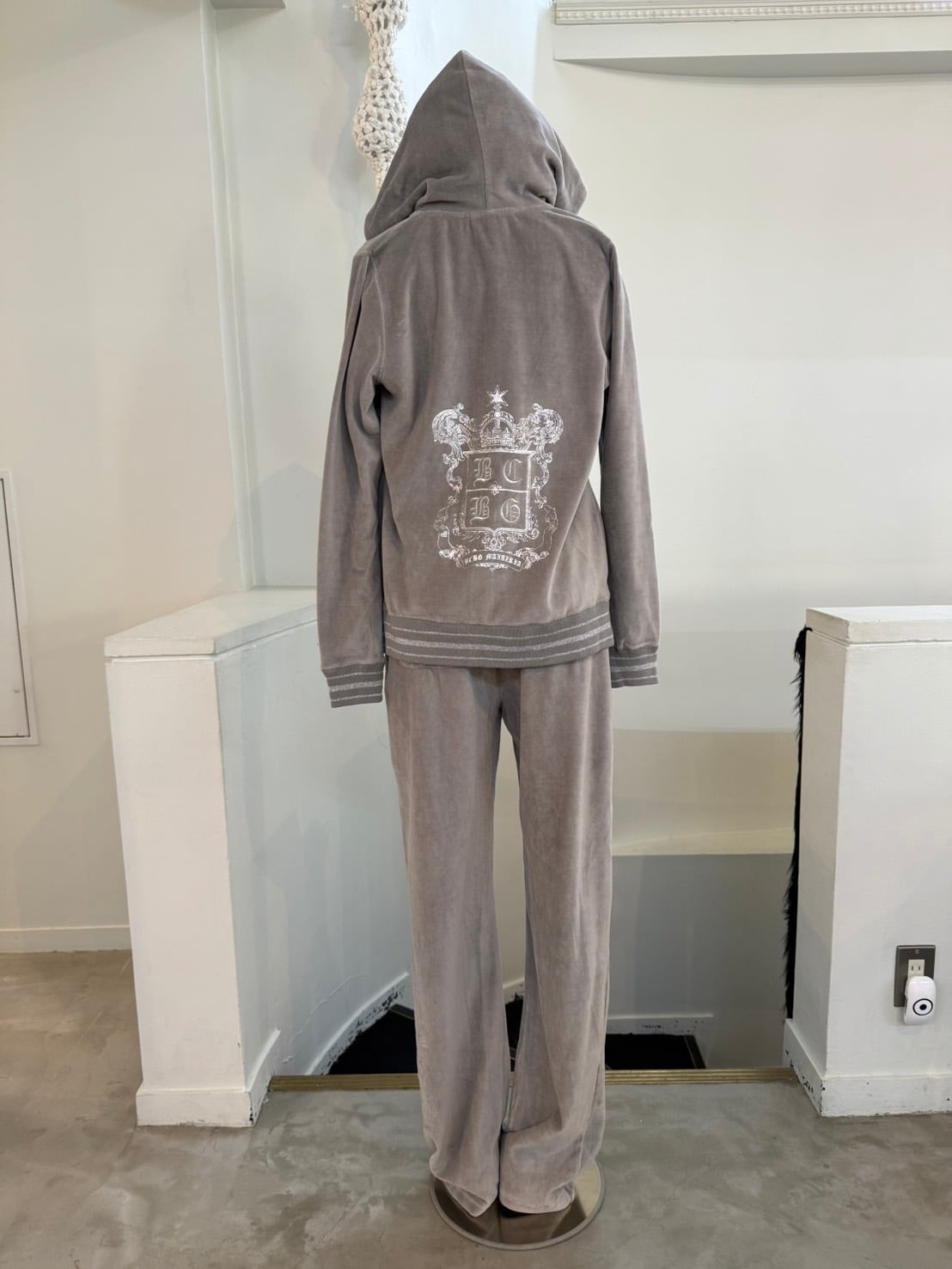 素材: 80%Cotton 20%Polyester サイズ: M(表記) 肩幅39cm 袖丈65cm 身幅49cm 身丈62cm フード丈19cm ウエスト幅39cm 股上25.5cm 股下85cm わたり幅28cm 裾幅23cm