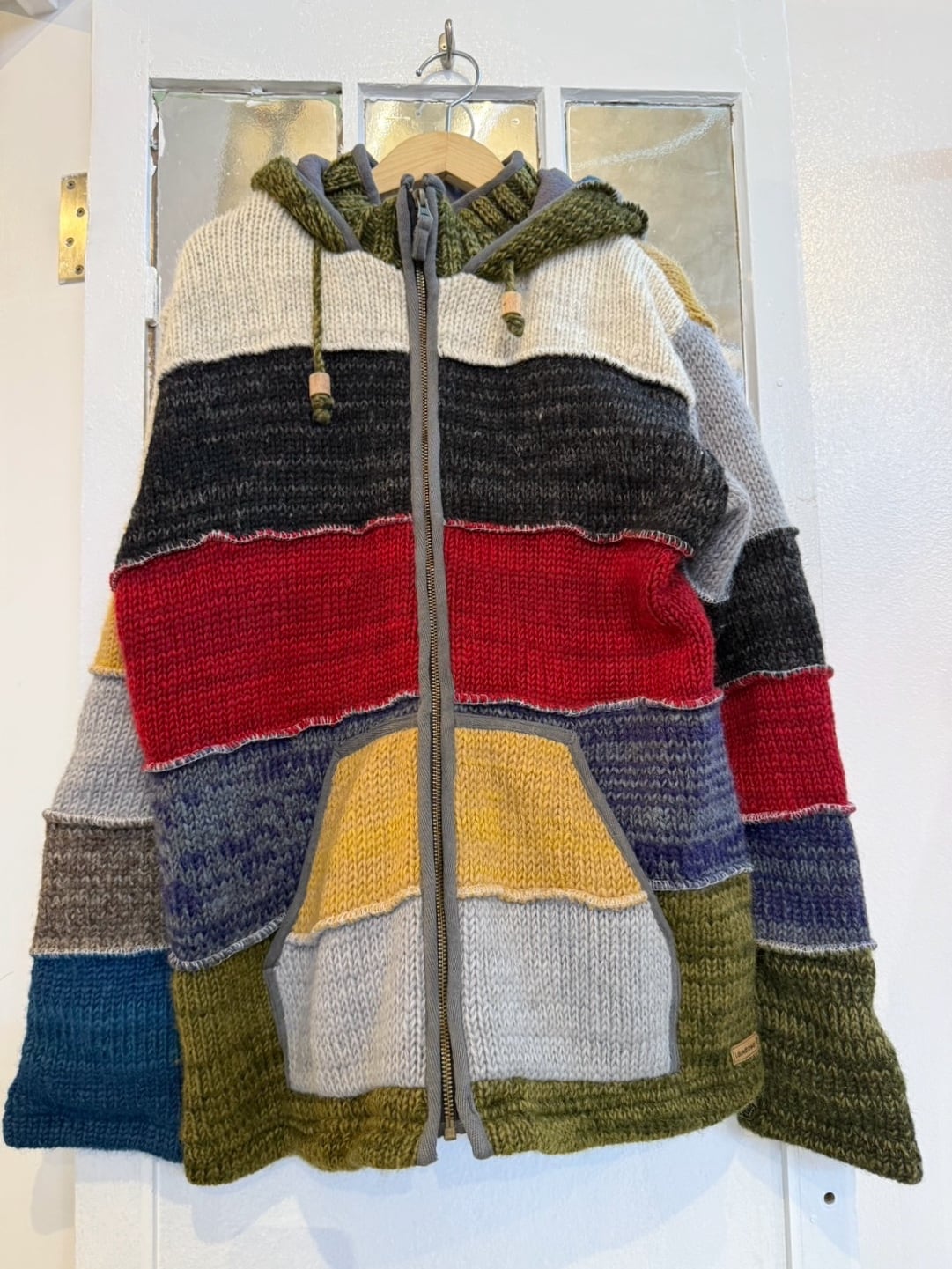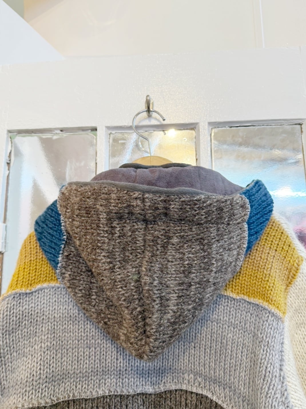 素材: 100%Wool サイズ: M(表記) 肩幅53cm 袖丈61.5cm 身幅62cm 身丈65cm フード丈29cm