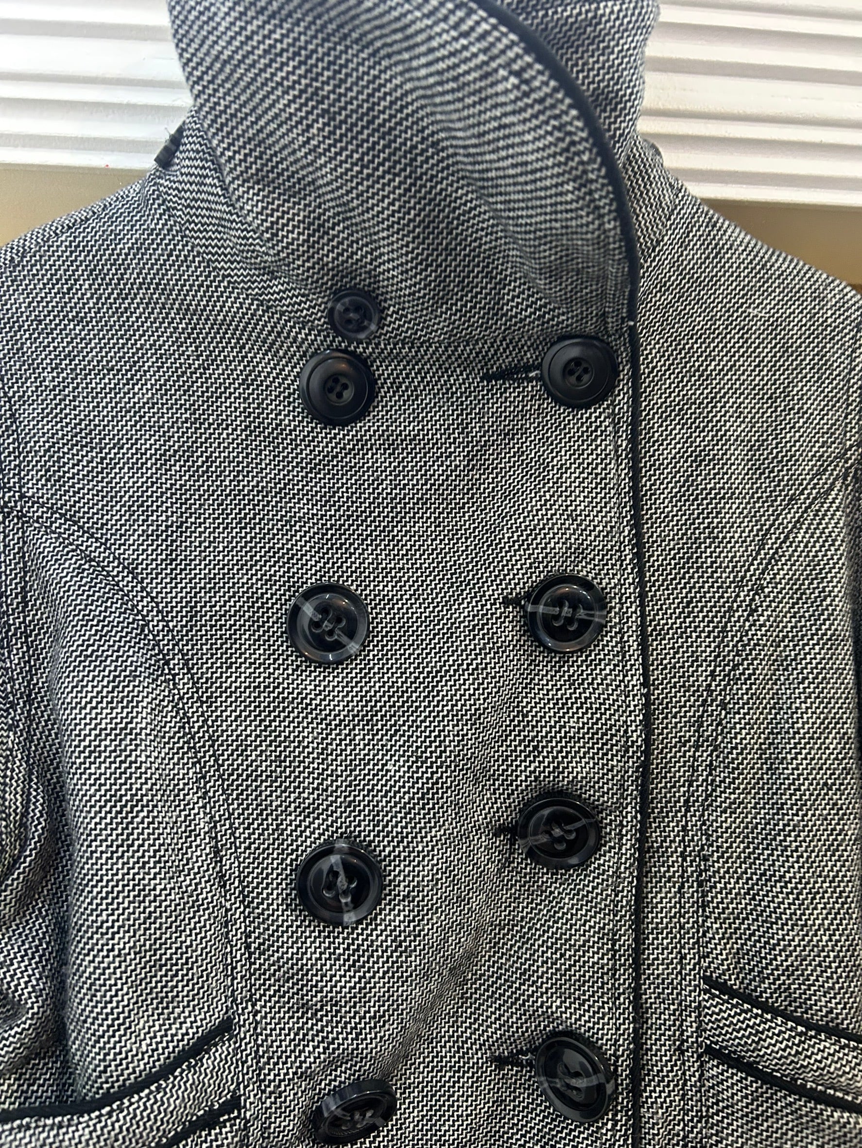 素材: 50%Wool 50%Polyester 内側100%Polyester サイズ: S(表記) 着丈54.5cm 肩幅39cm 身幅50cm 袖丈65.5cm
