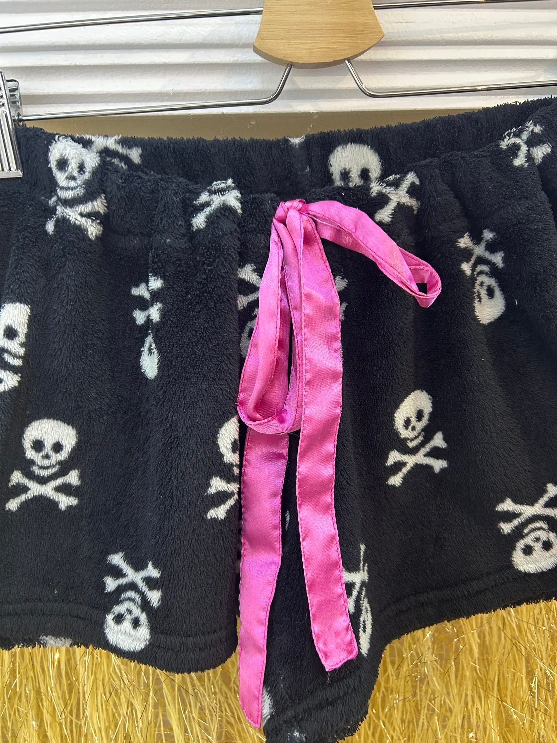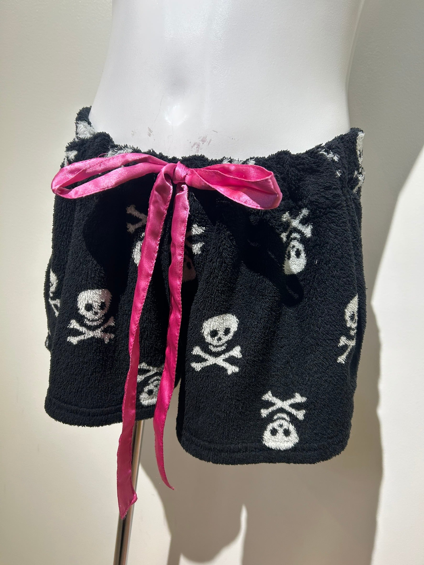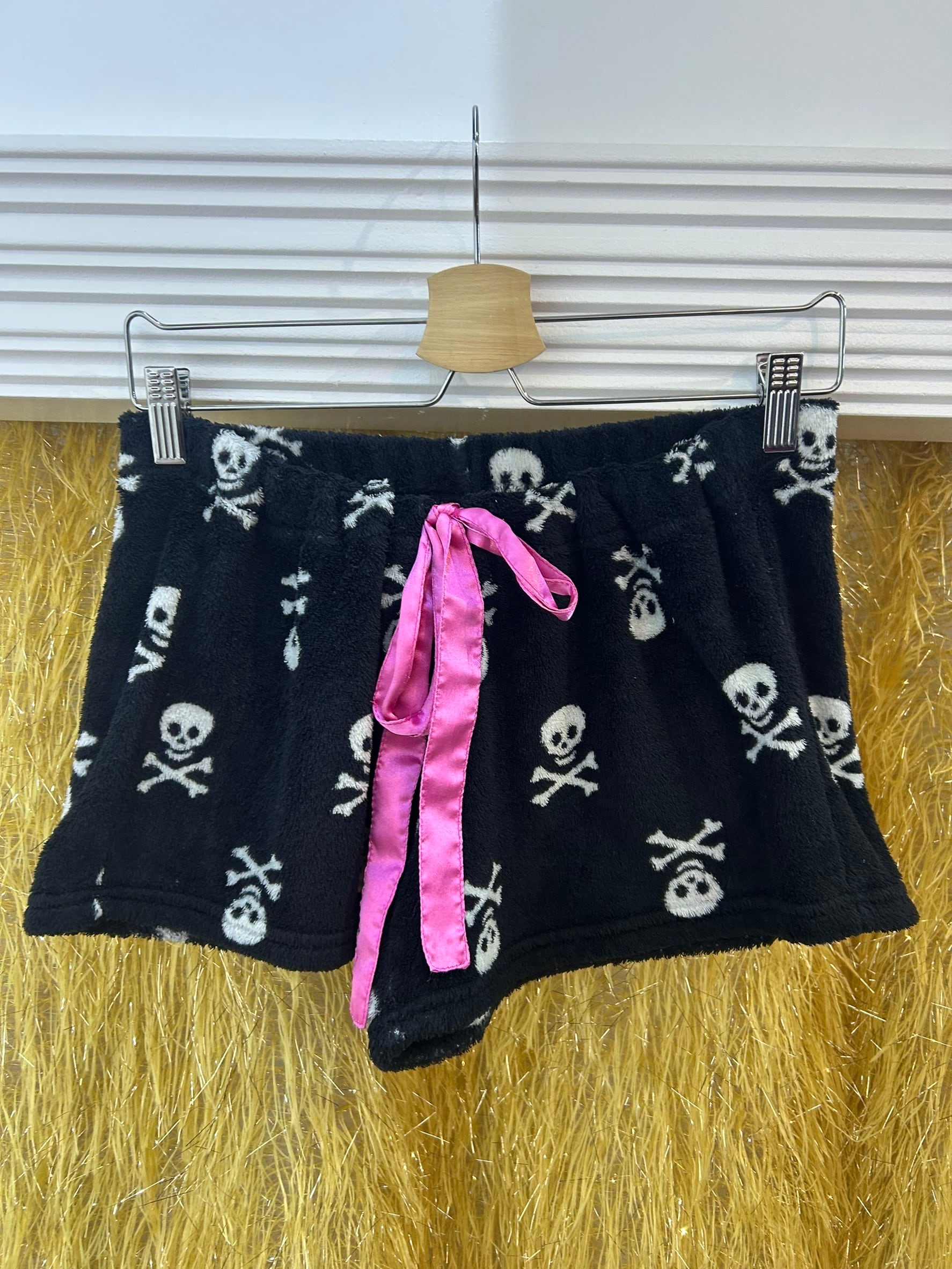 素材: 100%Polyester サイズ: L(表記) ウエスト幅〜45cm(紐で調節可能) ヒップ幅51cm 股上24cm 股下7cm 裾幅37cm ダメージ: 写真11.12枚目のような毛羽立ちがあります