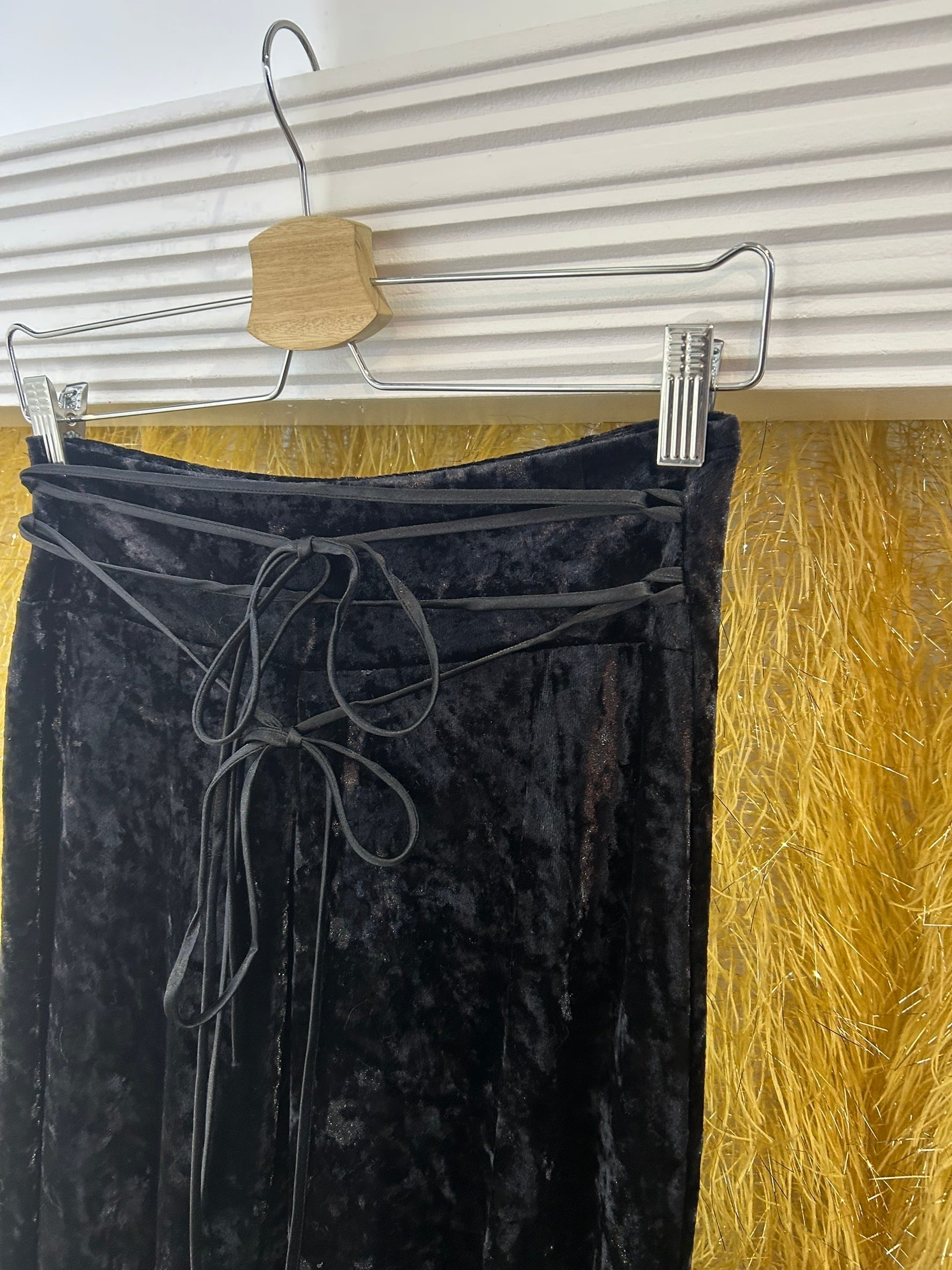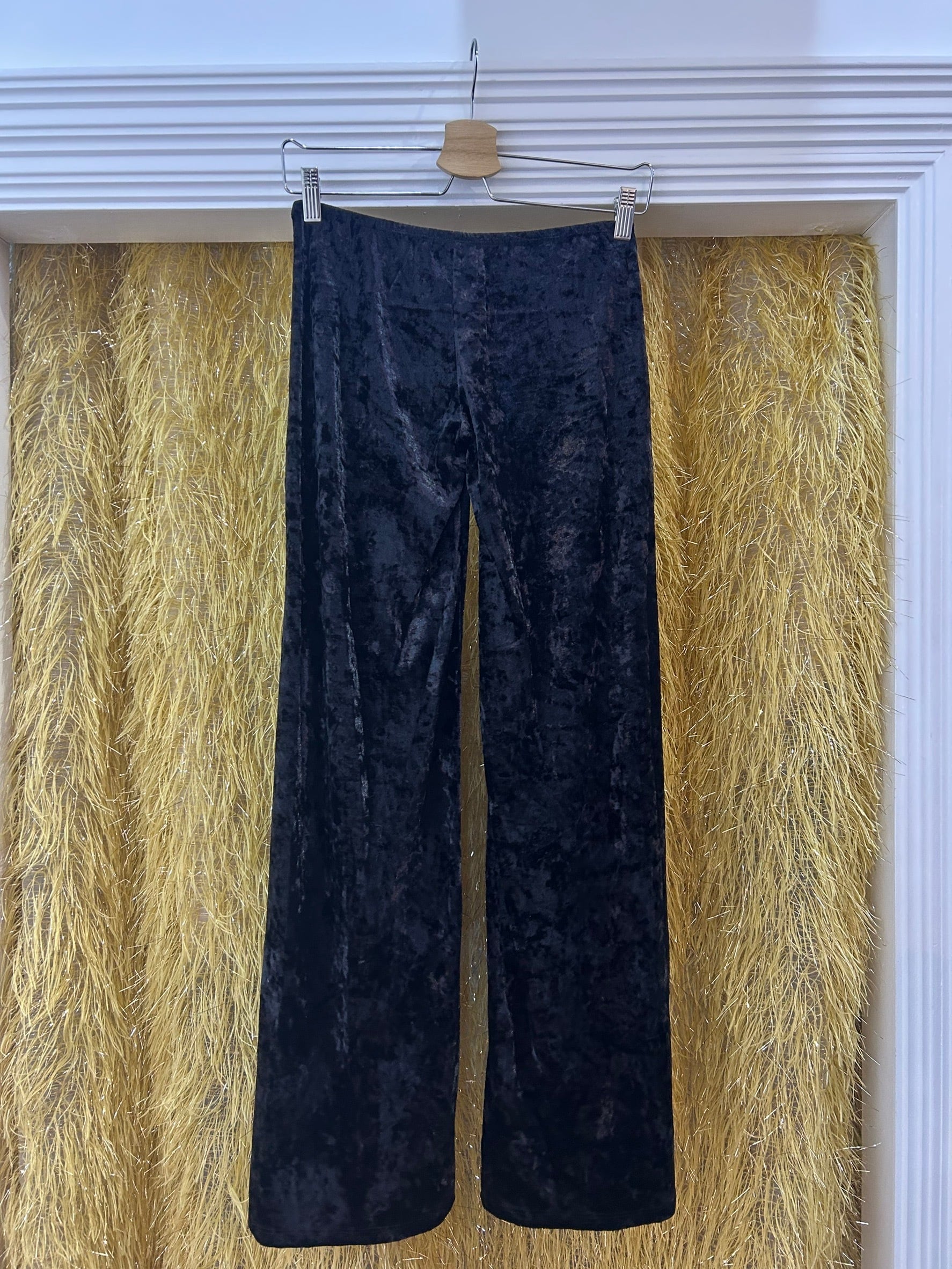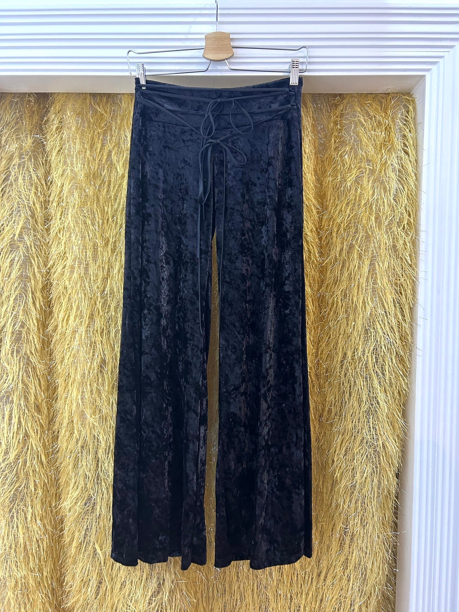 素材: 92%Polyester 8%Spandex サイズ: S(表記) ウエスト幅35〜40cm(ゴム) ヒップ幅45cm 股上20cm 股下82cm わたり幅28cm 裾幅39cm made in USA