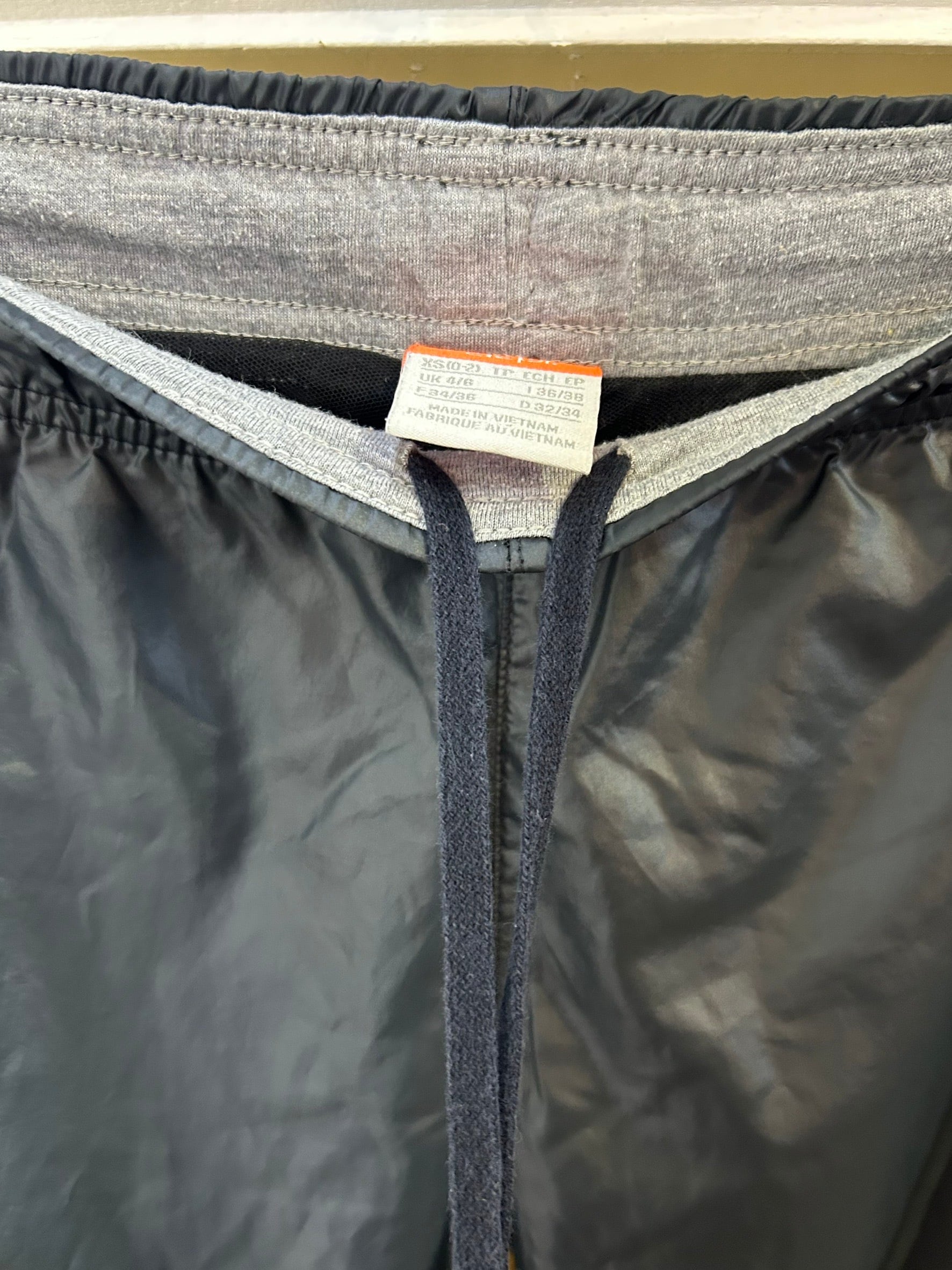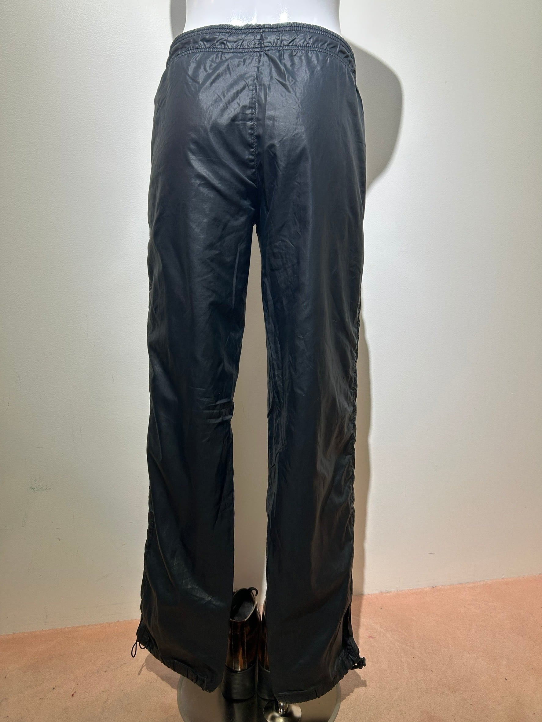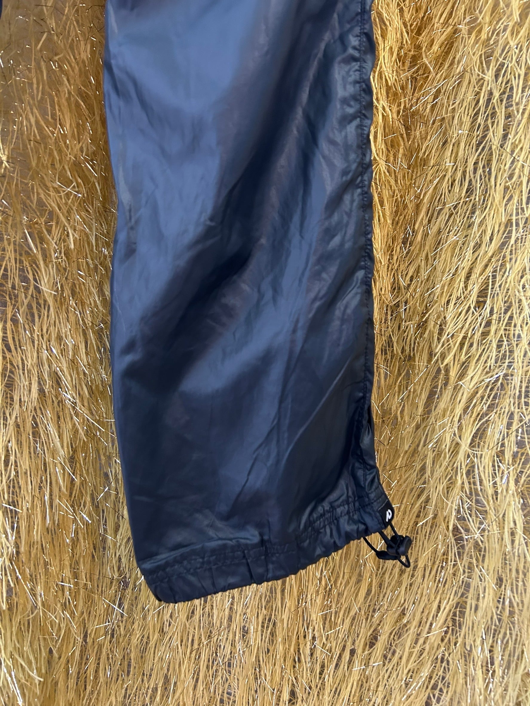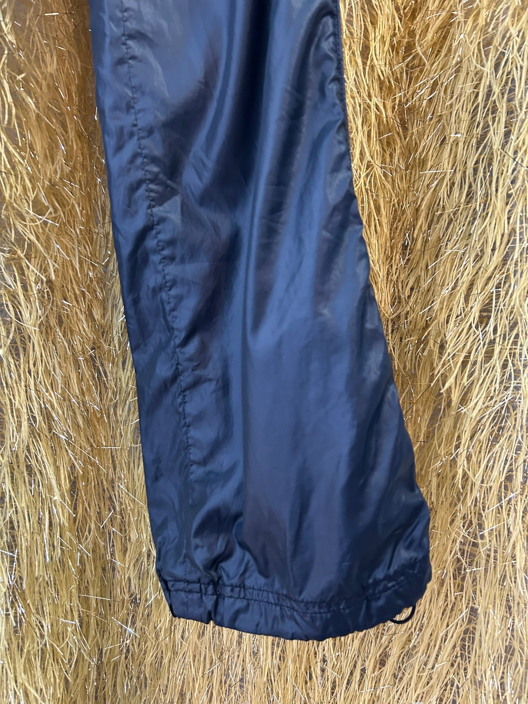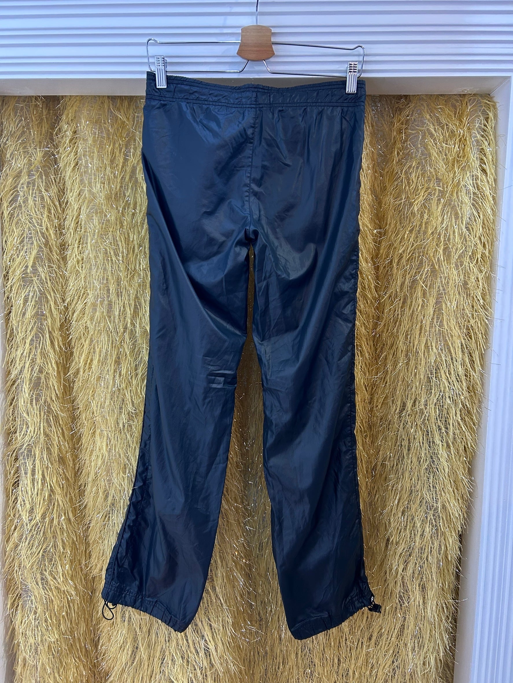 素材: 100%Polyester サイズ: XS(表記) ウエスト幅〜38cm(紐で調節可能) ヒップ幅45cm 股上23cm 股下79cm わたり幅26cm 裾幅21cm