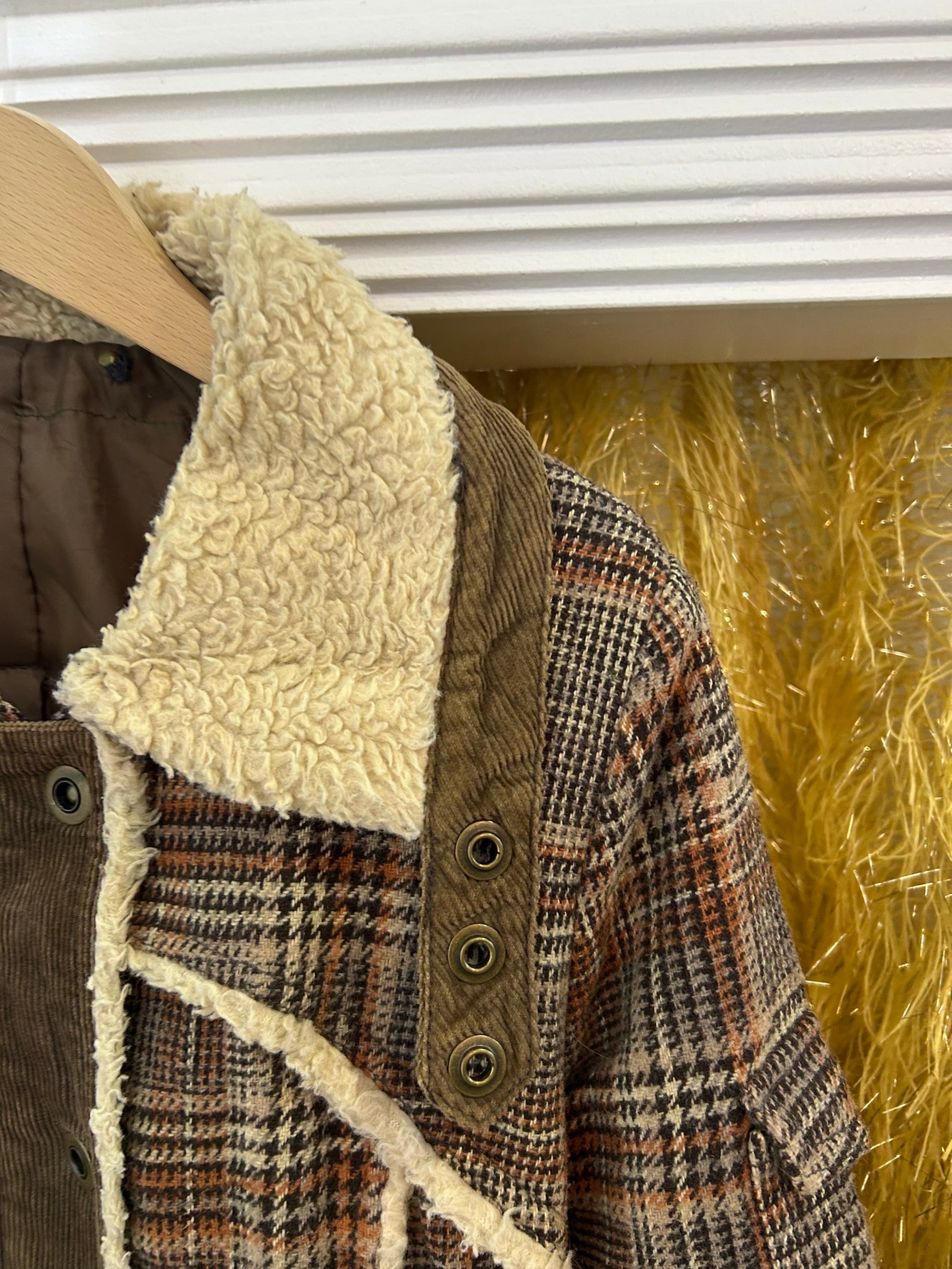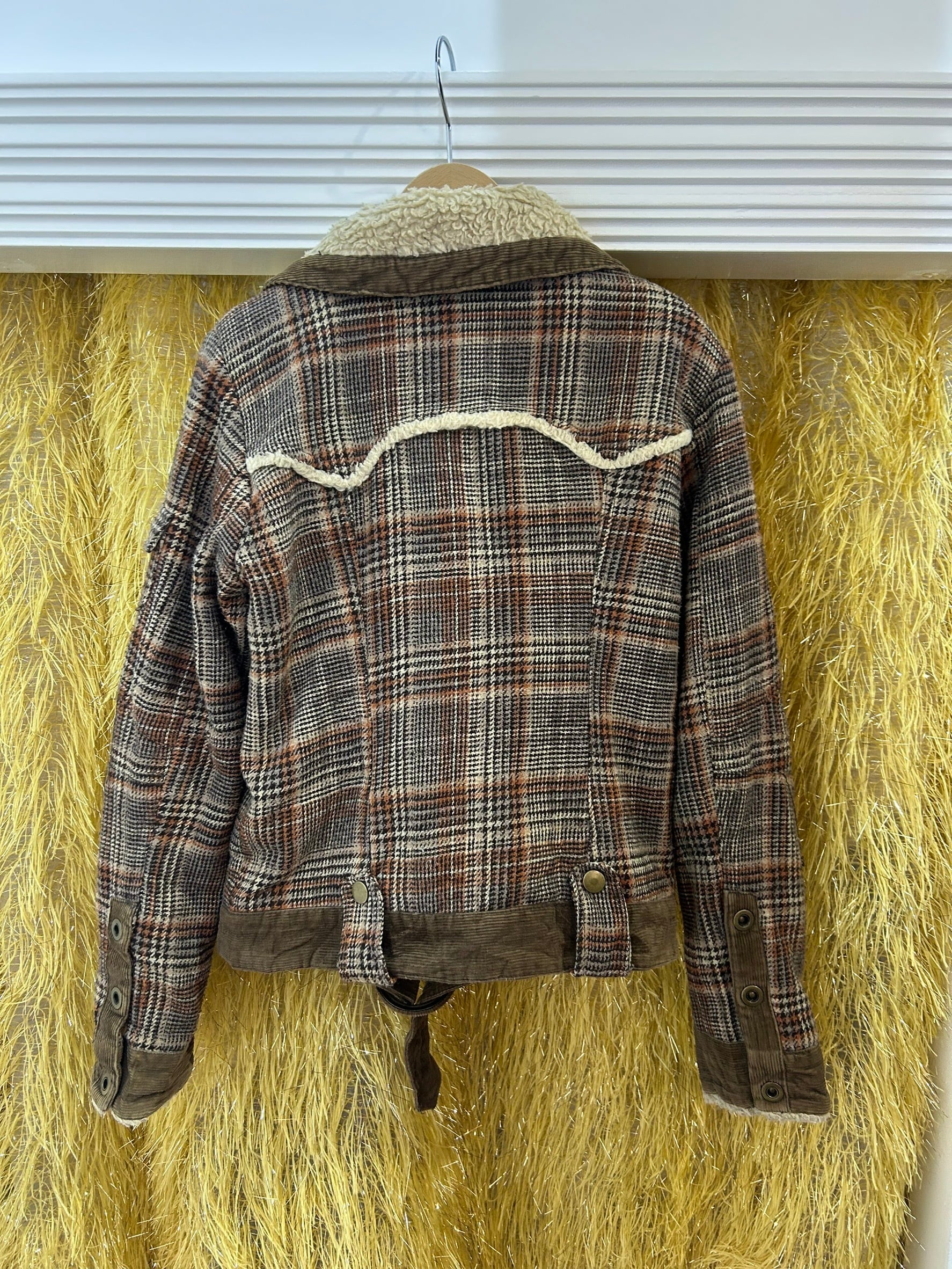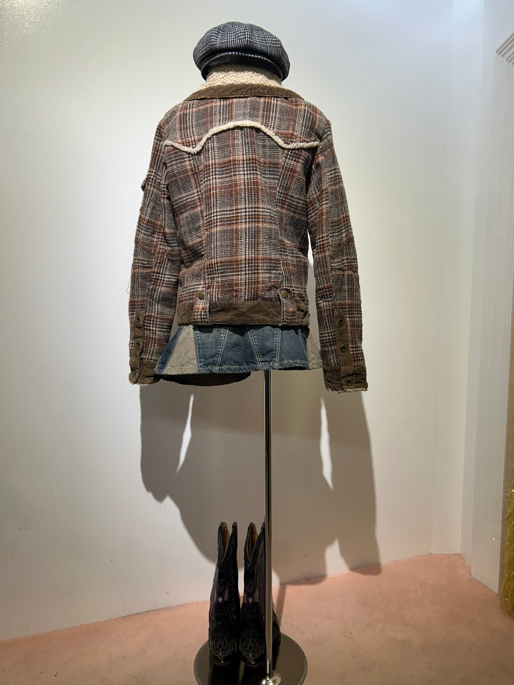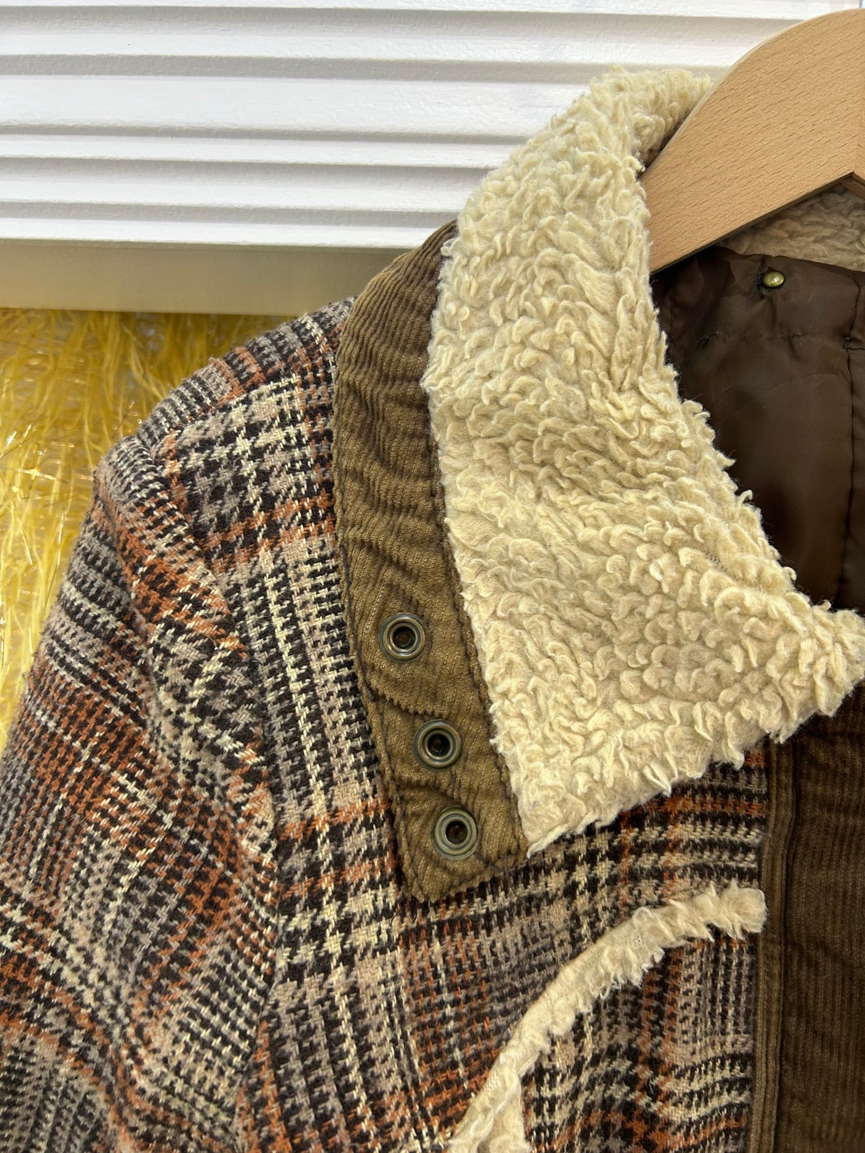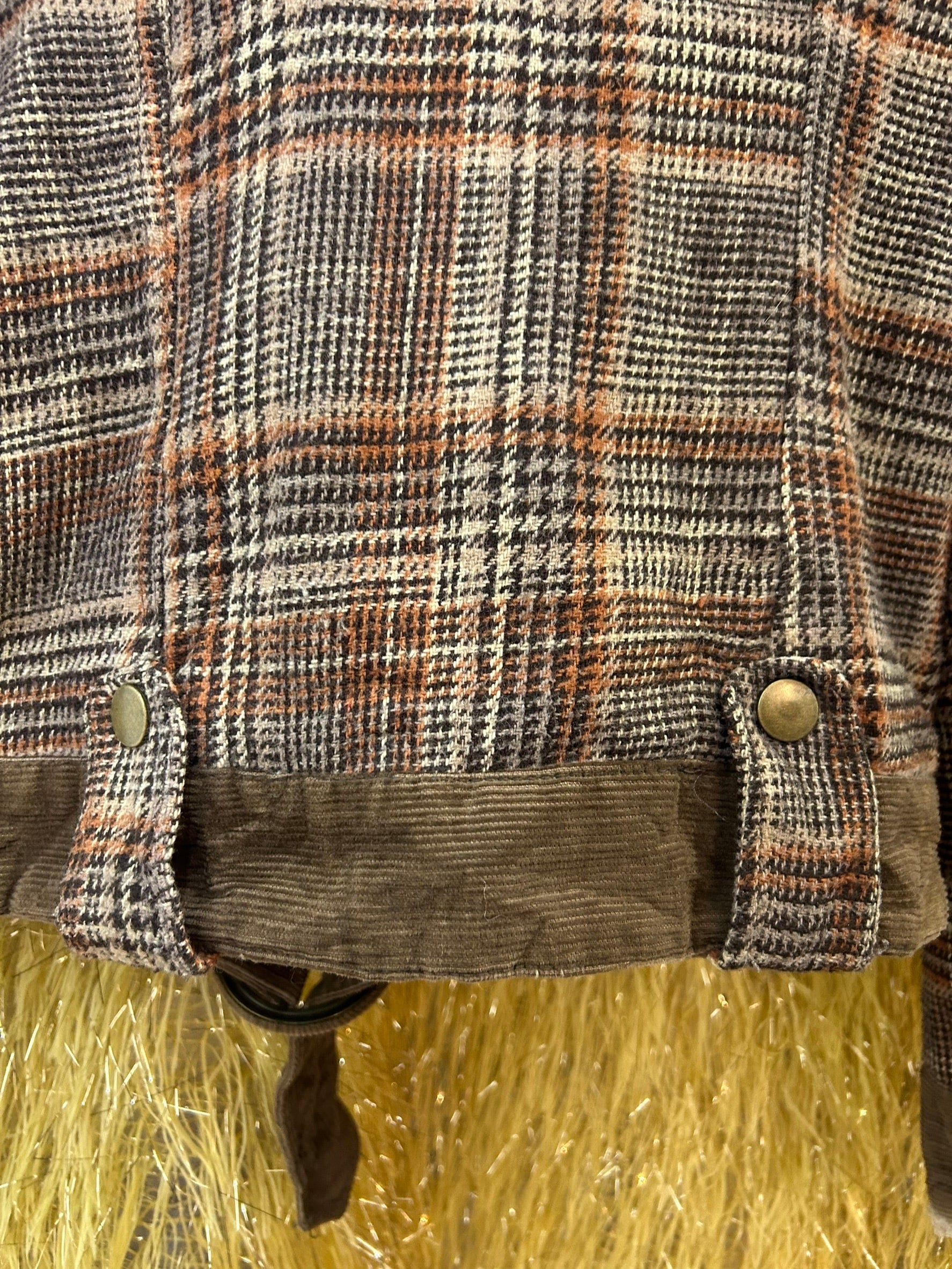 素材: 30%Wool 40%Polyester 30%Viscose サイズ: M(表記) 着丈55cm 肩幅42cm 身幅44cm 袖丈66cm ダメージ: 写真19枚目のファスナー欠損、20枚目のベルト穴ダメージがあります