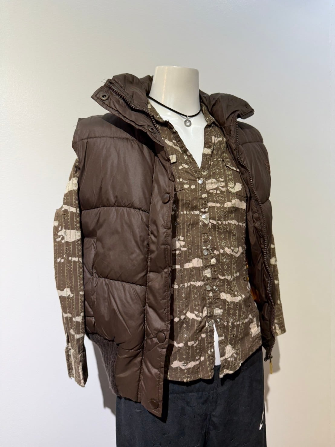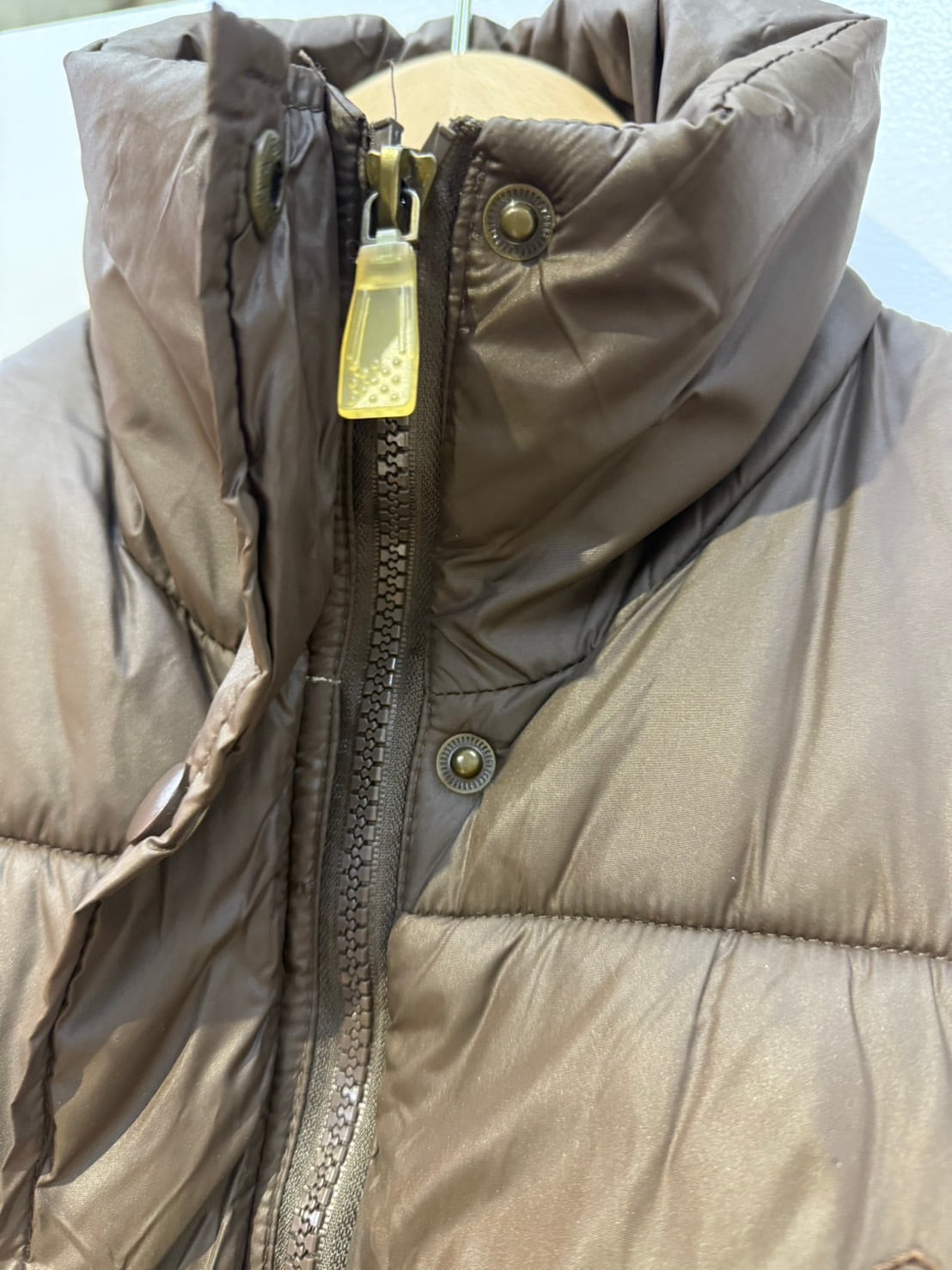 素材: 100%Nylon サイズ: S(表記) 肩幅37cm 身幅46cm 身丈61cm タートル丈10cm ダメージ: 写真20枚目のようなボタンを留まる金具が片方だけ取れています。