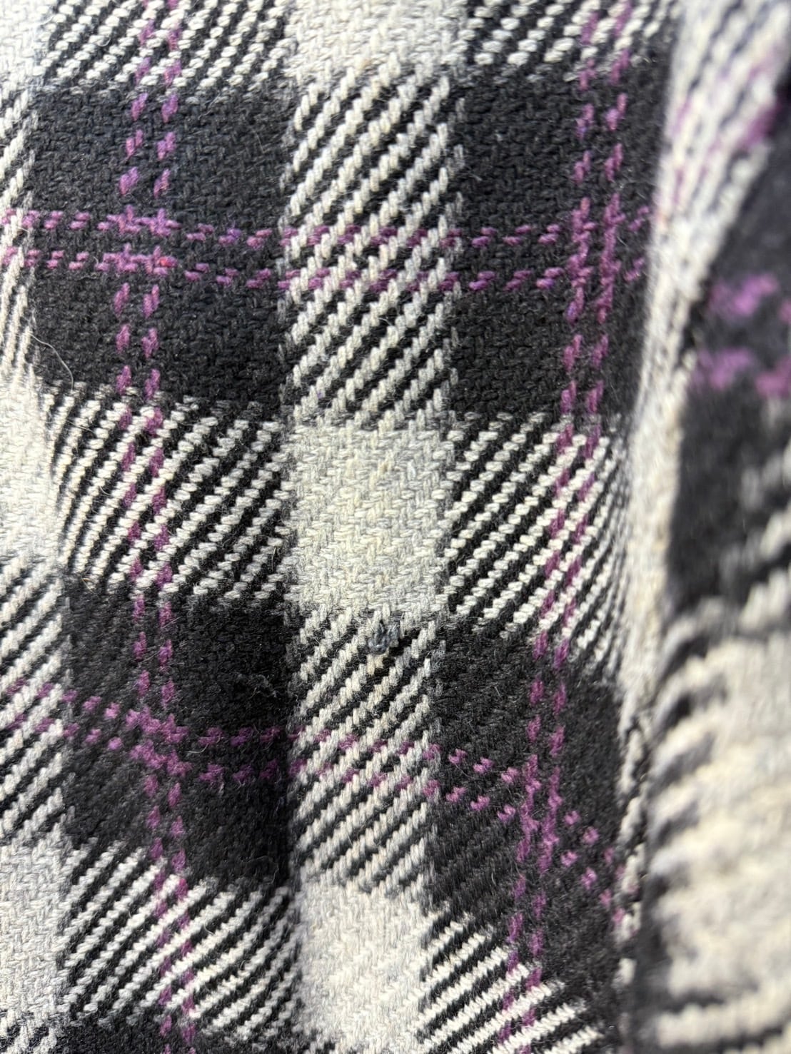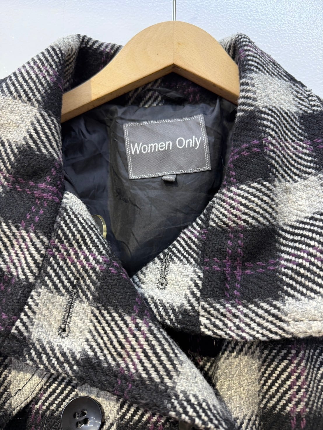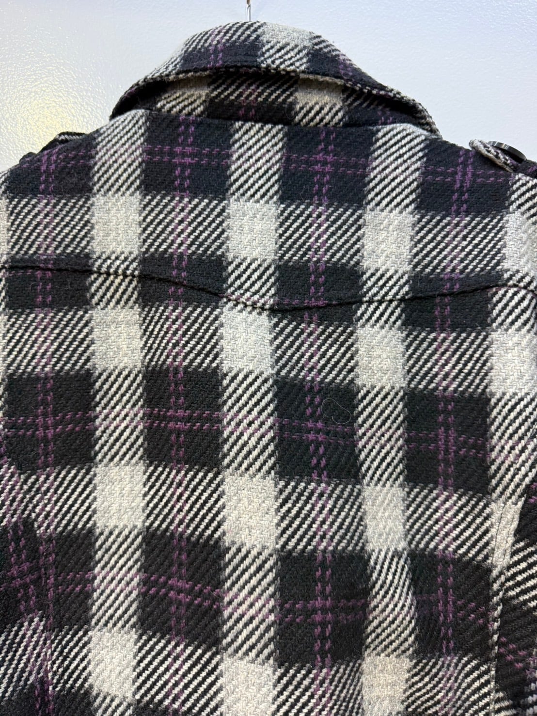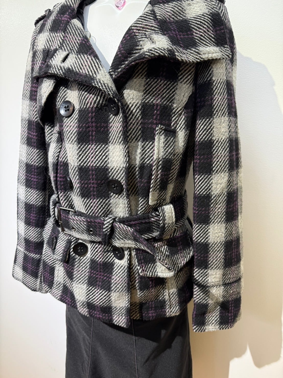 素材: 50%Polyester 33%Acrylic 10%Wool 3%Polyamide サイズ: 肩幅41cm 袖丈60.5cm 身幅61.5cm 身丈64cm 襟幅26cm ベルト全長106cm ダメージ: 写真20枚目のような糸のほつれが背中側にあります。