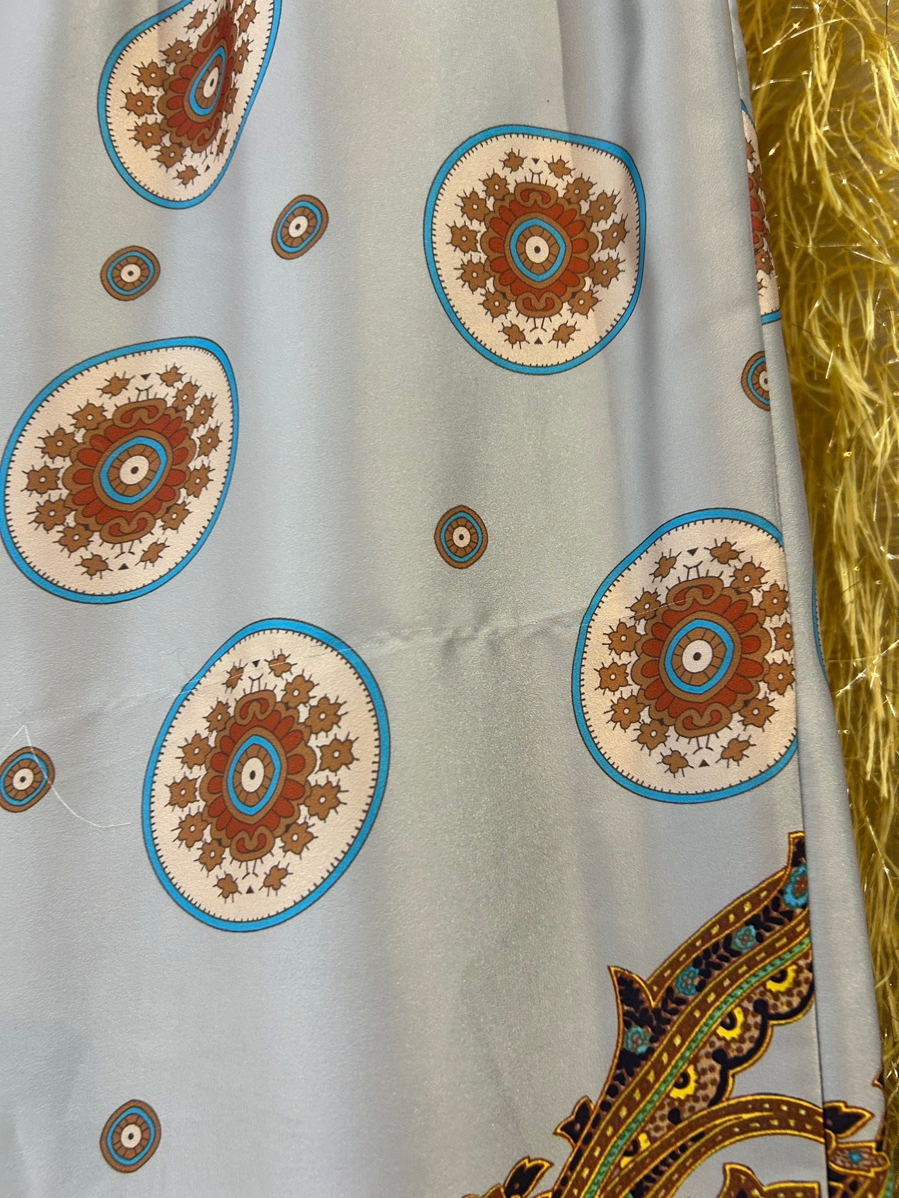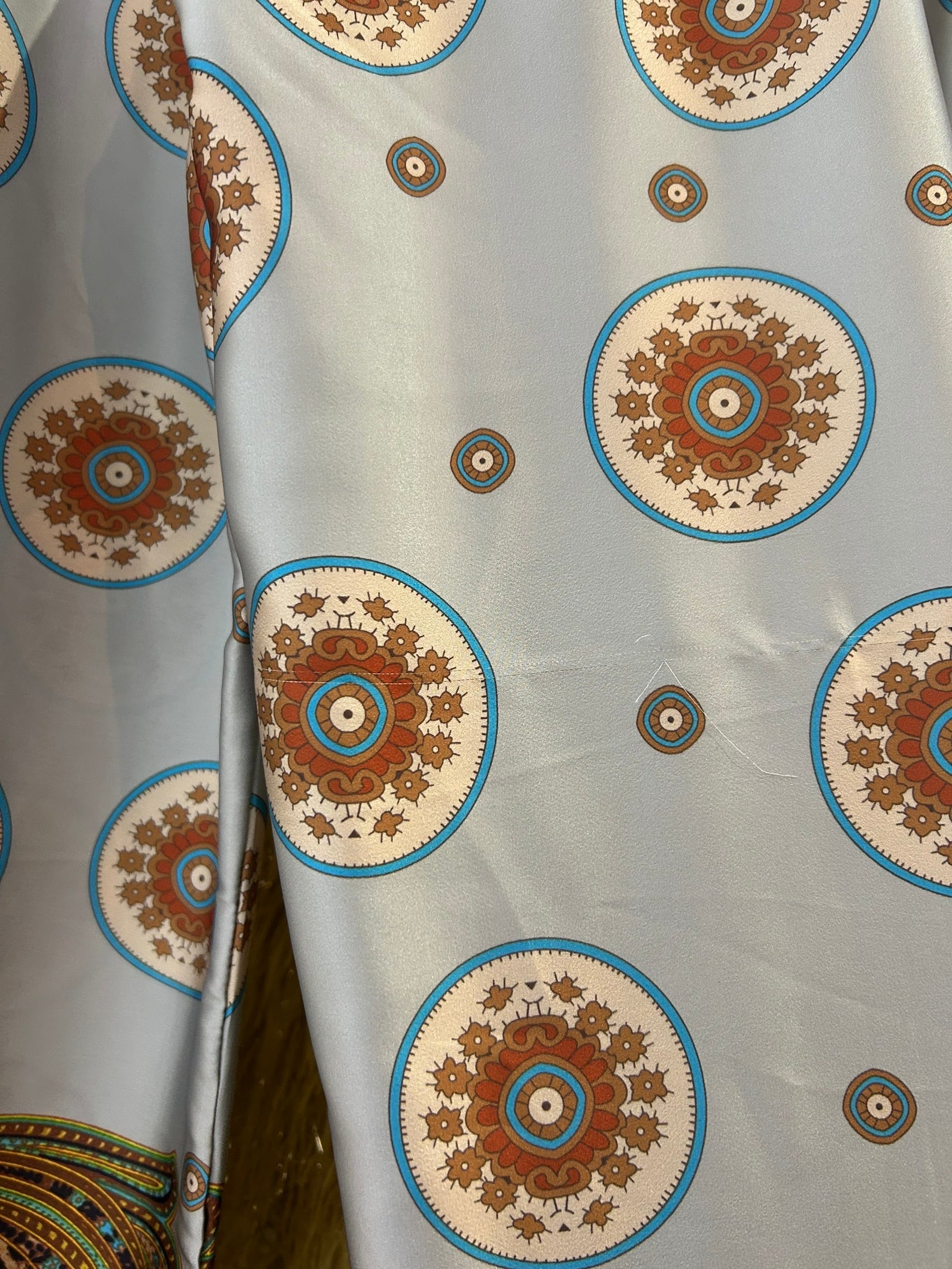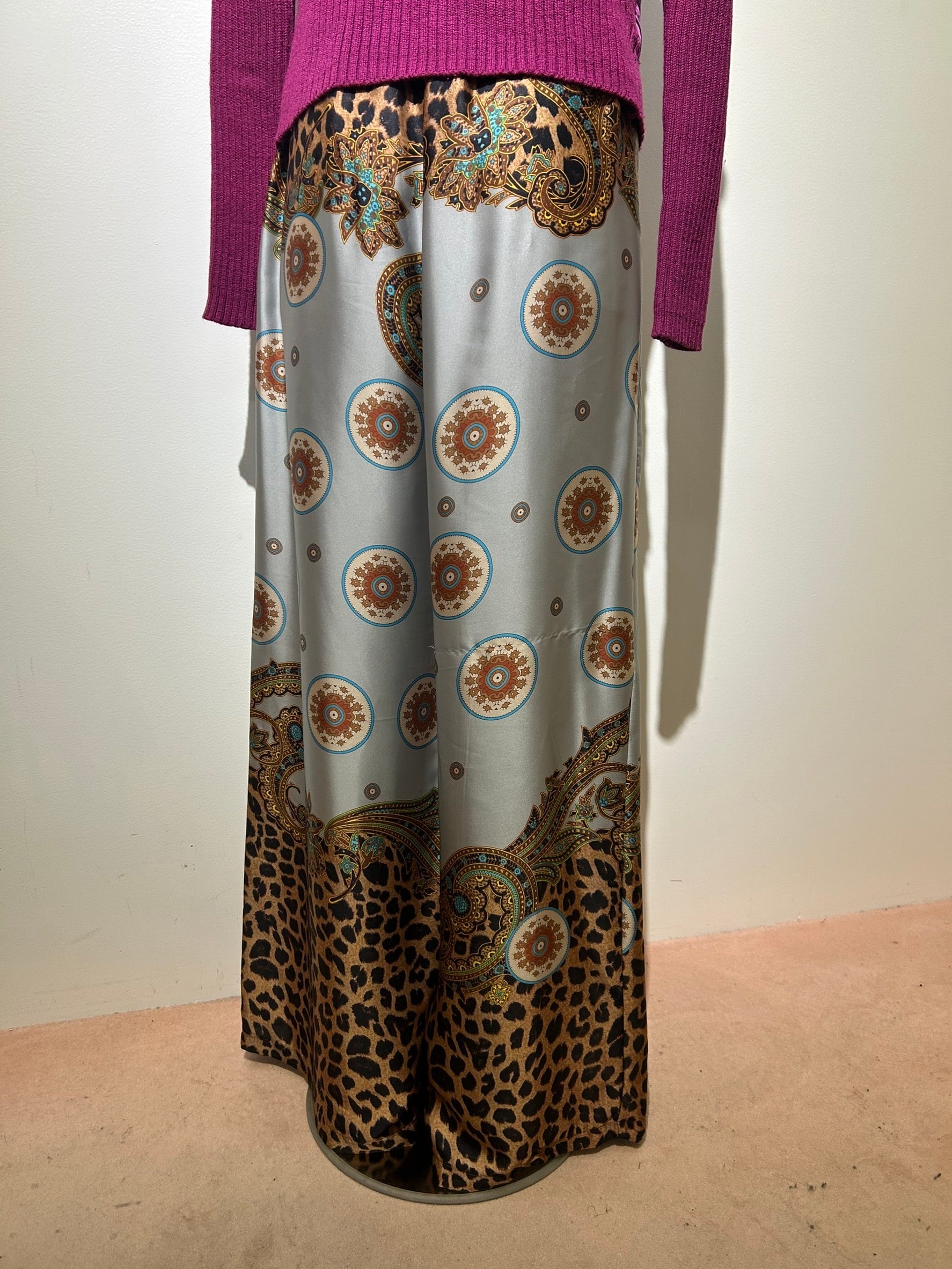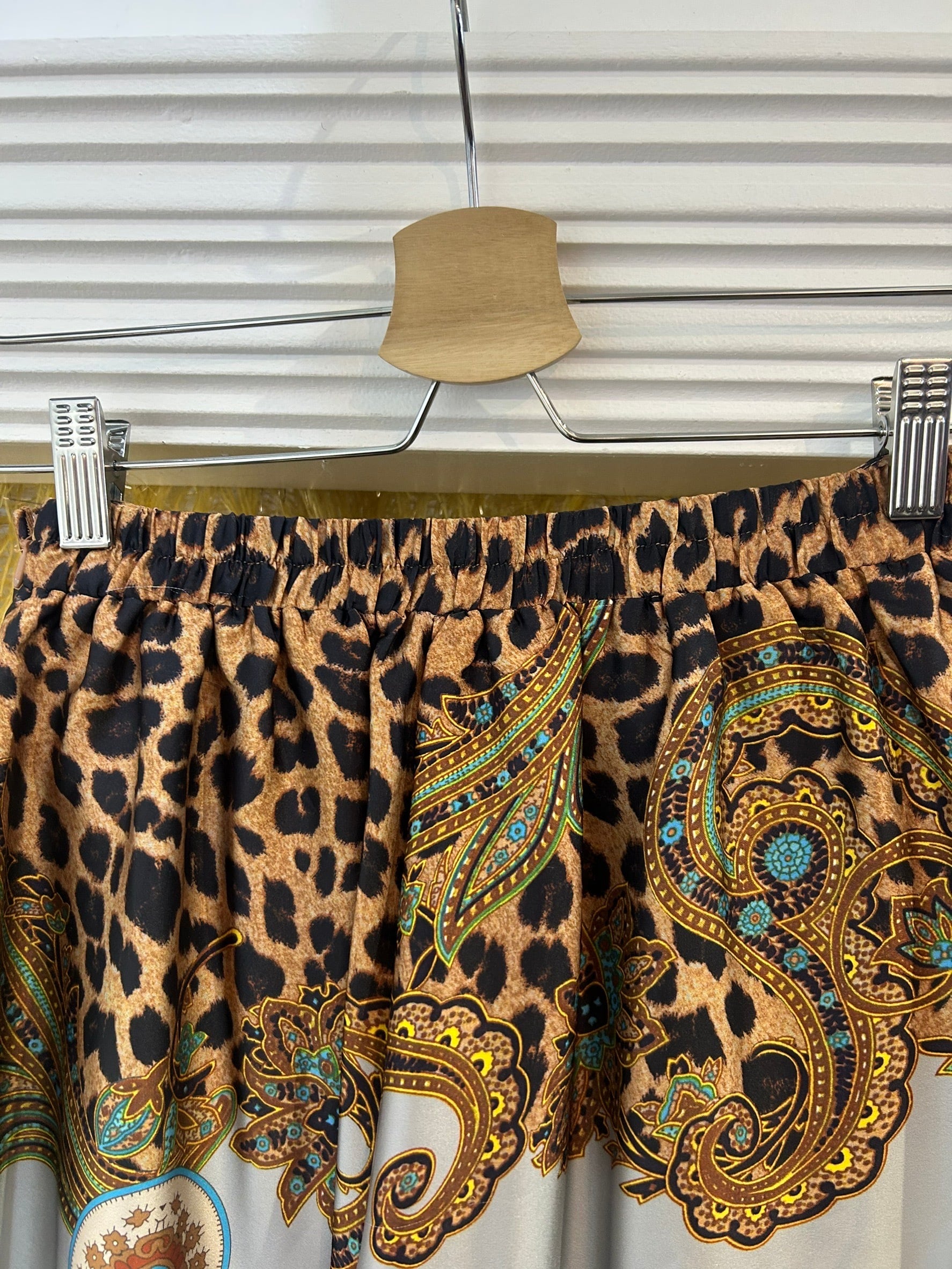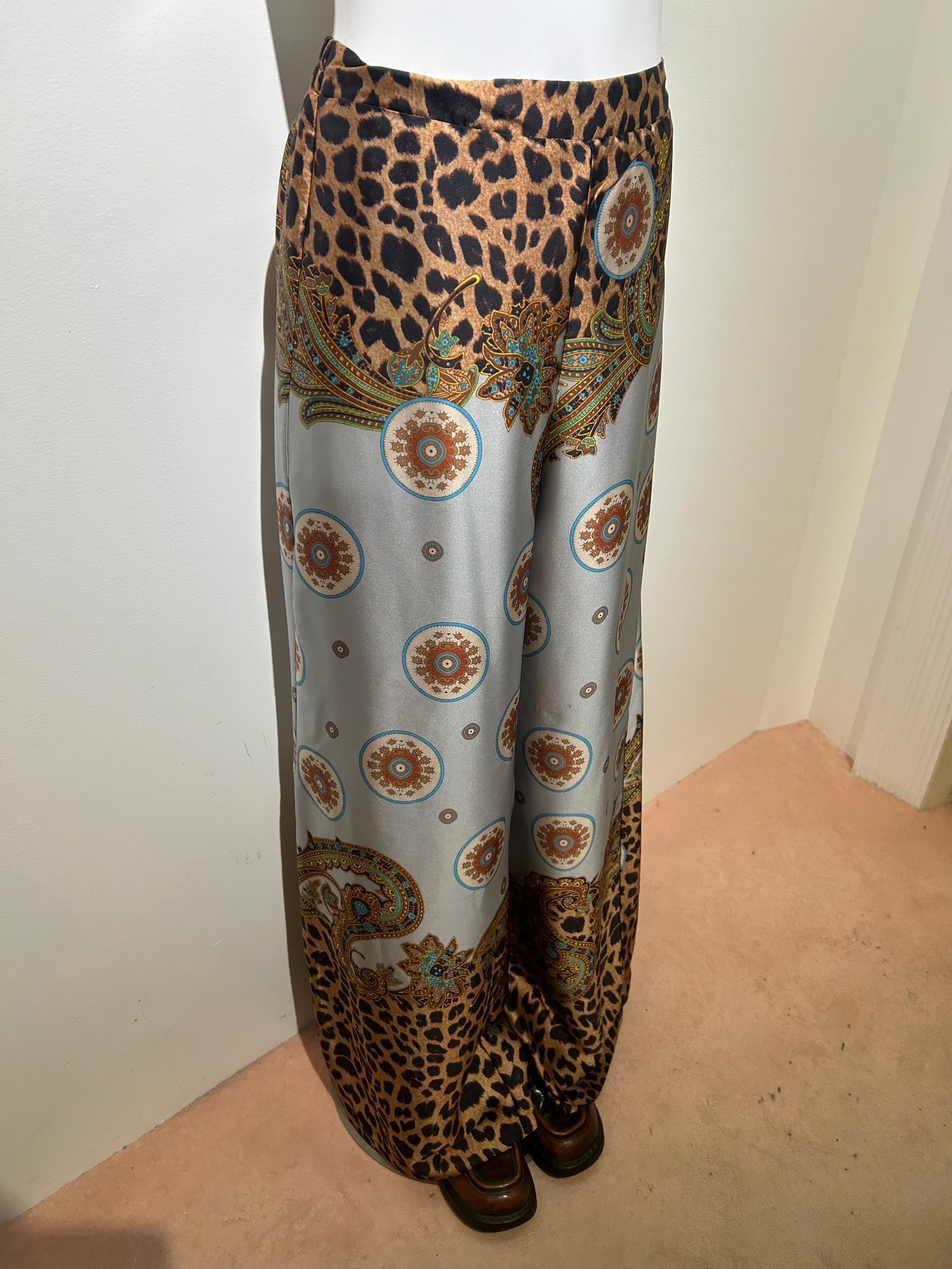 素材: 100%Polyester サイズ: S(表記) ウエスト幅32cm(後ろがゴムになっています) ヒップ幅44cm 股上35cm 股下73cm わたり幅33cm 裾幅32.5cm ダメージ: 写真17.18枚目のひきつれのダメージがあります