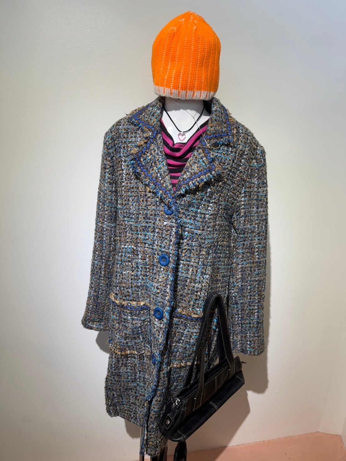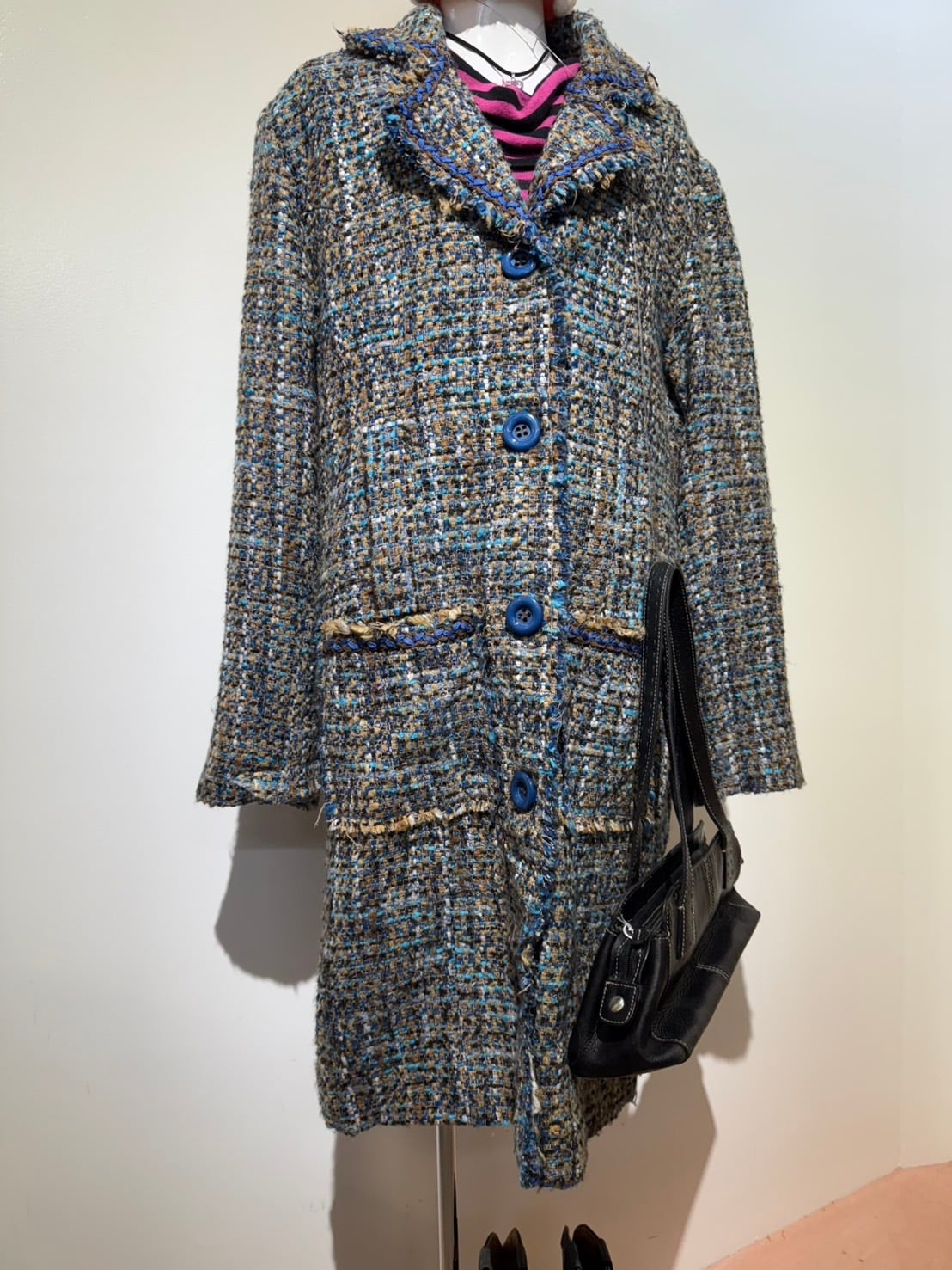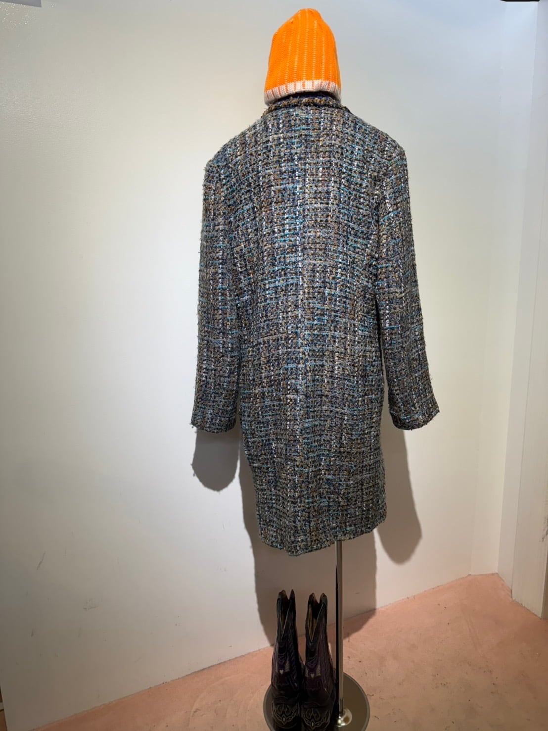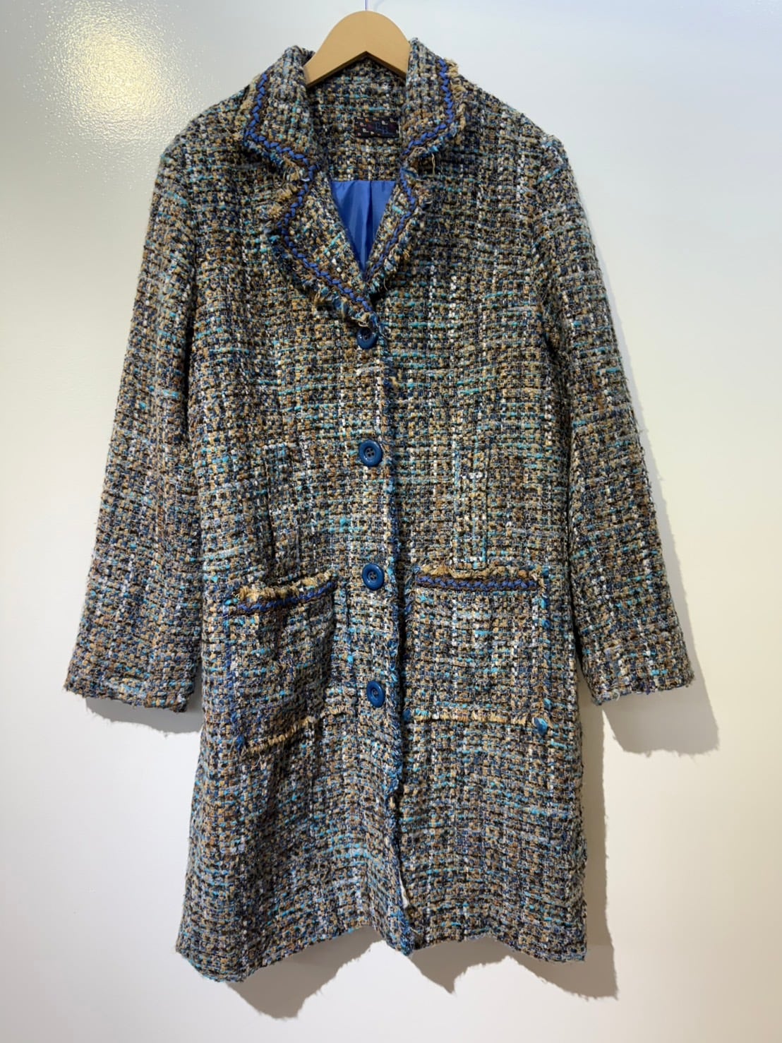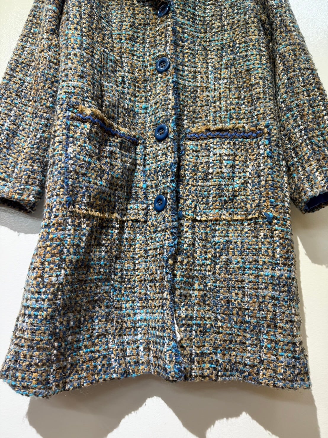 素材: 60%Polyacrilyque 21%Laine 17%Polyester 2%Polyamide サイズ: 肩幅50cm 袖丈61cm 身幅53cm 身丈95cm 襟幅10cm