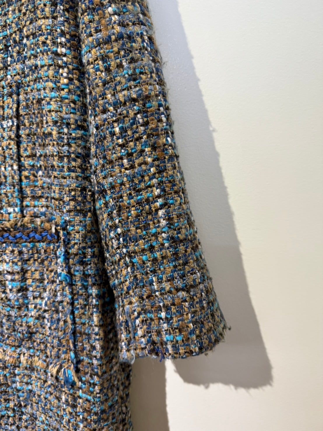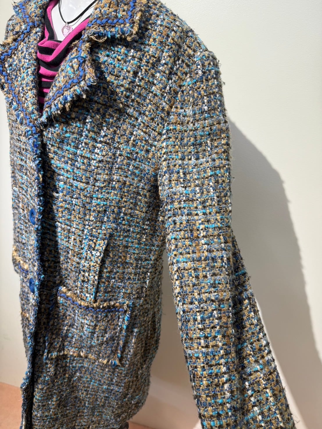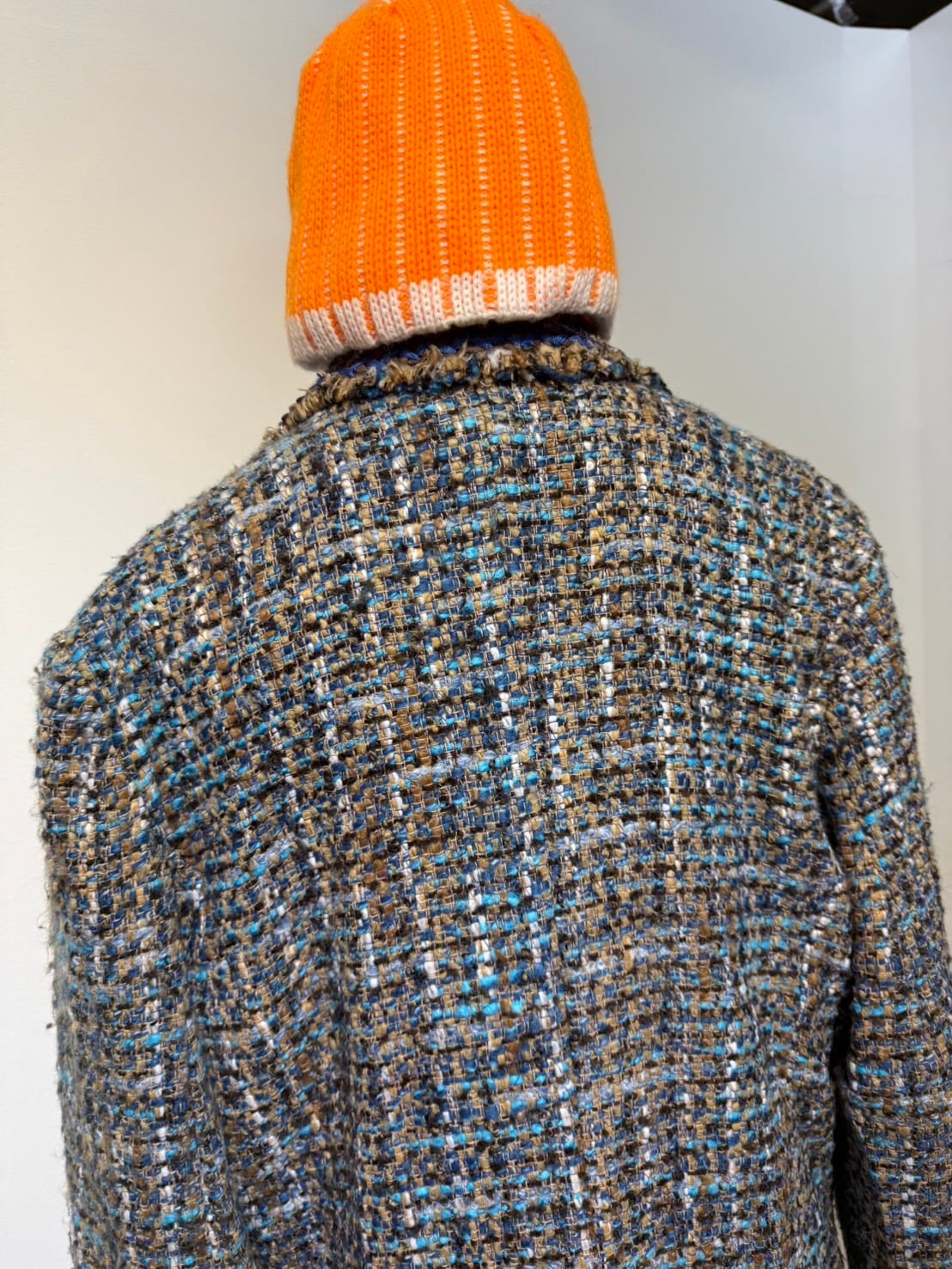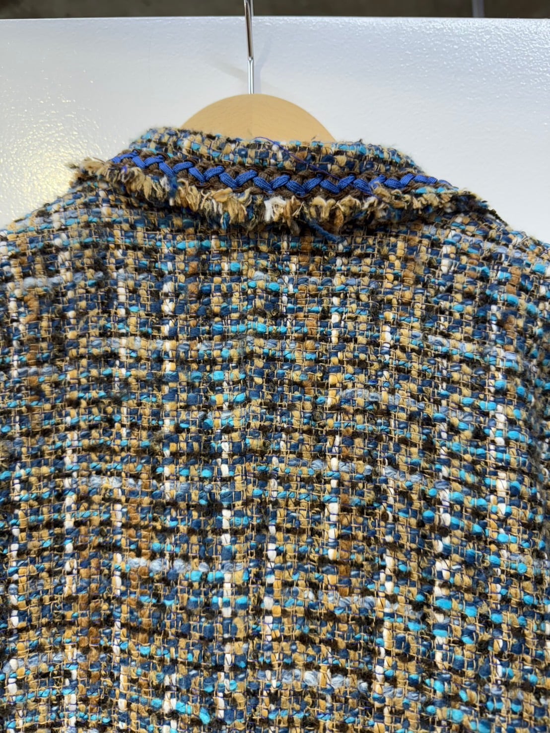 素材: 60%Polyacrilyque 21%Laine 17%Polyester 2%Polyamide サイズ: 肩幅50cm 袖丈61cm 身幅53cm 身丈95cm 襟幅10cm