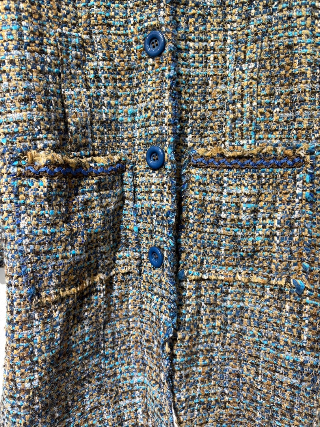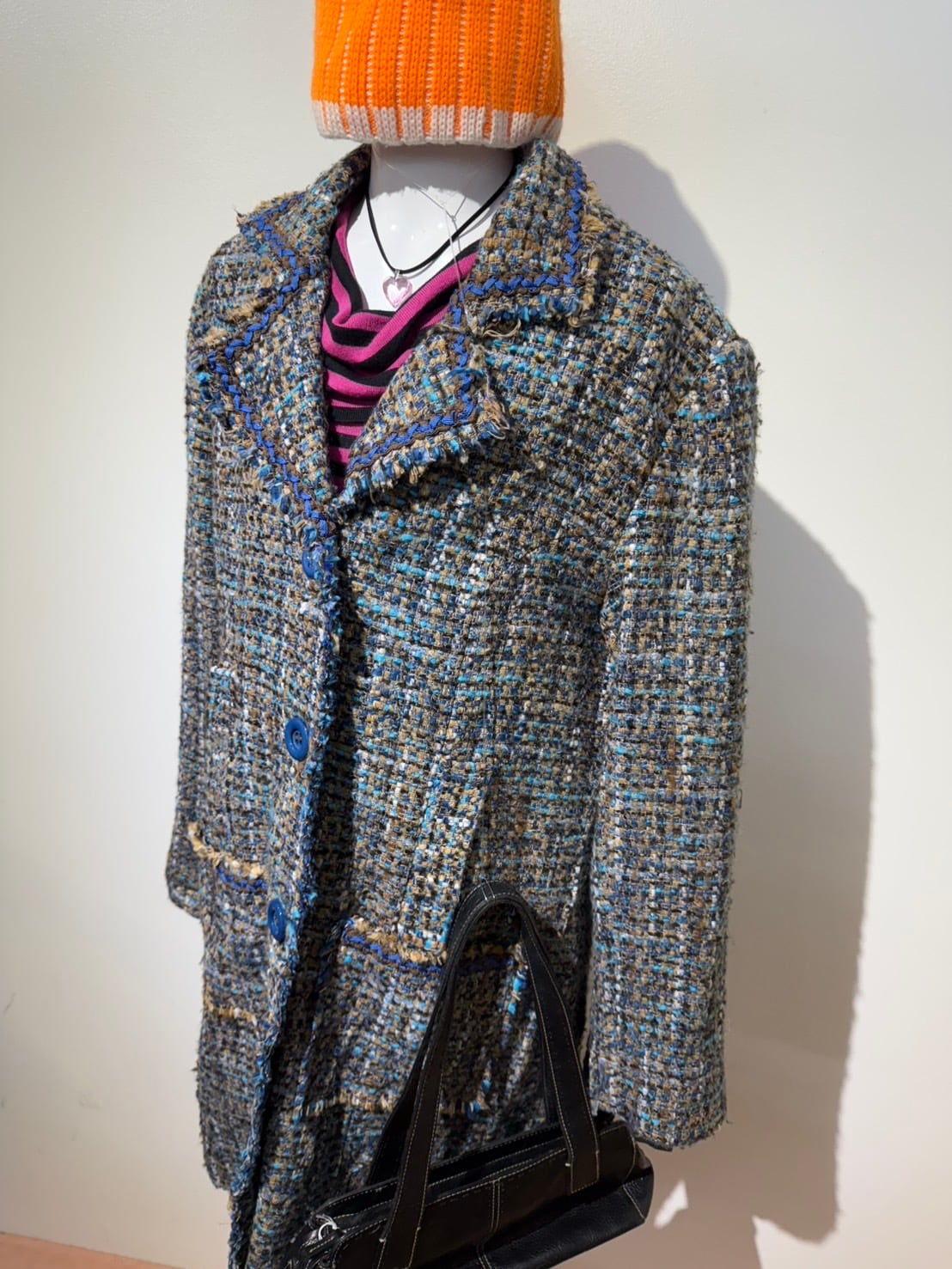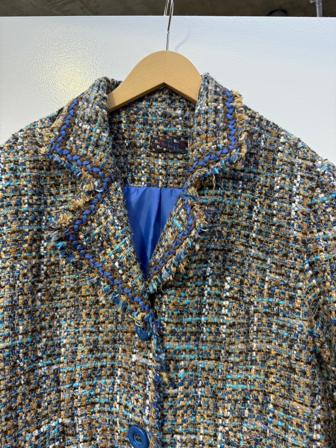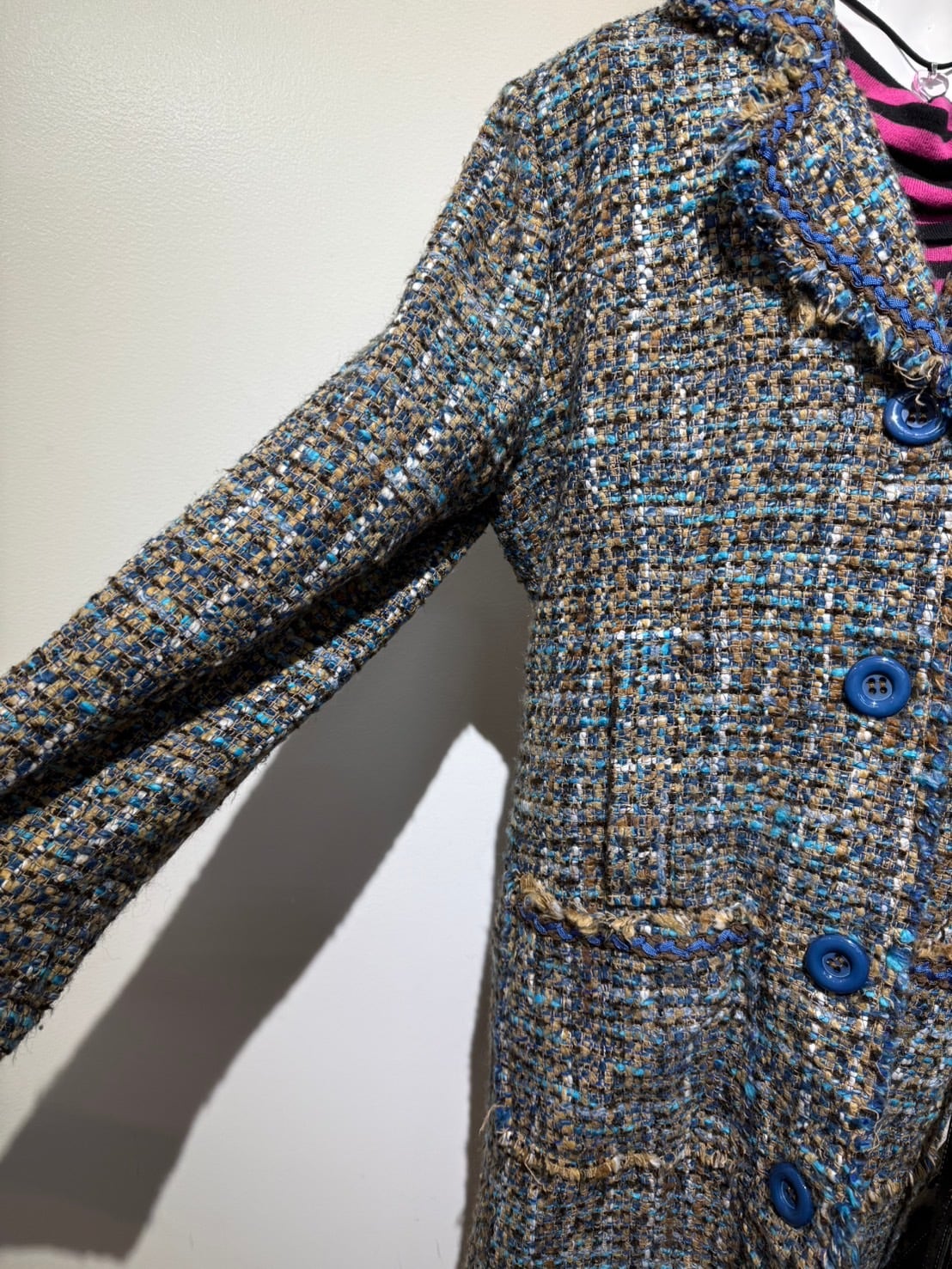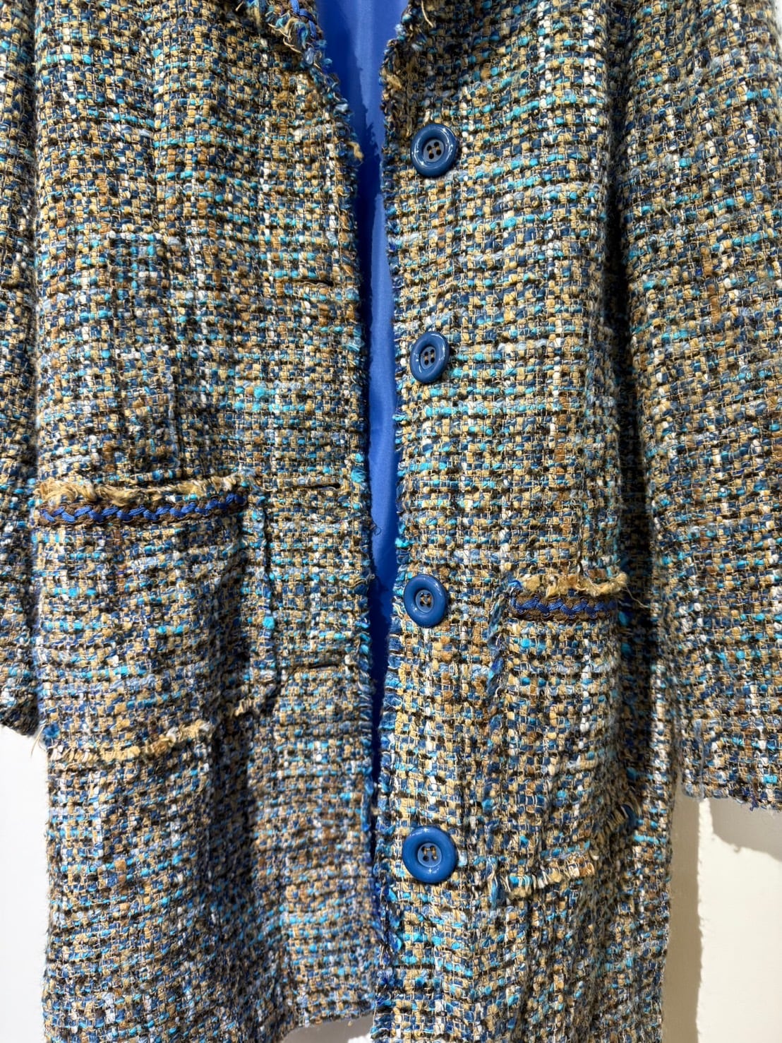 素材: 60%Polyacrilyque 21%Laine 17%Polyester 2%Polyamide サイズ: 肩幅50cm 袖丈61cm 身幅53cm 身丈95cm 襟幅10cm