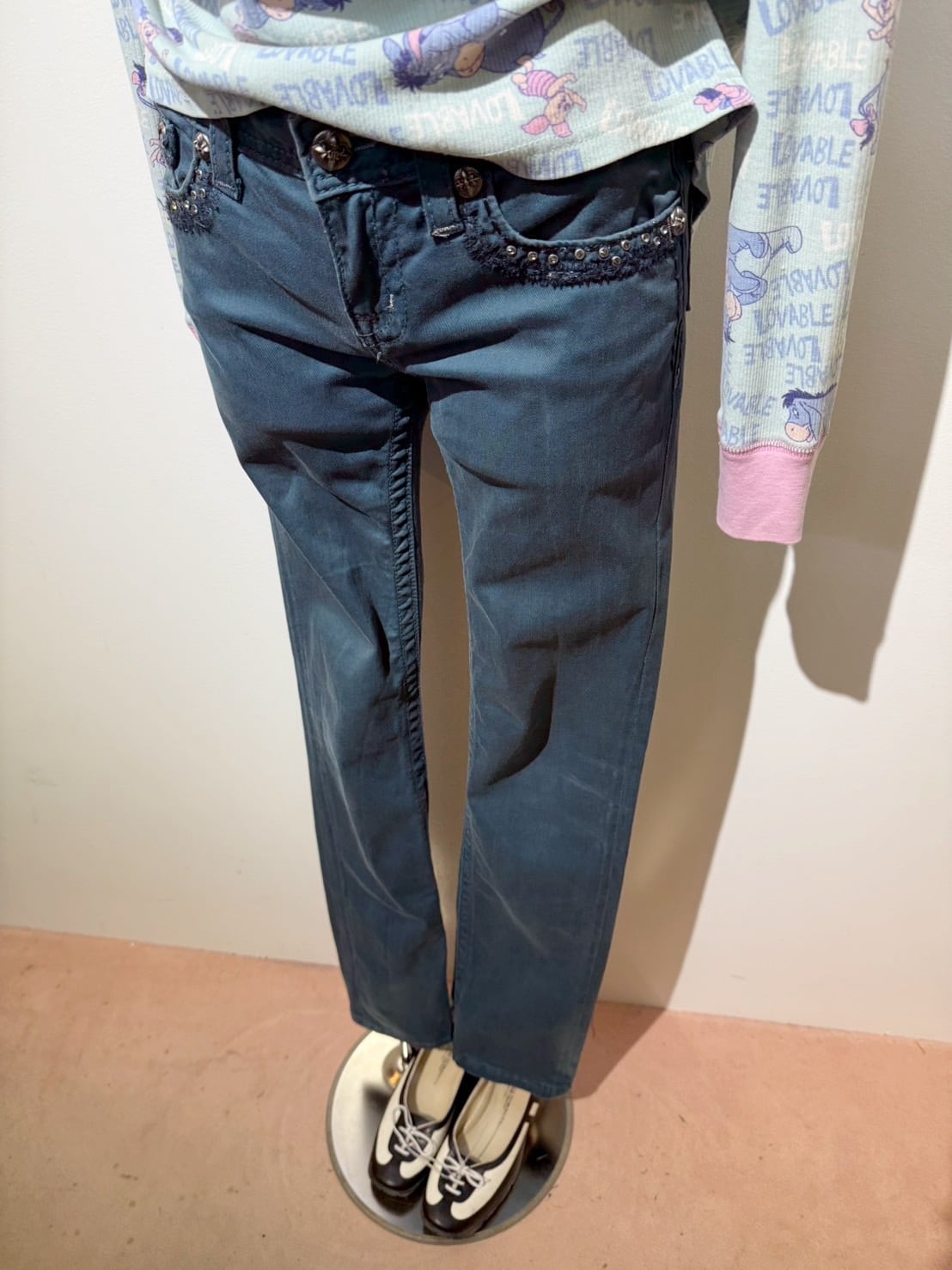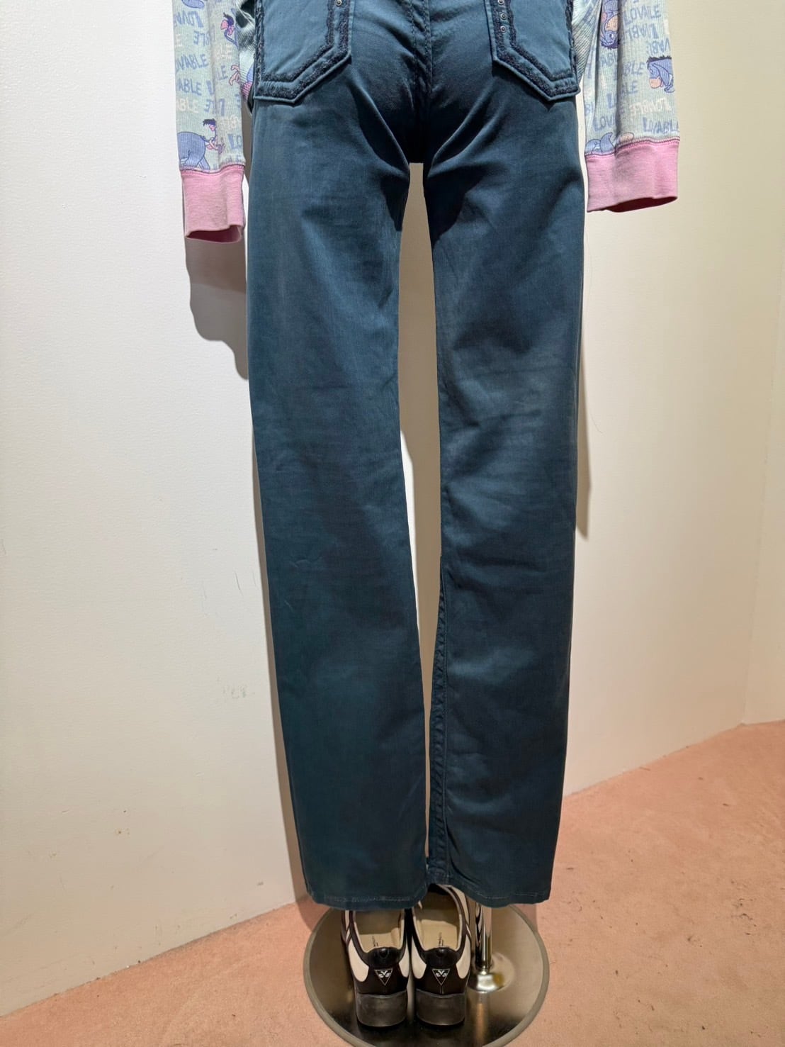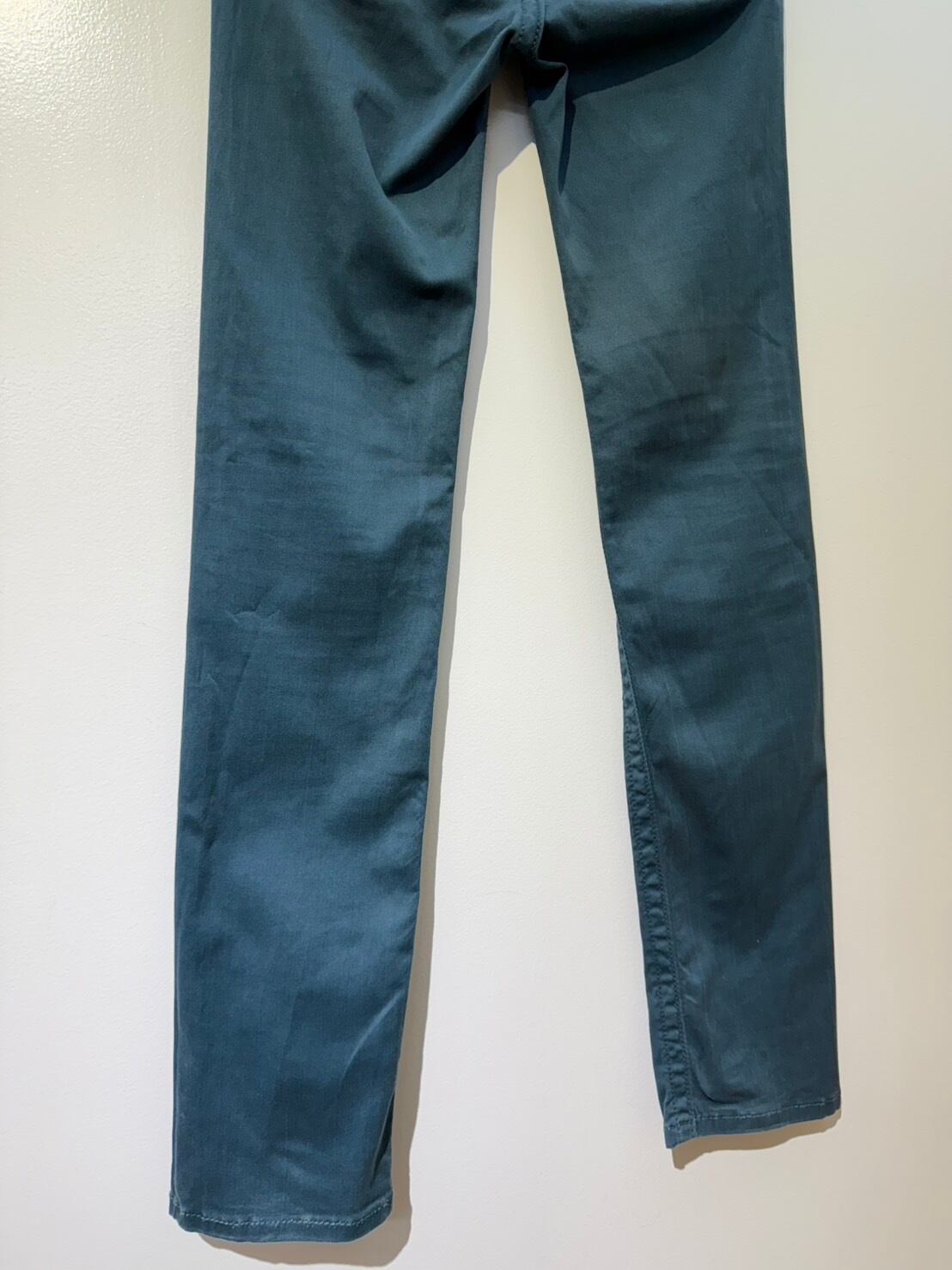 素材: 98%Cotton 2%Elastane サイズ: ウエスト幅34cm 股上26cm 股下80cm わたり幅21cm 裾幅16cm ダメージ: 写真16,17枚目の17〜20枚目のような汚れや糸のほつれがあります。