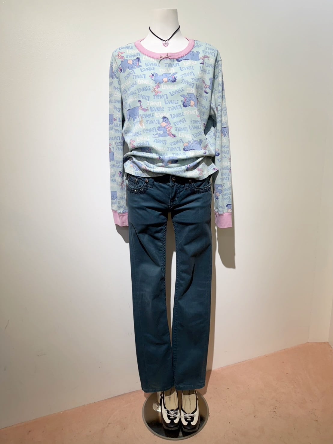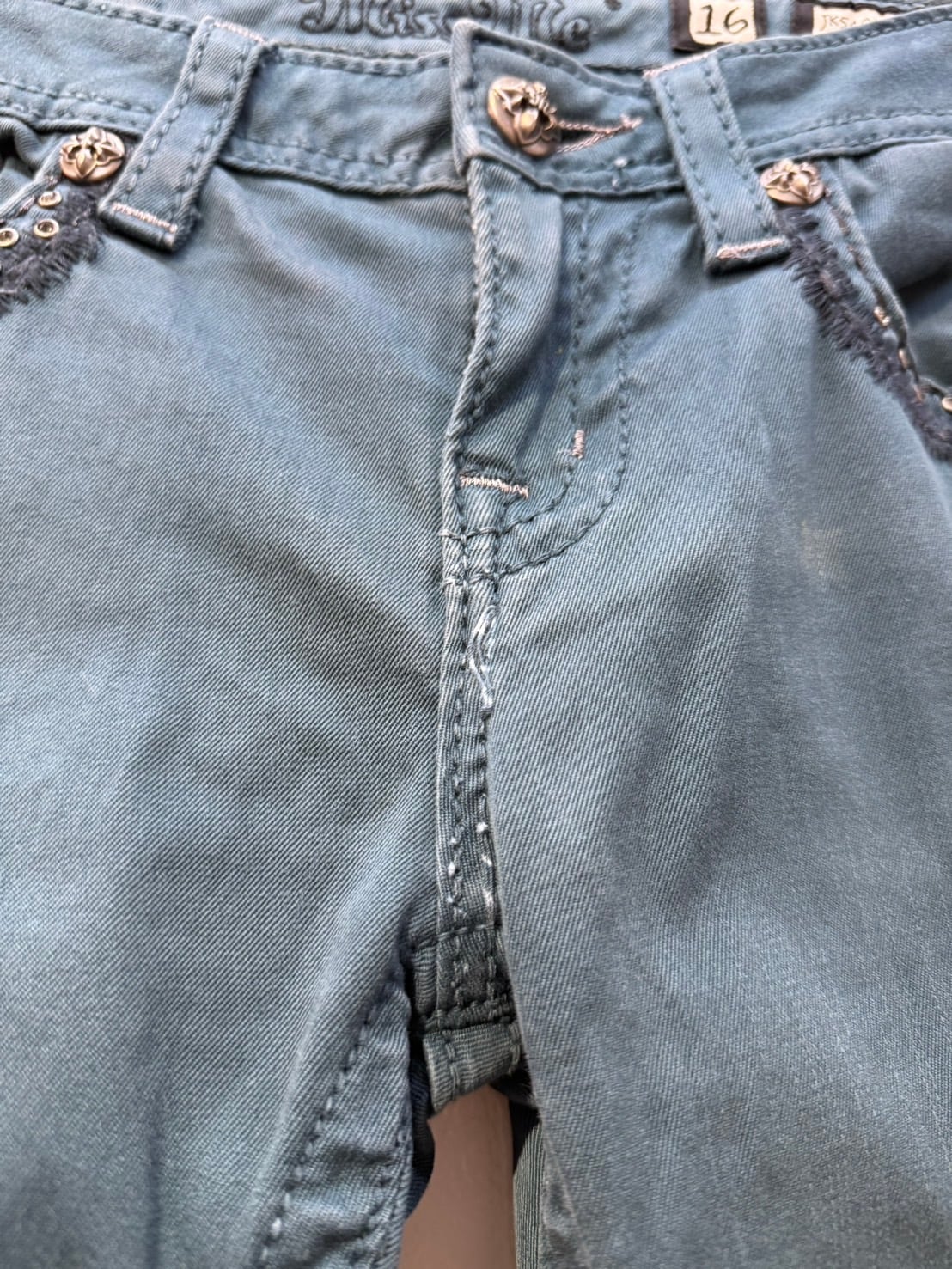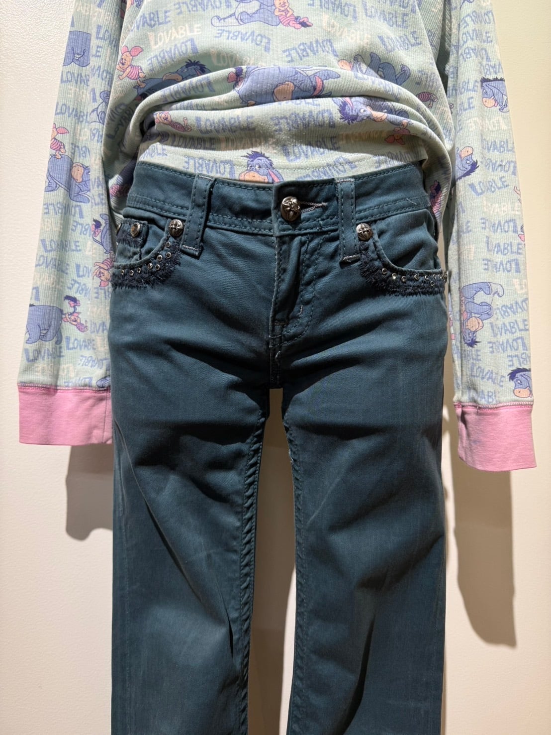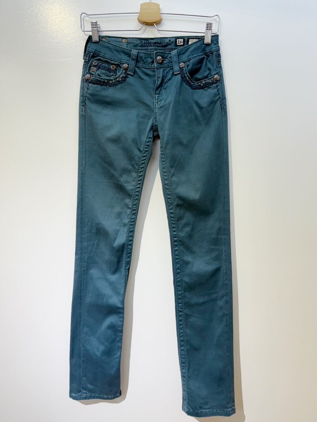 素材: 98%Cotton 2%Elastane サイズ: ウエスト幅34cm 股上26cm 股下80cm わたり幅21cm 裾幅16cm ダメージ: 写真16,17枚目の17〜20枚目のような汚れや糸のほつれがあります。