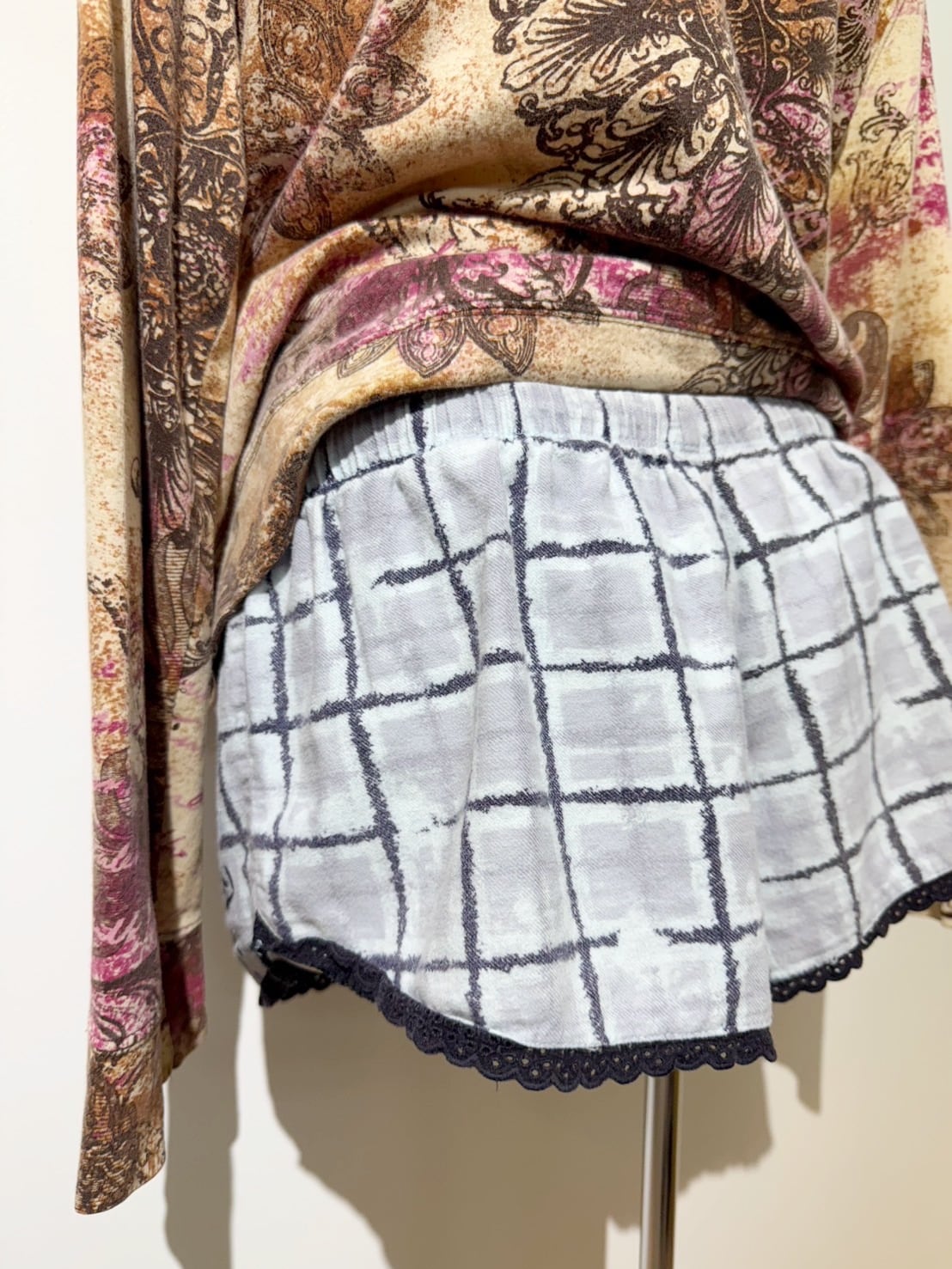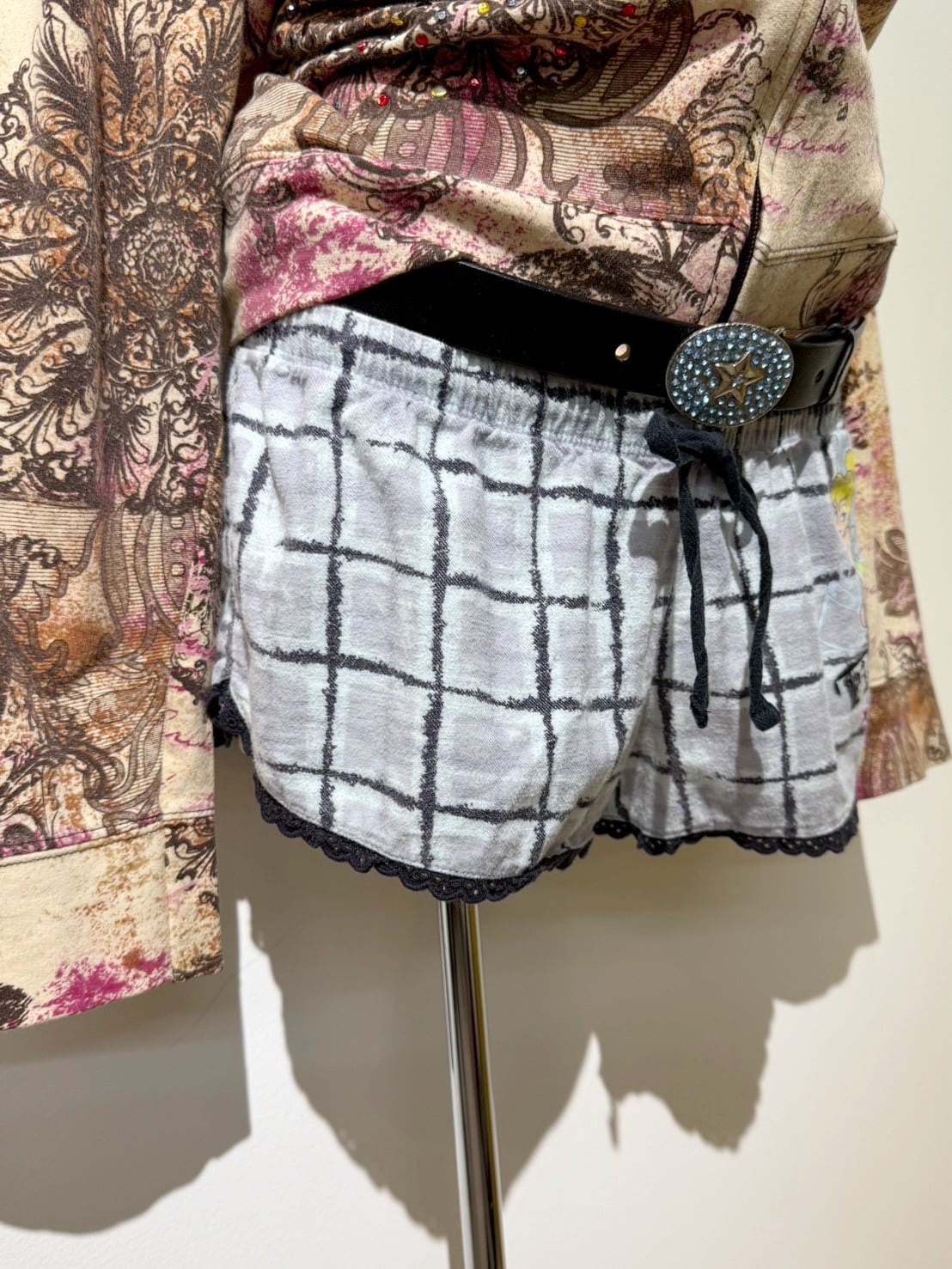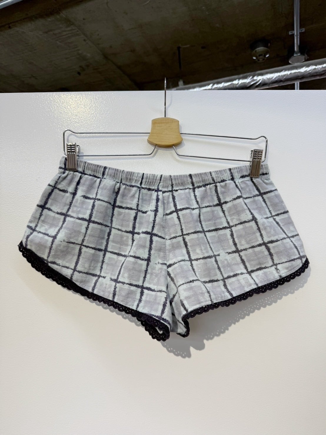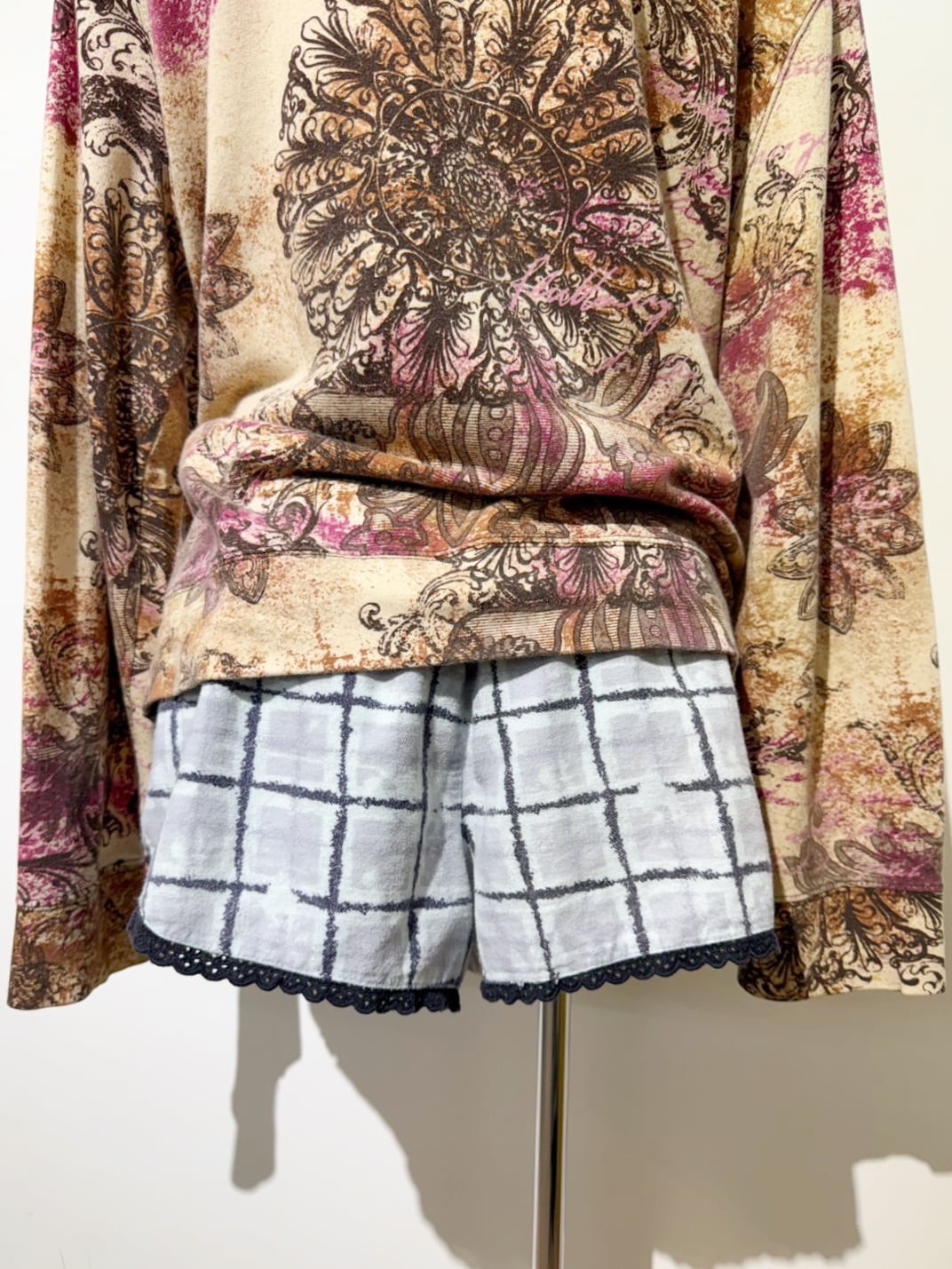 素材: 100%Cotton サイズ: ウエスト幅33cm 丈27cm 裾幅31.5cm ダメージ: 写真18枚目のような汚れが後ろウエスト部分にあります。