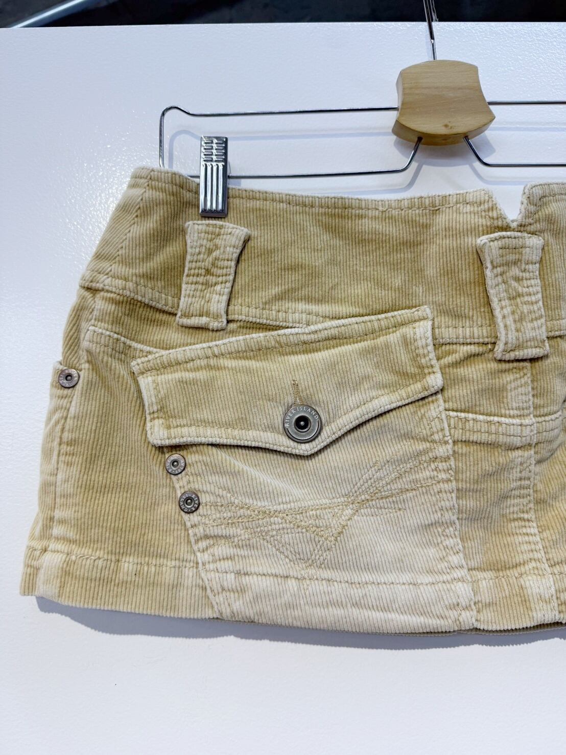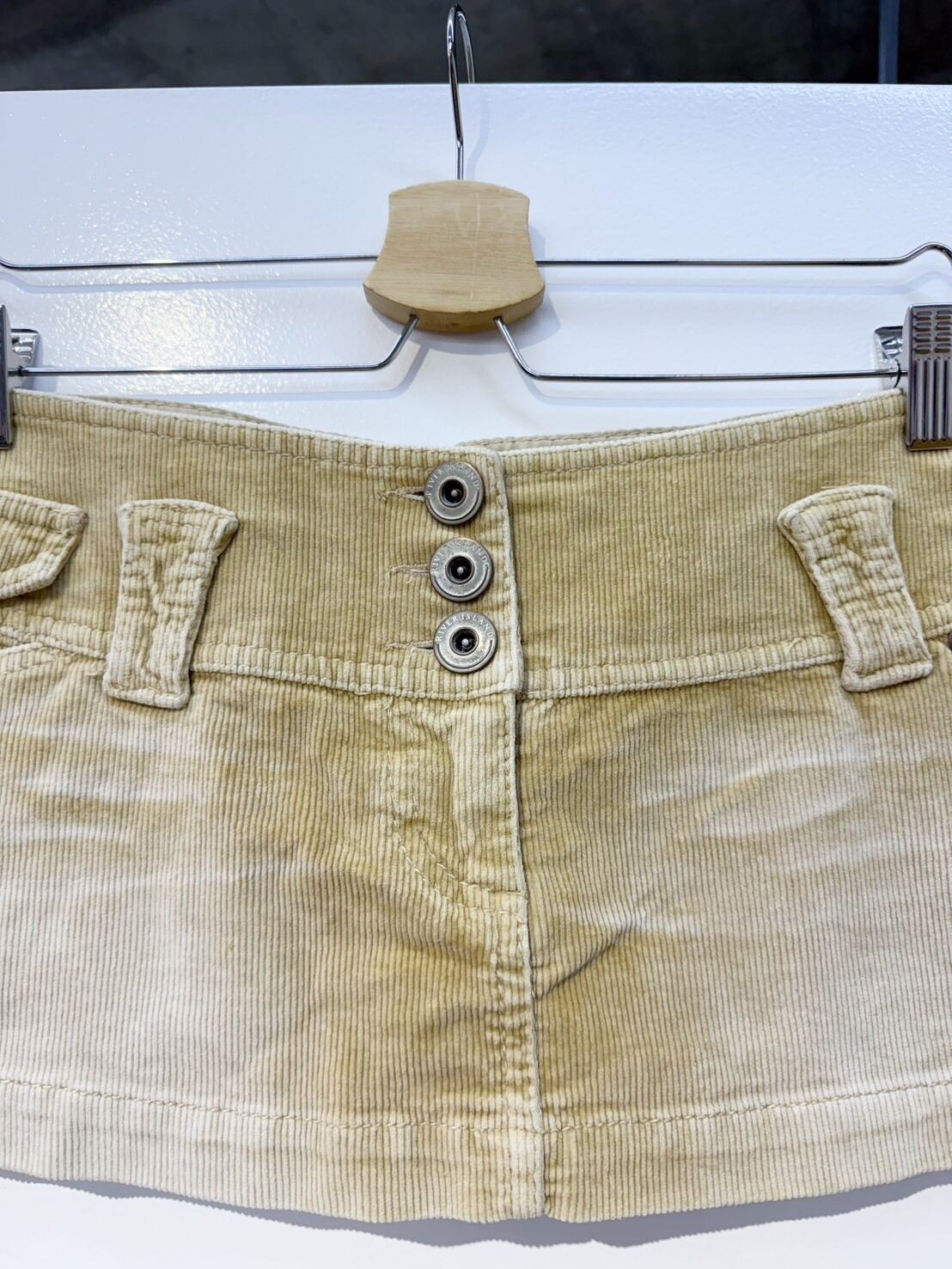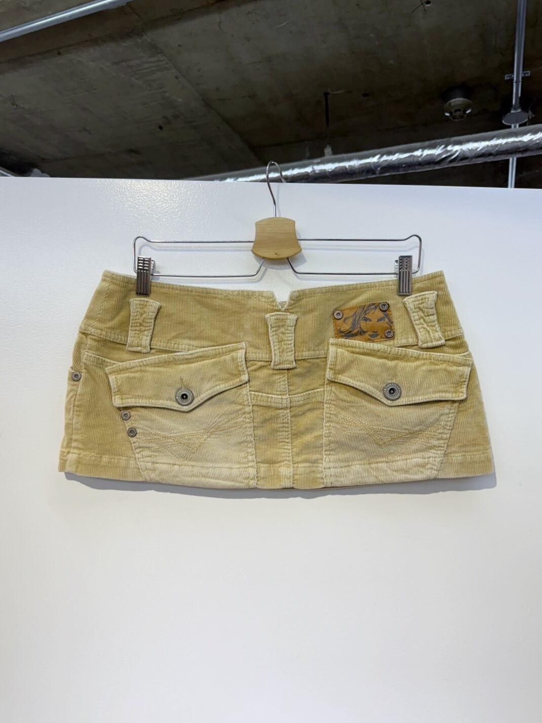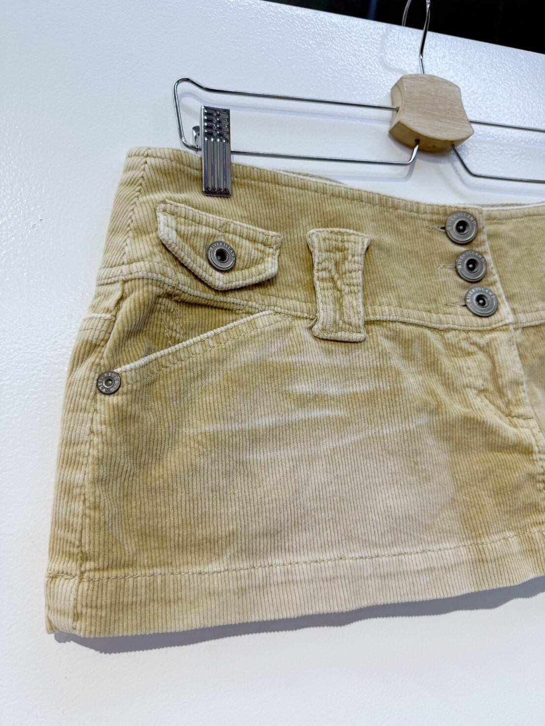 素材: 96%Cotton 4%Elastane サイズ: ウエスト幅39cm ヒップ幅53cm 丈25cm ダメージ:写真19枚目のようなシミが前側左の腰部分にあります。