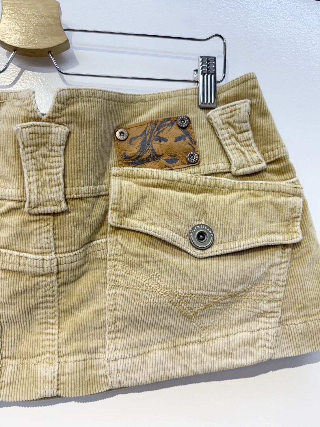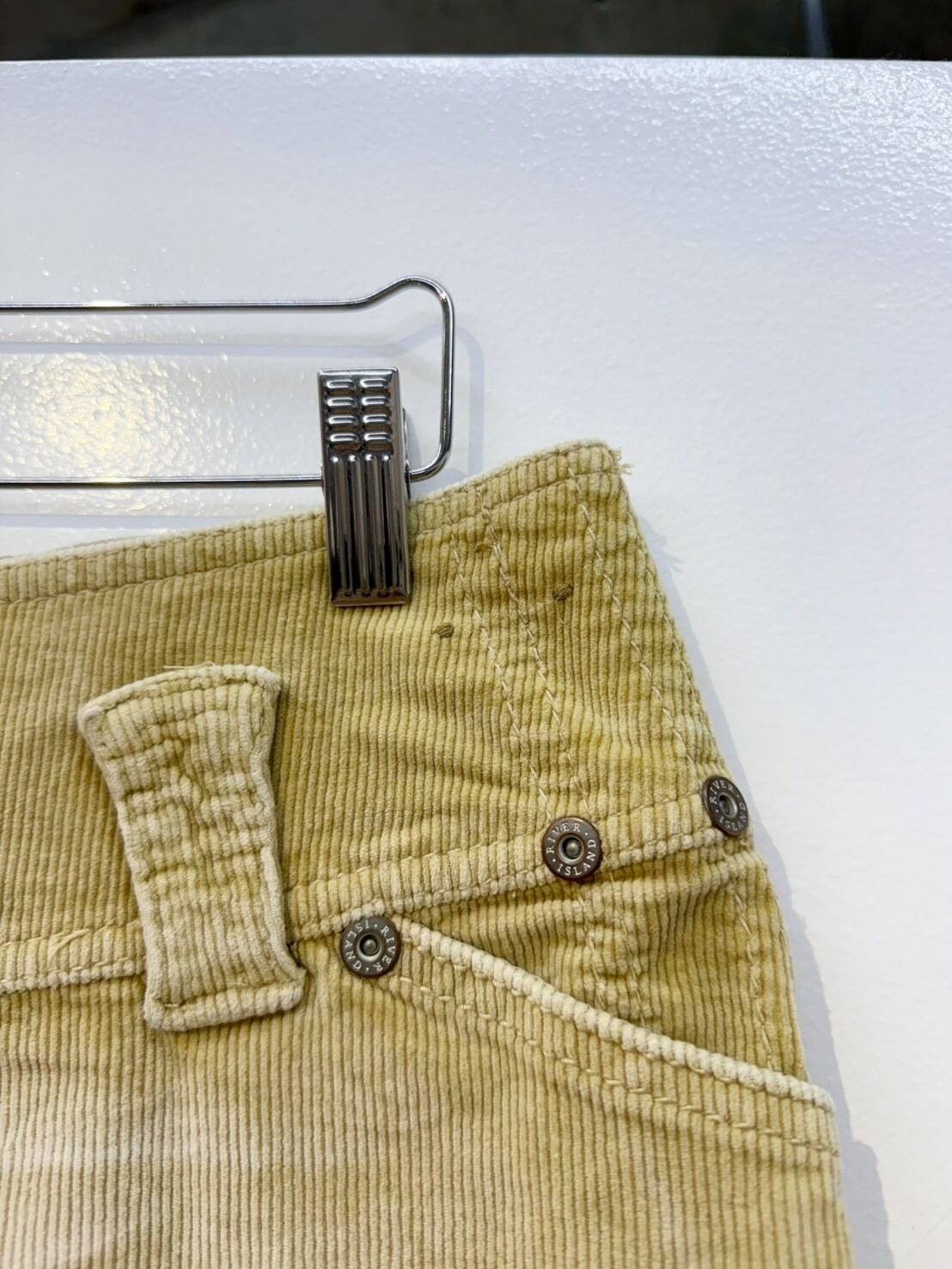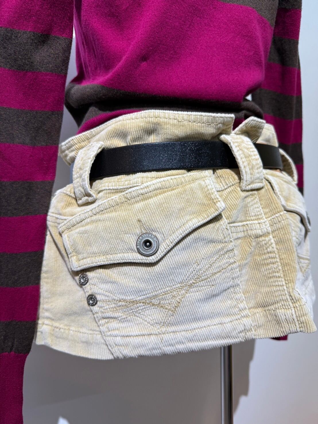 素材: 96%Cotton 4%Elastane サイズ: ウエスト幅39cm ヒップ幅53cm 丈25cm ダメージ:写真19枚目のようなシミが前側左の腰部分にあります。