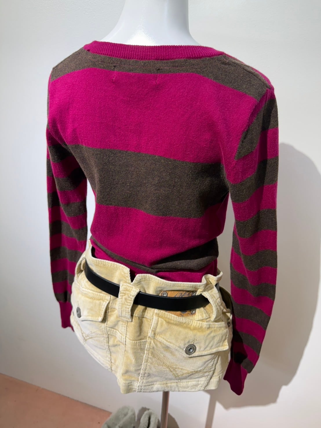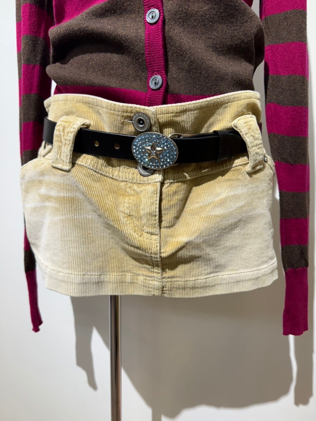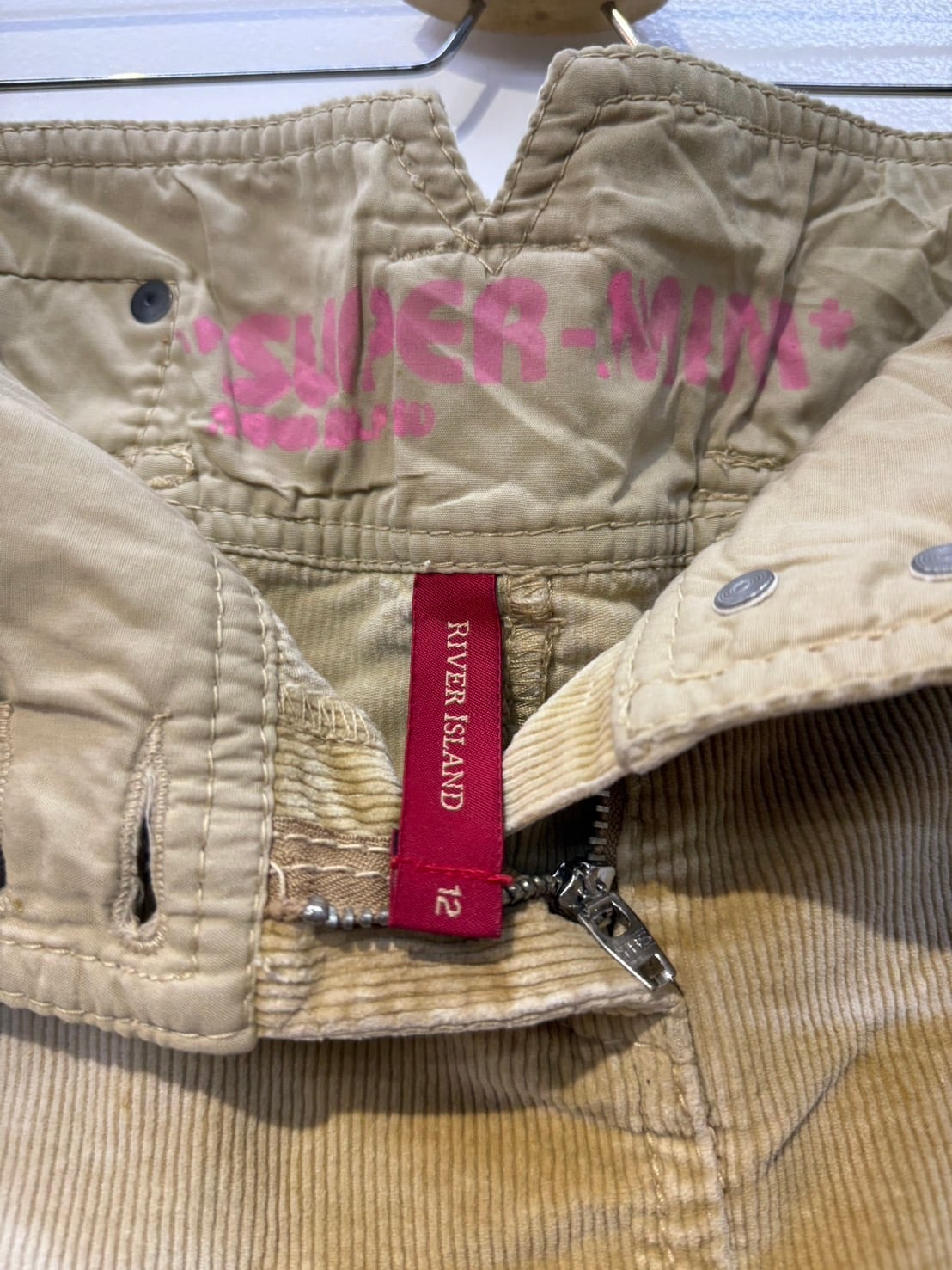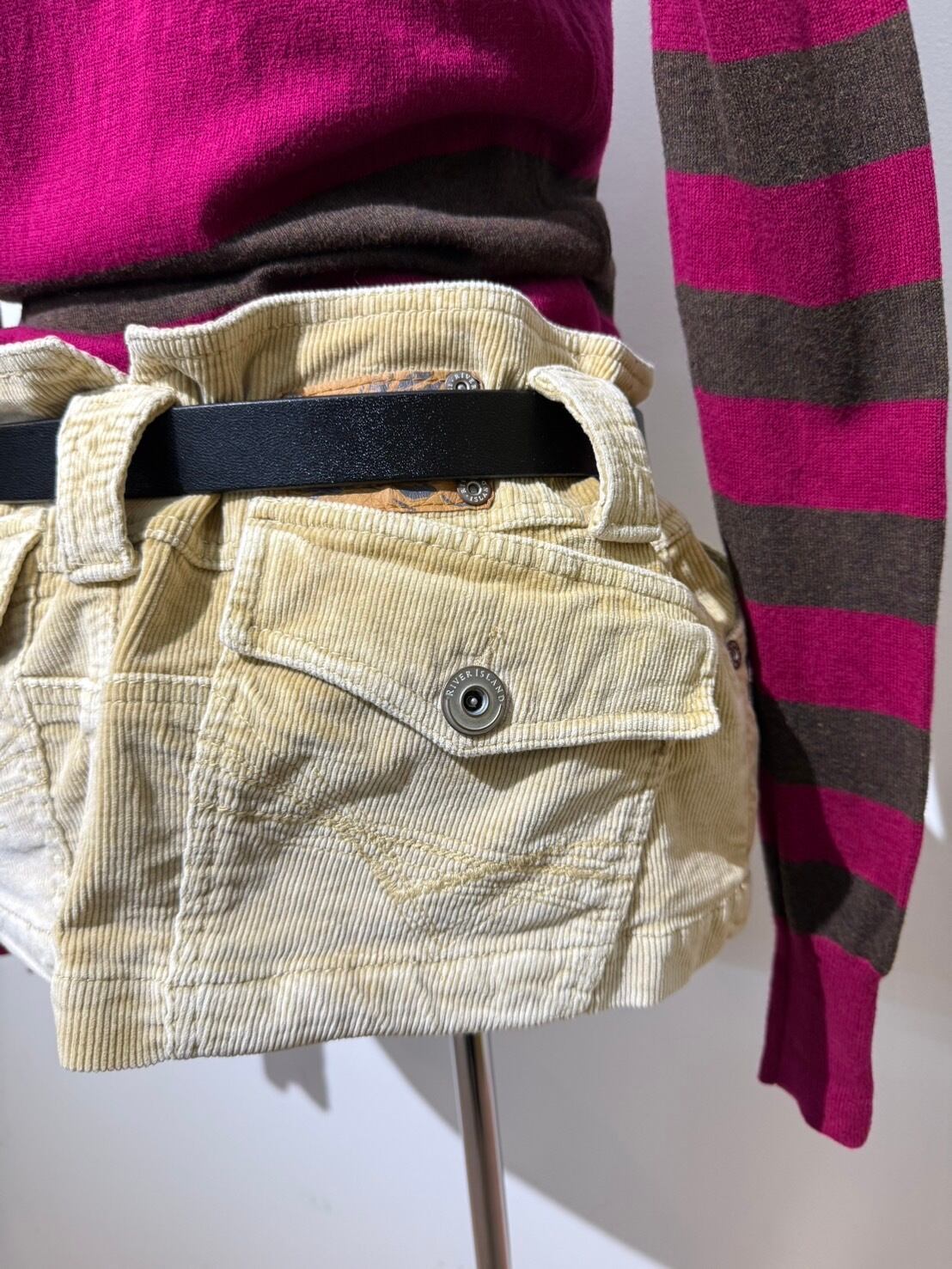 素材: 96%Cotton 4%Elastane サイズ: ウエスト幅39cm ヒップ幅53cm 丈25cm ダメージ:写真19枚目のようなシミが前側左の腰部分にあります。