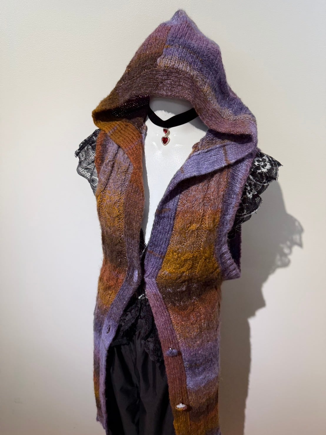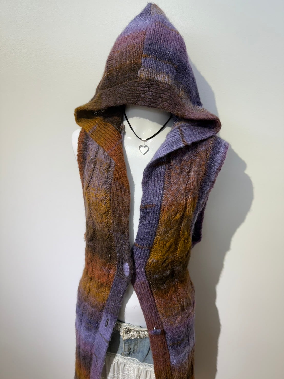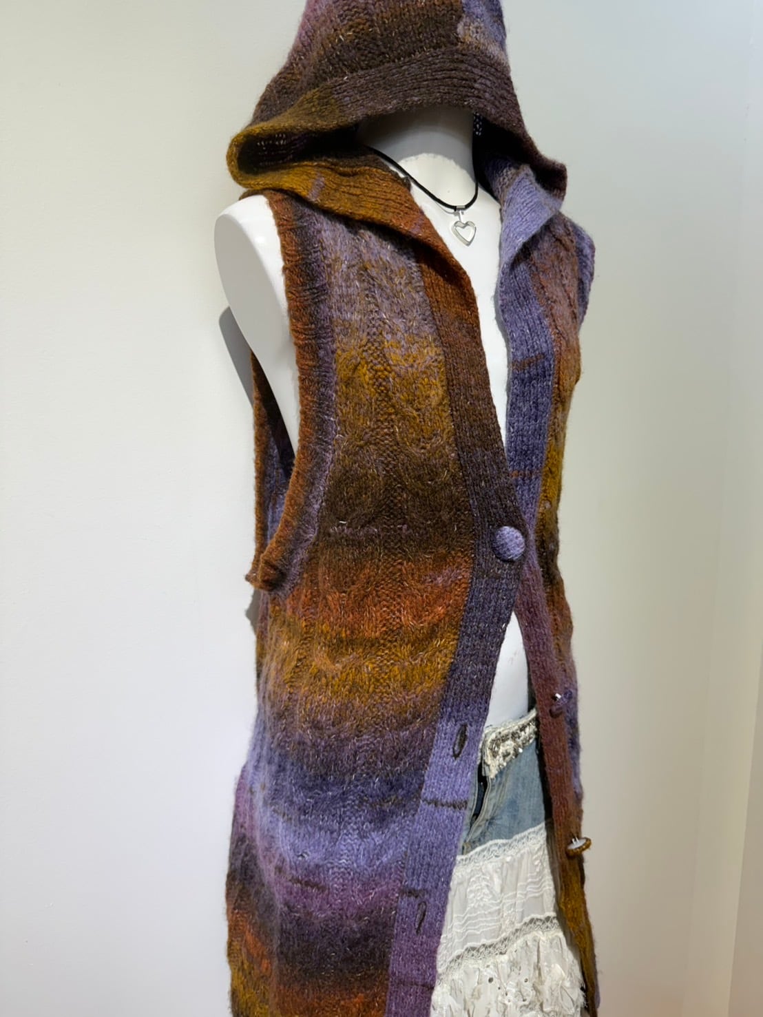 素材: 47%Acrylic 30%Wool 18%Polyester 5%Nylon サイズ: 肩幅41cm 身幅59cm 身丈83cm フード丈37cm