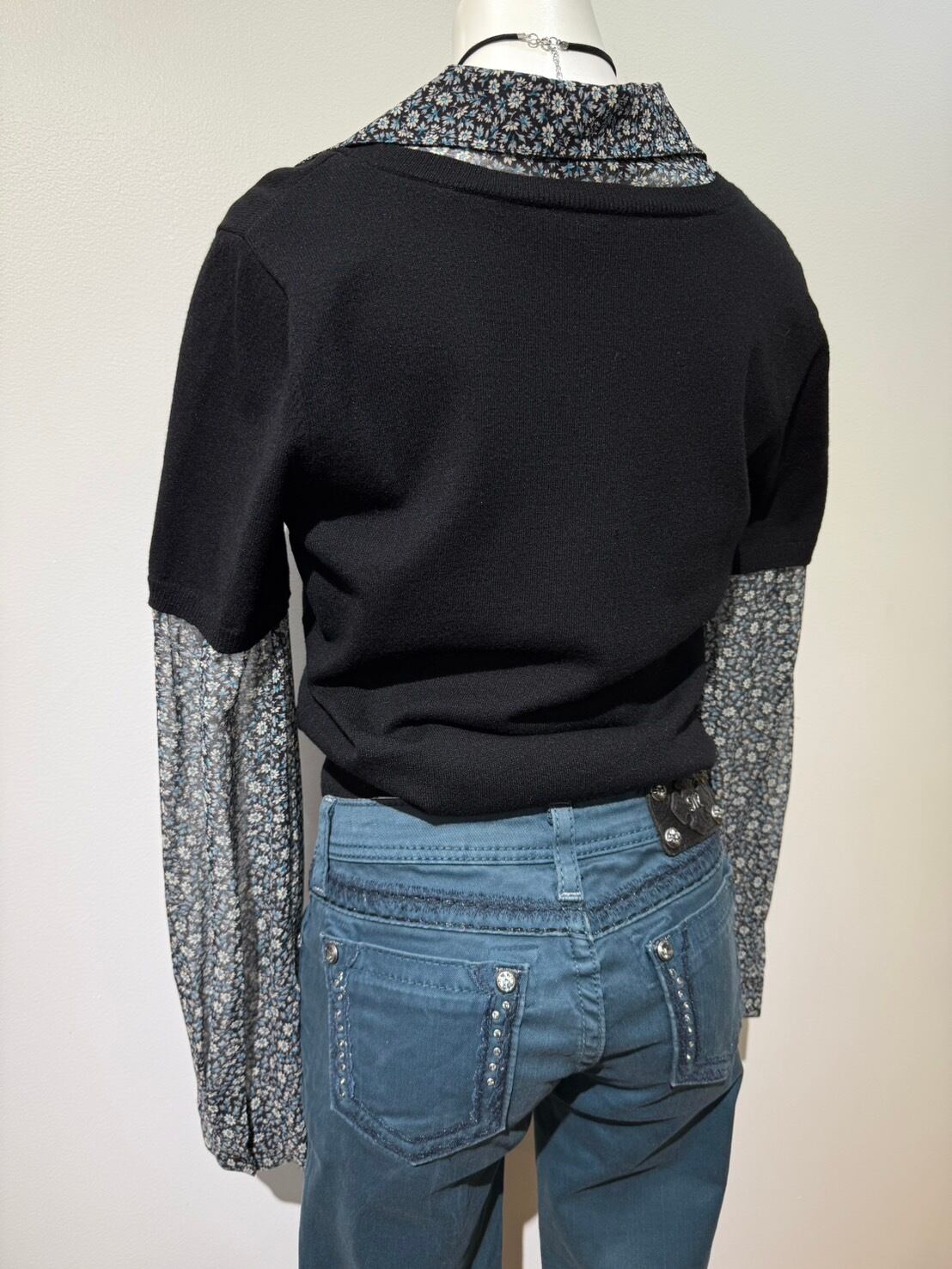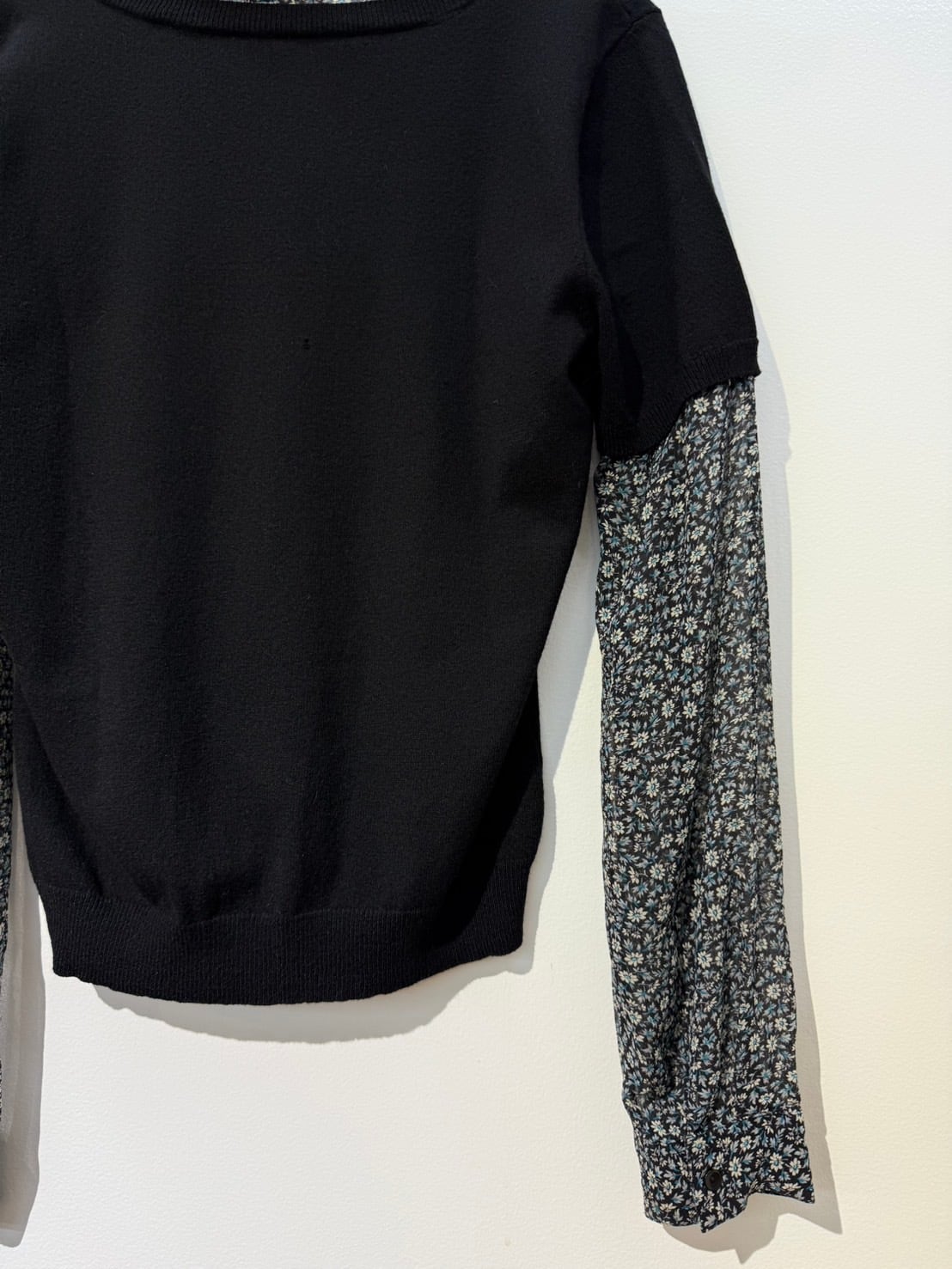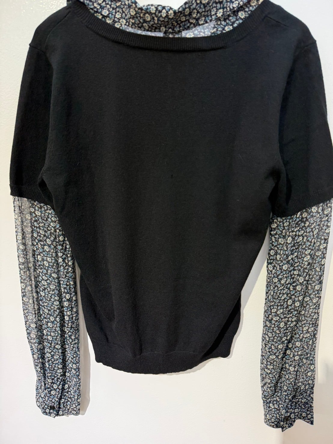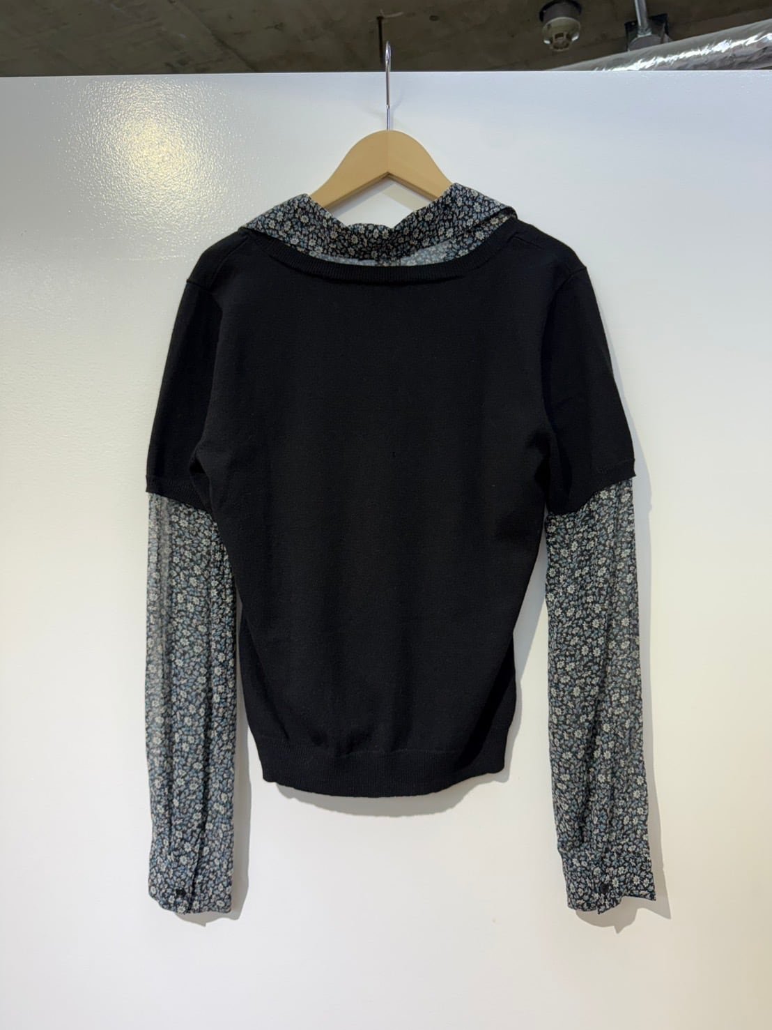 素材: Body 54%Rayon 46%Nylon Sleeve 100%Silk サイズ: M(表記) 肩幅37cm 袖丈60.5cm 身幅40cm 身丈53cm 襟丈7cm ダメージ: 写真19枚目のような小さな穴が背中側にあります。