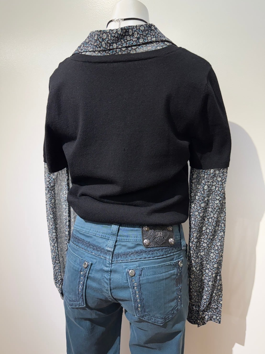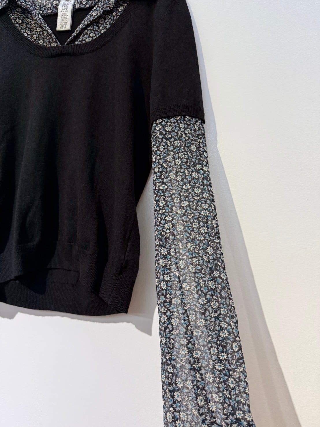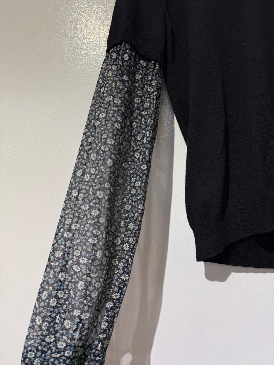 素材: Body 54%Rayon 46%Nylon Sleeve 100%Silk サイズ: M(表記) 肩幅37cm 袖丈60.5cm 身幅40cm 身丈53cm 襟丈7cm ダメージ: 写真19枚目のような小さな穴が背中側にあります。