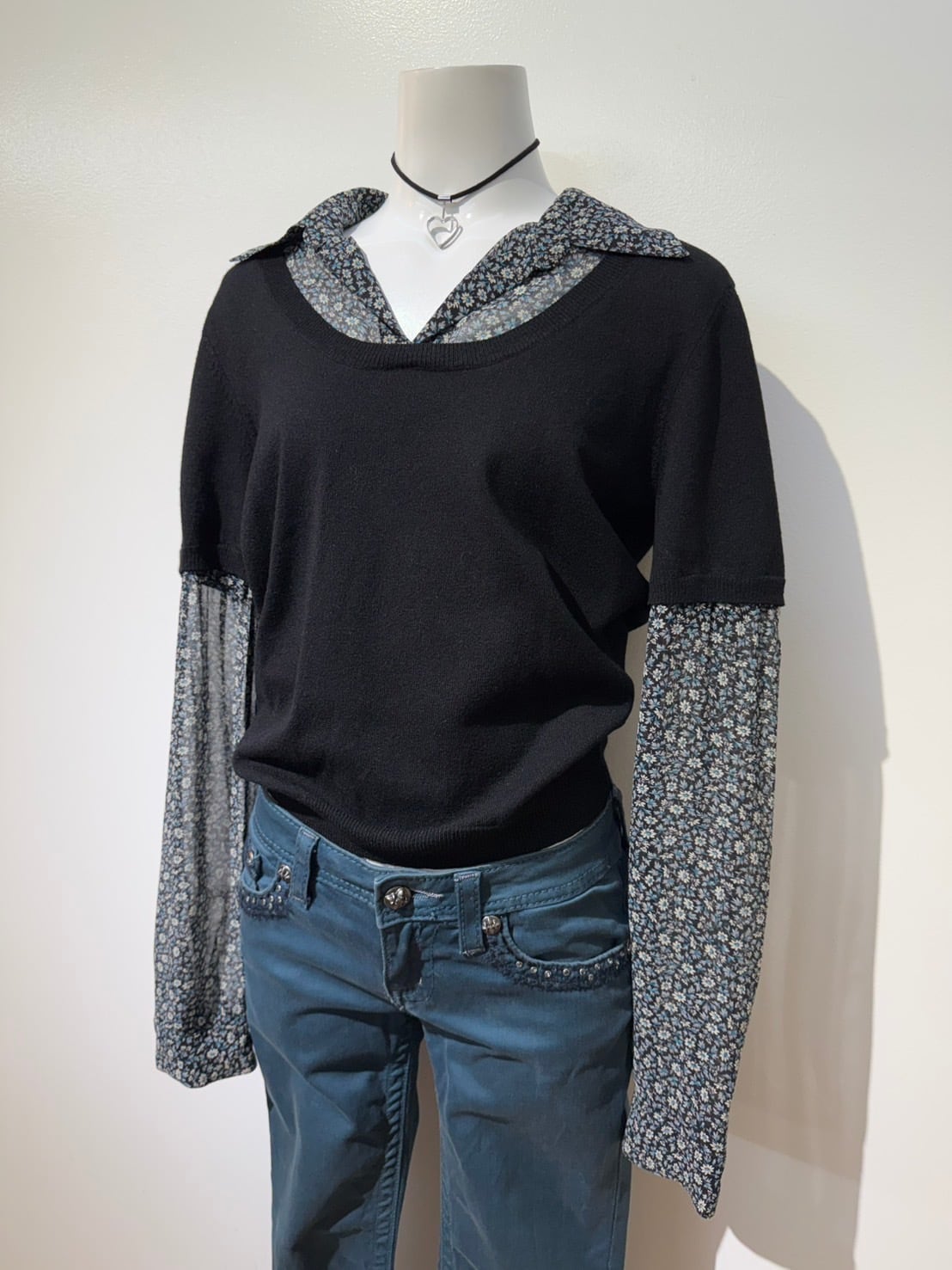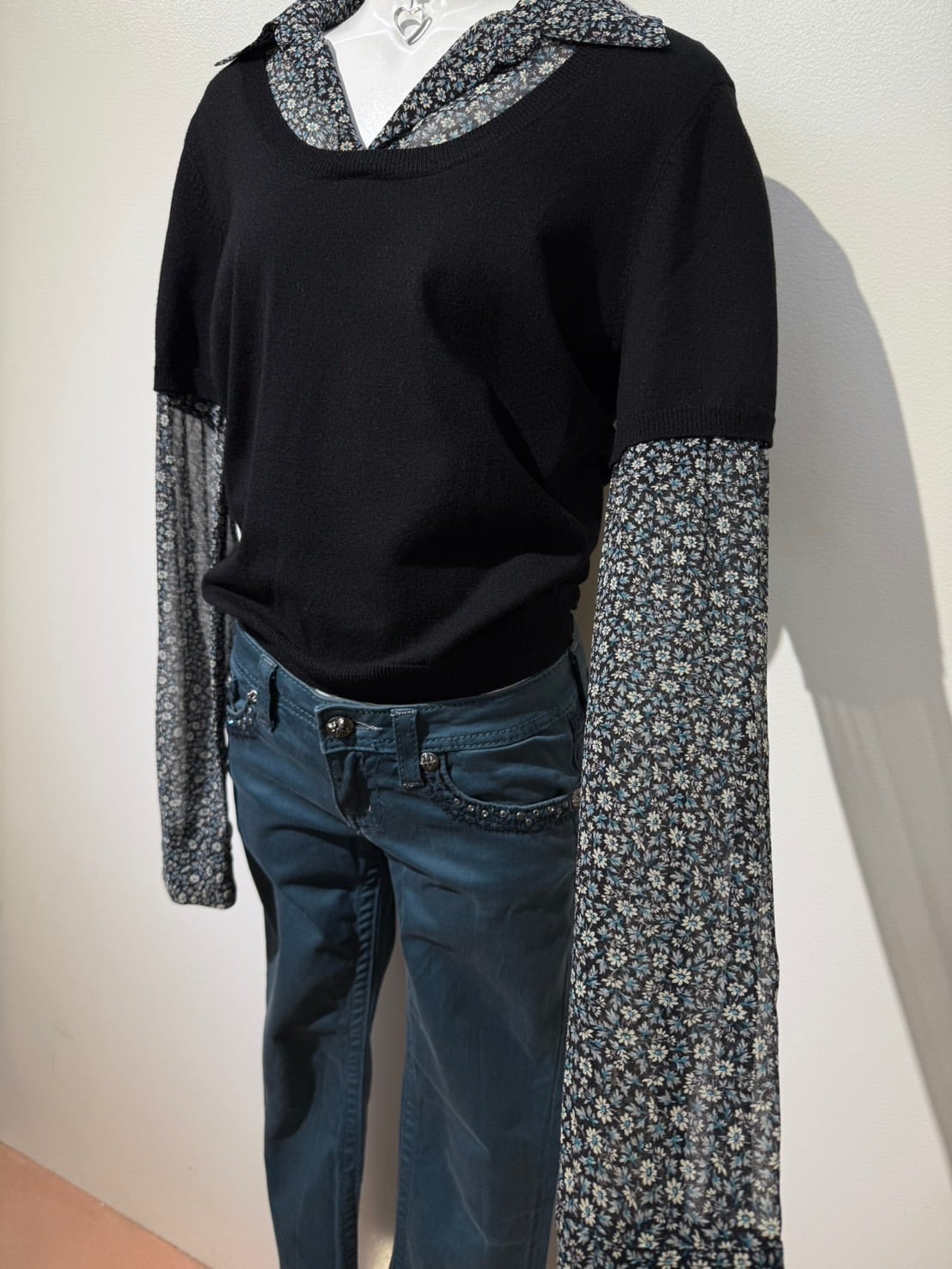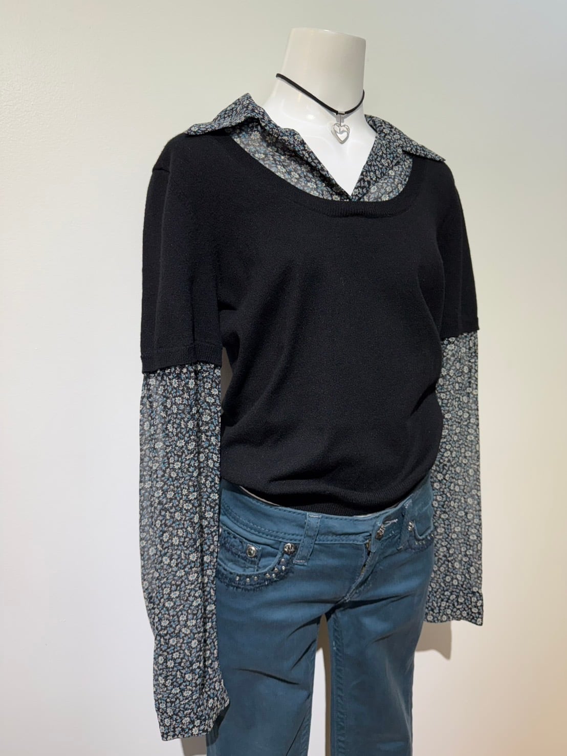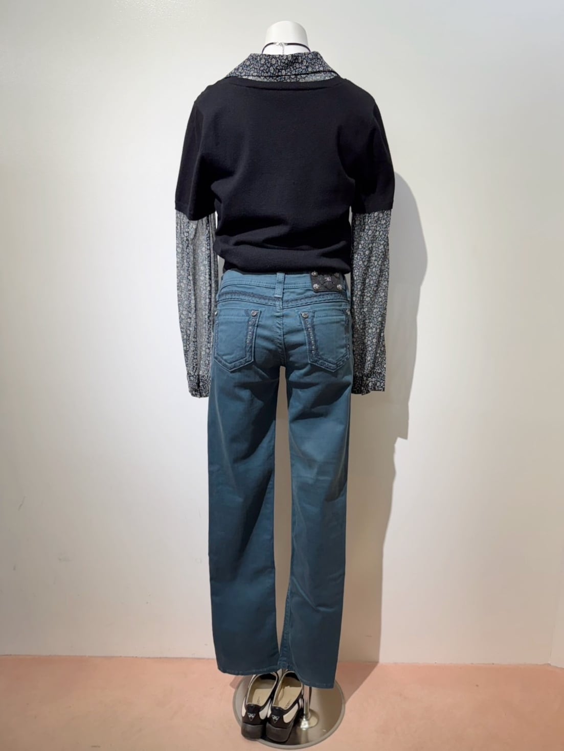 素材: Body 54%Rayon 46%Nylon Sleeve 100%Silk サイズ: M(表記) 肩幅37cm 袖丈60.5cm 身幅40cm 身丈53cm 襟丈7cm ダメージ: 写真19枚目のような小さな穴が背中側にあります。