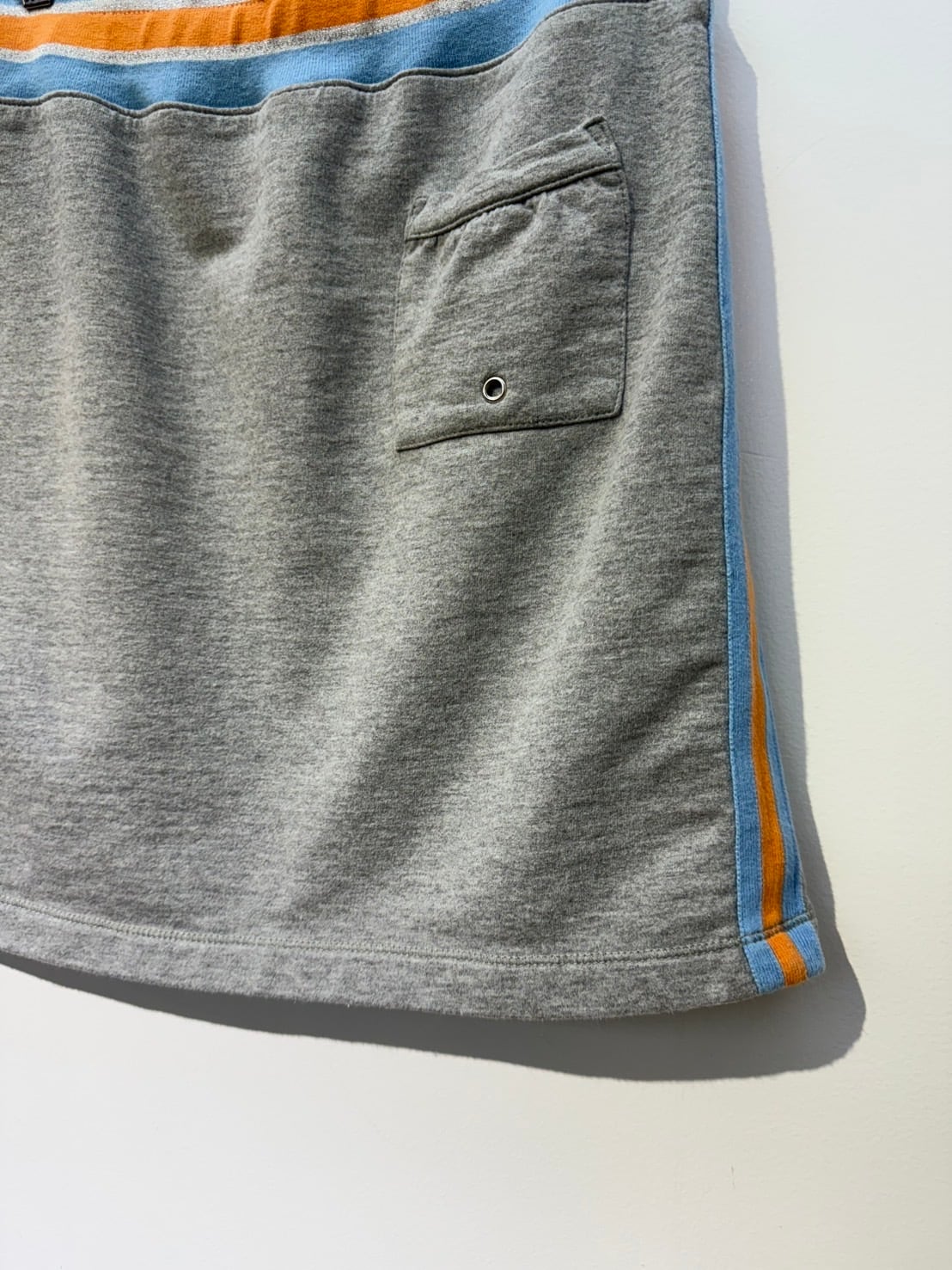 素材: 100%Cotton サイズ: ウエスト幅37 ヒップ幅44cm 丈50cm スリット丈21cm ダメージ: 写真18〜20枚目のような汚れと糸のほつれがウエスト周辺にあります。 Made in U.S.A