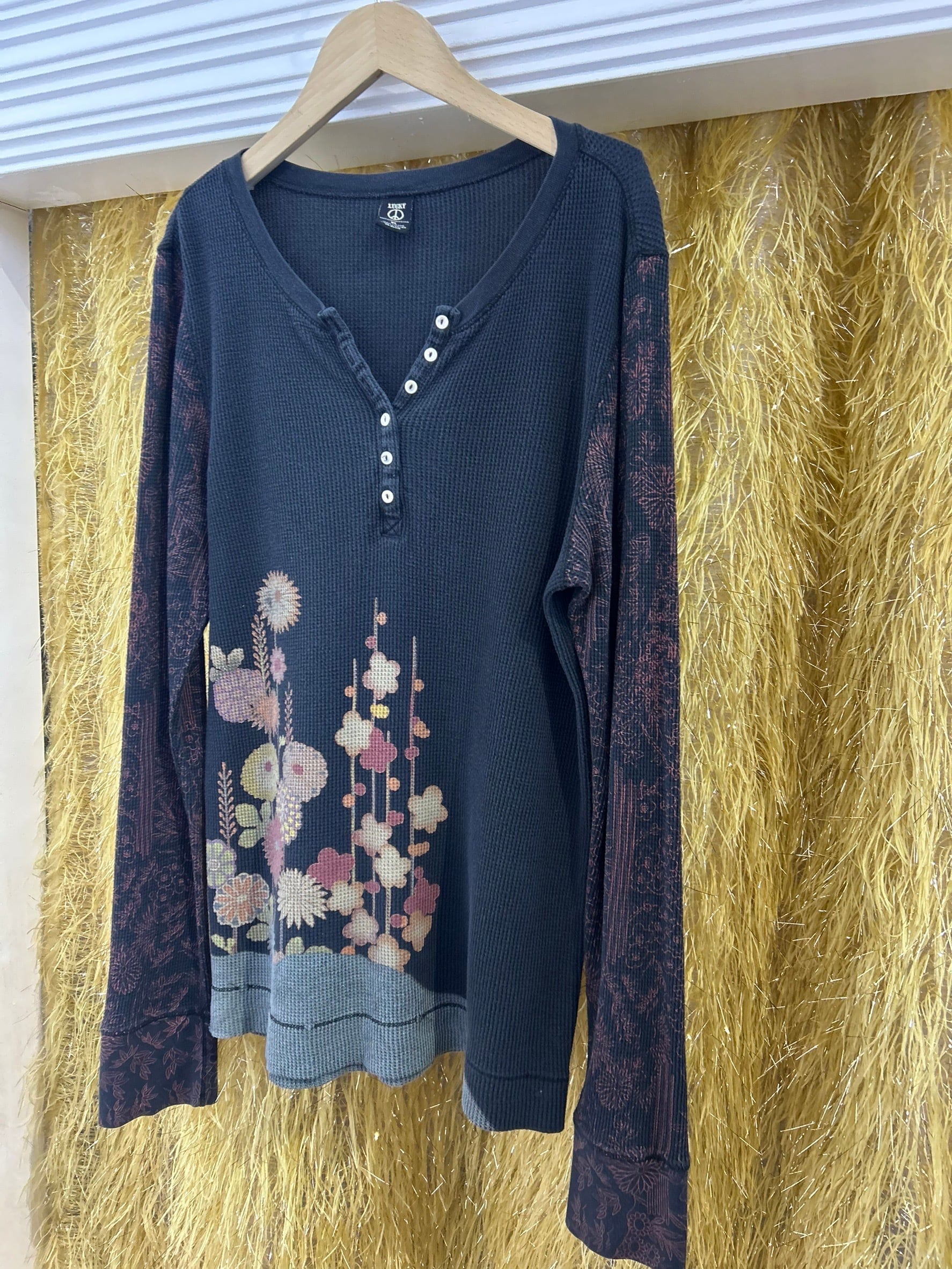 素材: 100%Cotton サイズ: XL(表記) 着丈72cm 肩幅44cm 身幅46cm 袖丈71cm ダメージ: 写真15.16枚目の縫い目のダメージ、17枚目の生地のダメージがあります