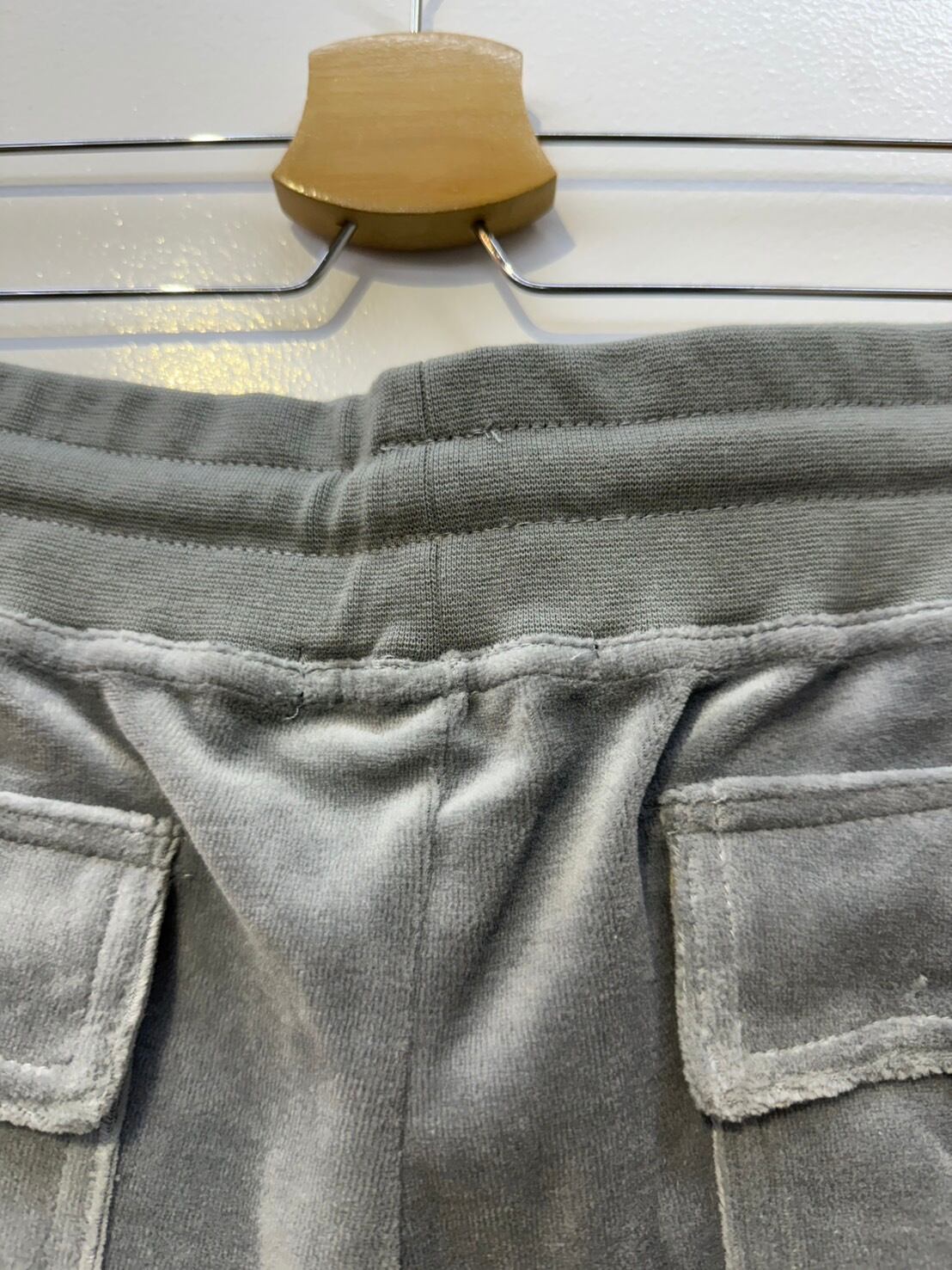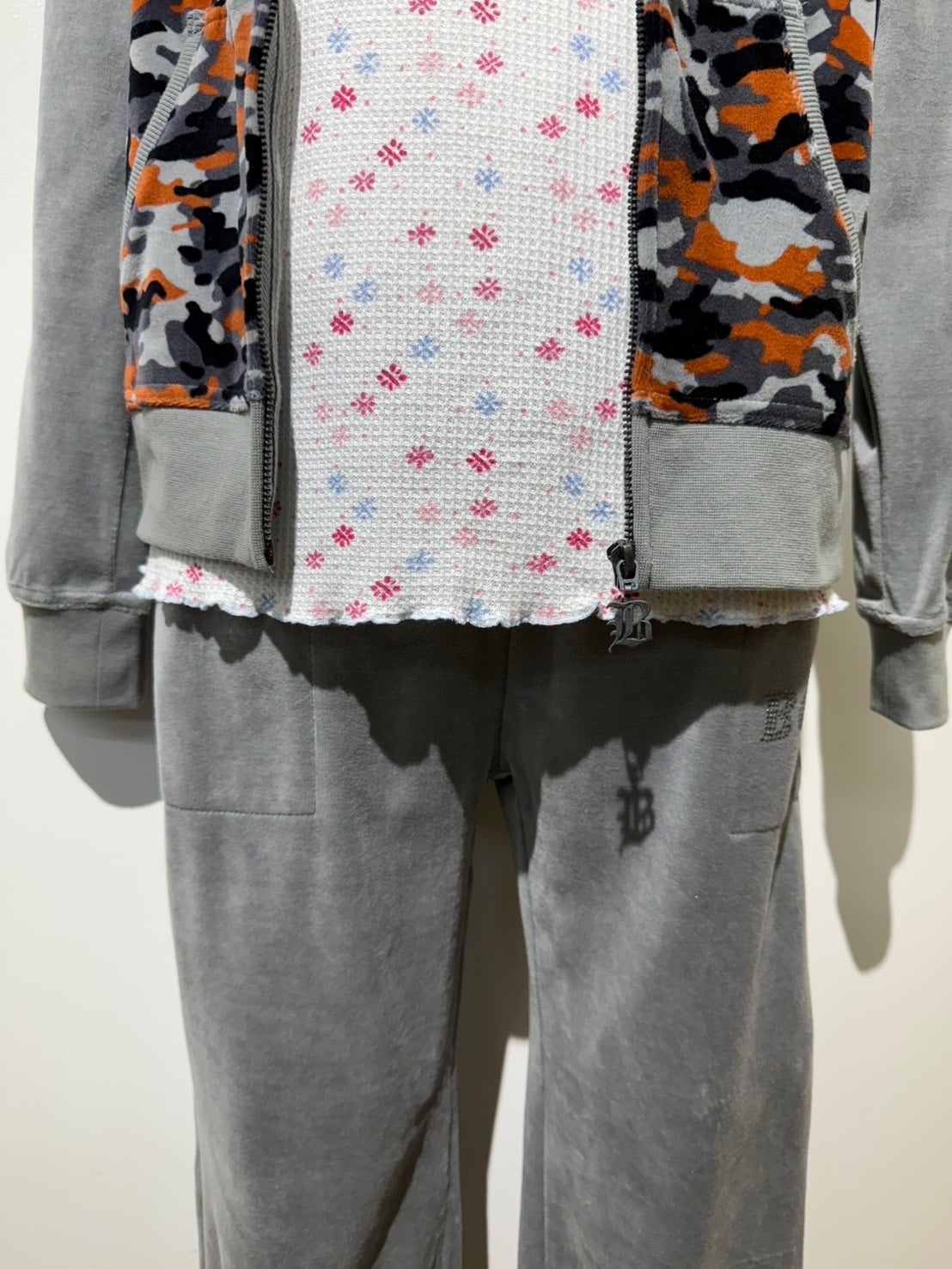 素材: 80%Cotton 20%Polyester サイズ: M(表記) Tops 肩幅39cm 袖丈61cm 身幅45cm 身丈53.5cm フード丈23cm Pants ウエスト幅37.5cm 股上23cm 股下81cm わたり幅24.5cm 裾幅23cm ダメージ: 写真20枚目のようなウエスト部分に糸のほつれがあります。