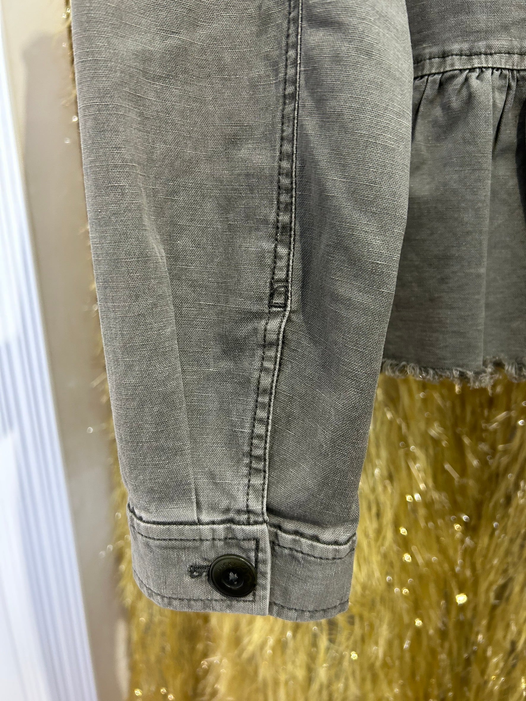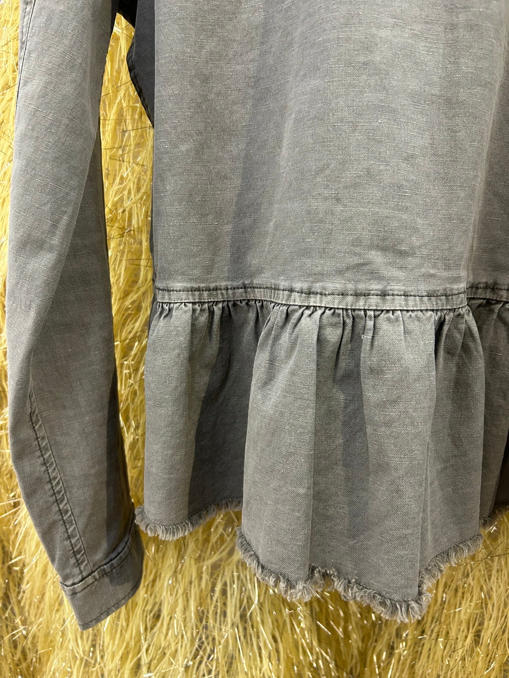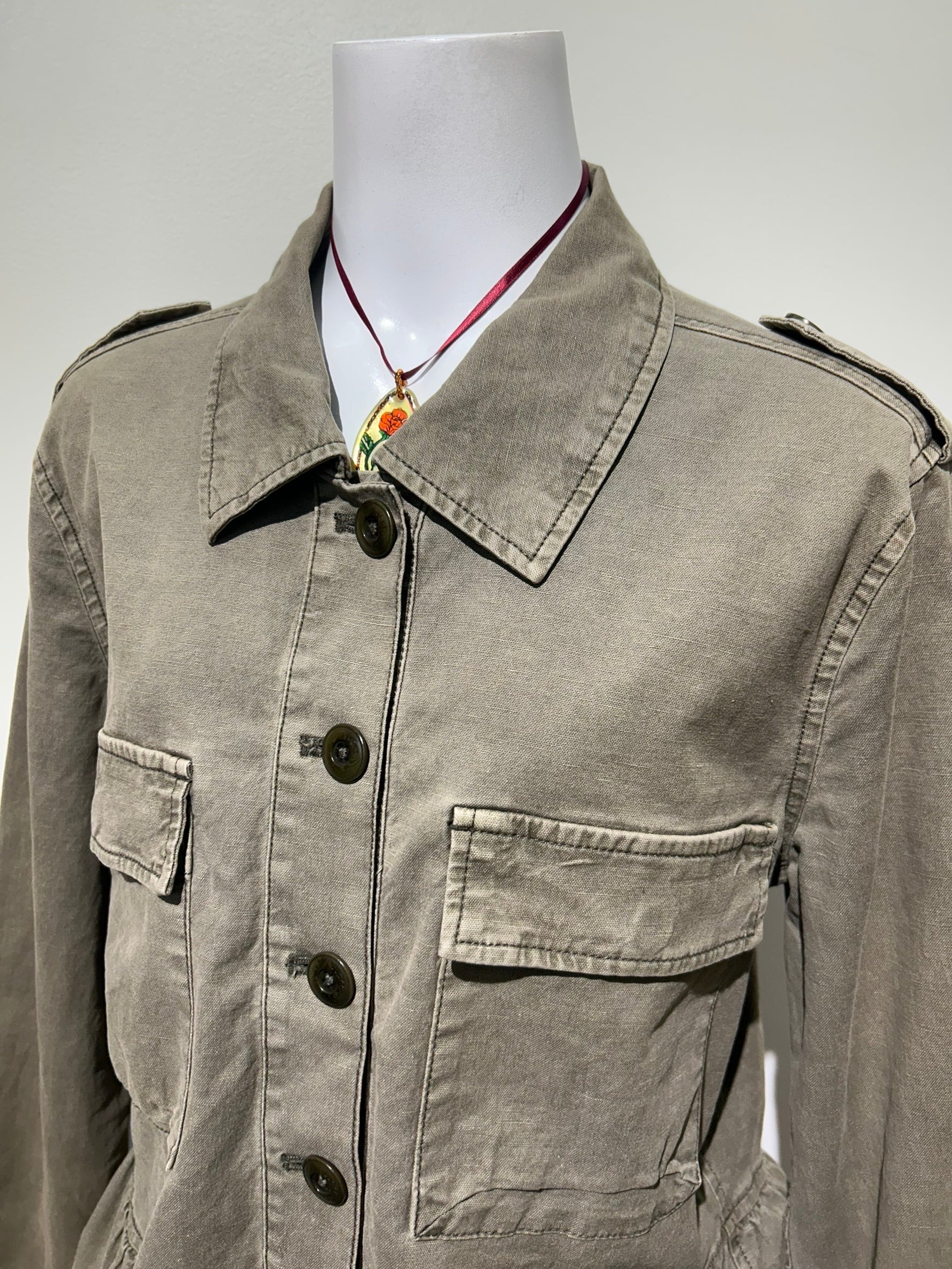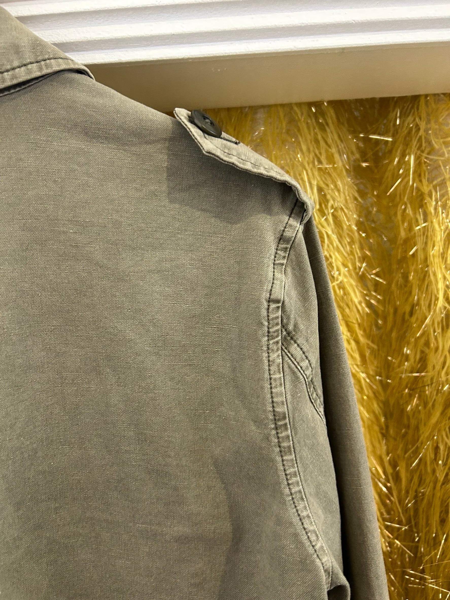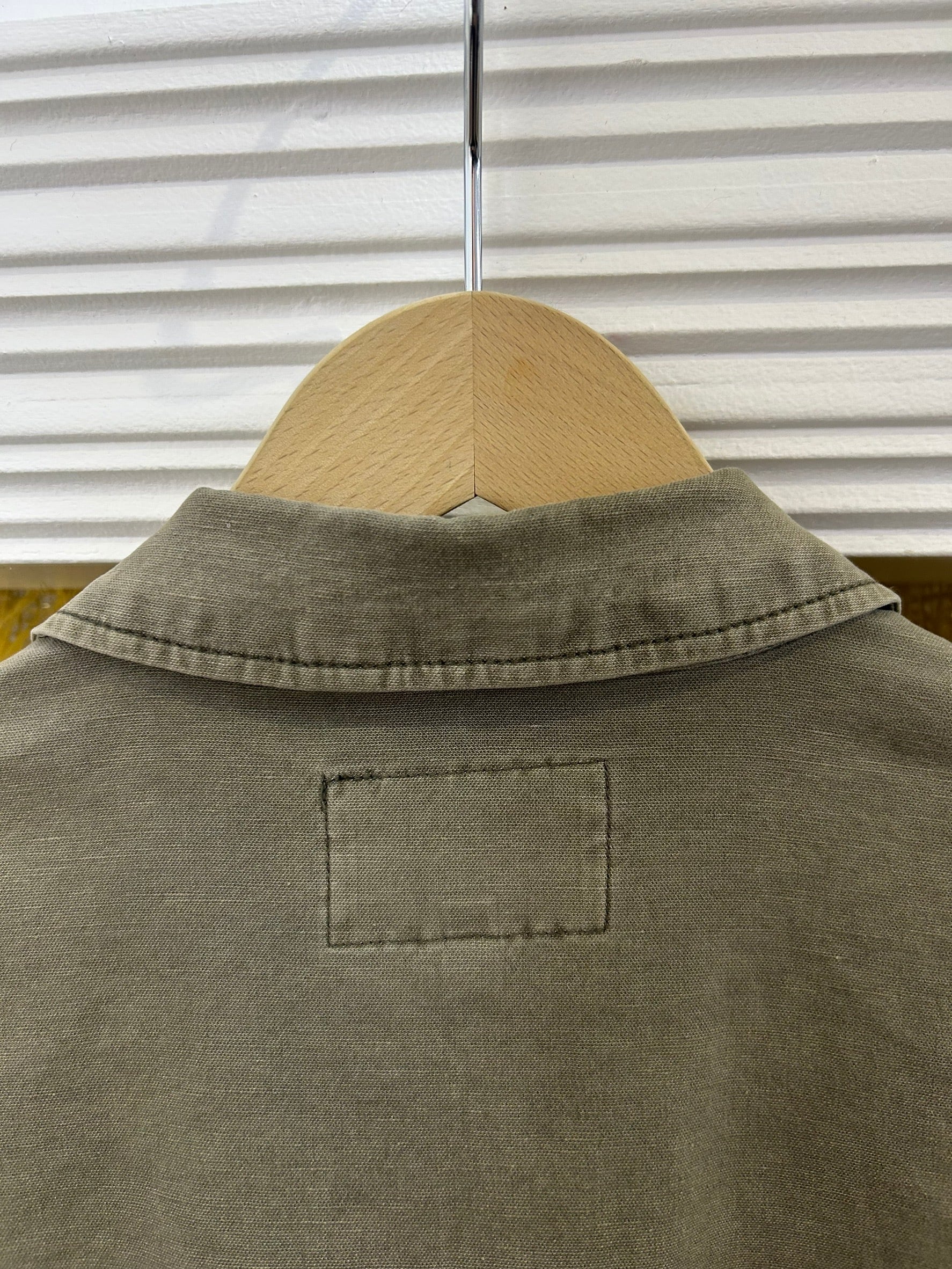 素材: 64%Cotton 18%Linen 17%Viscose 1%Elastan サイズ: S(表記) 着丈58cm 肩幅40cm 身幅49cm 袖丈61cm ダメージ: 写真20枚目の汚れがあります