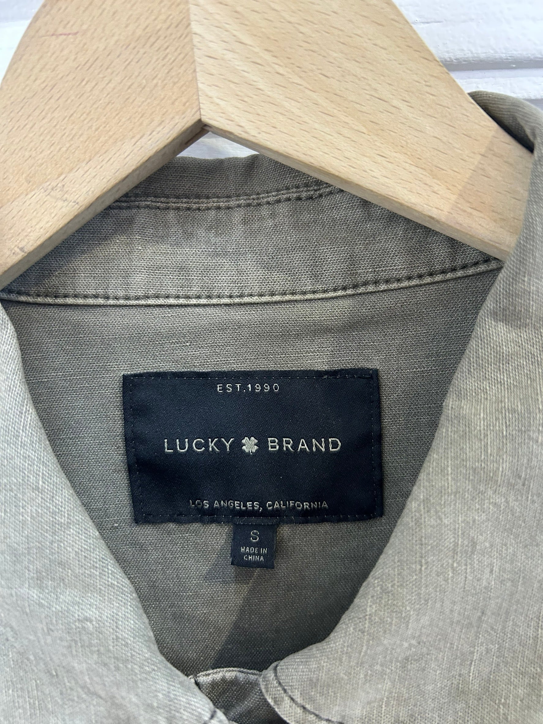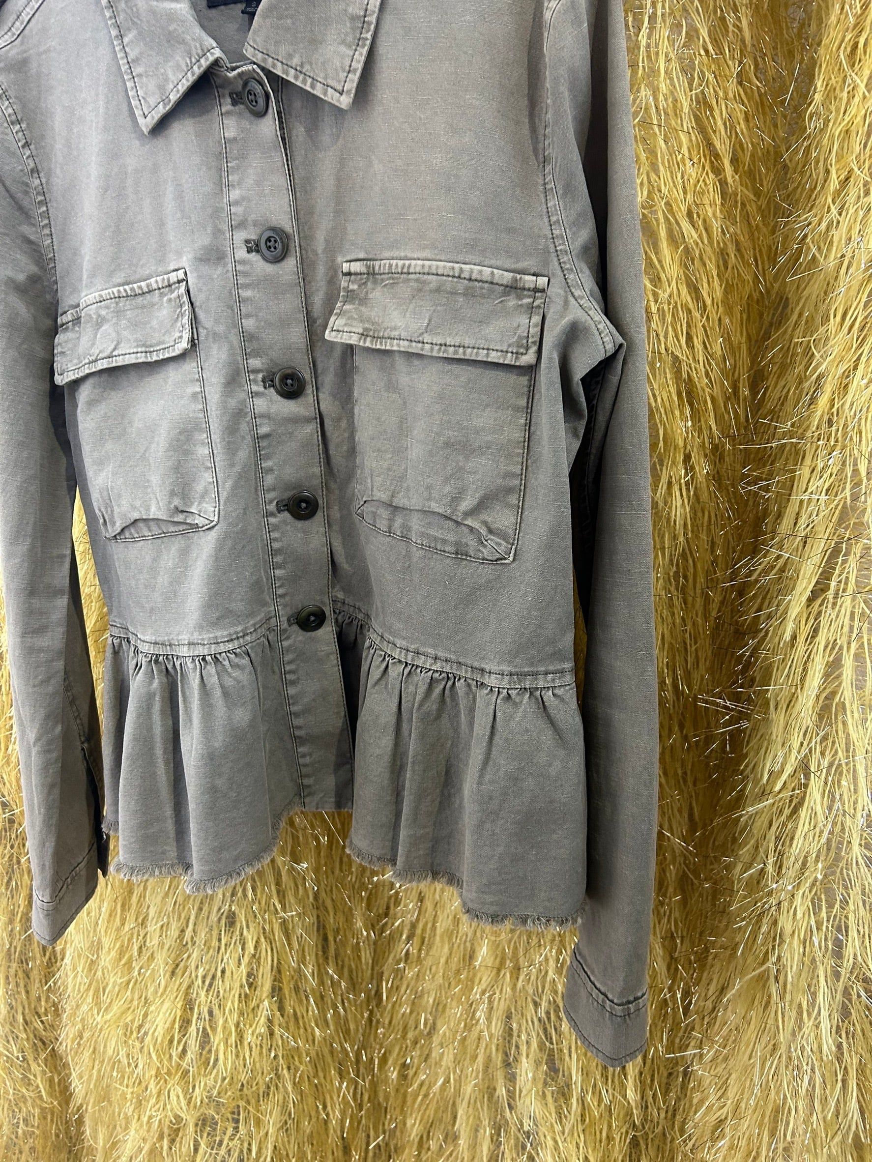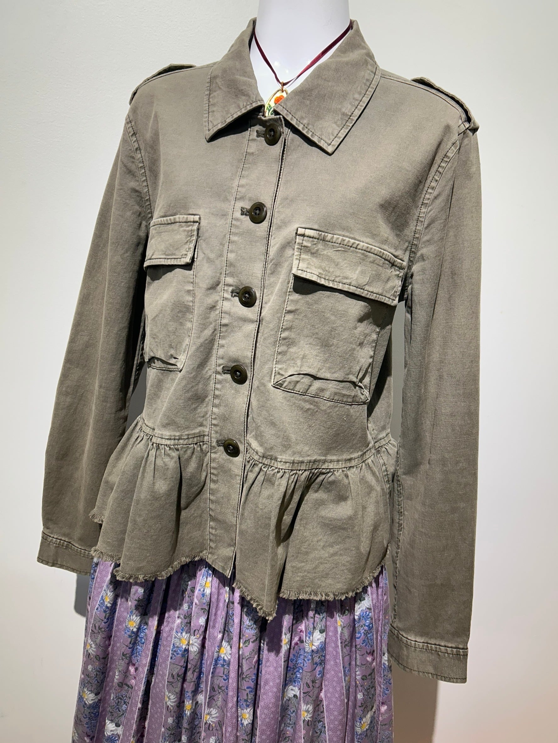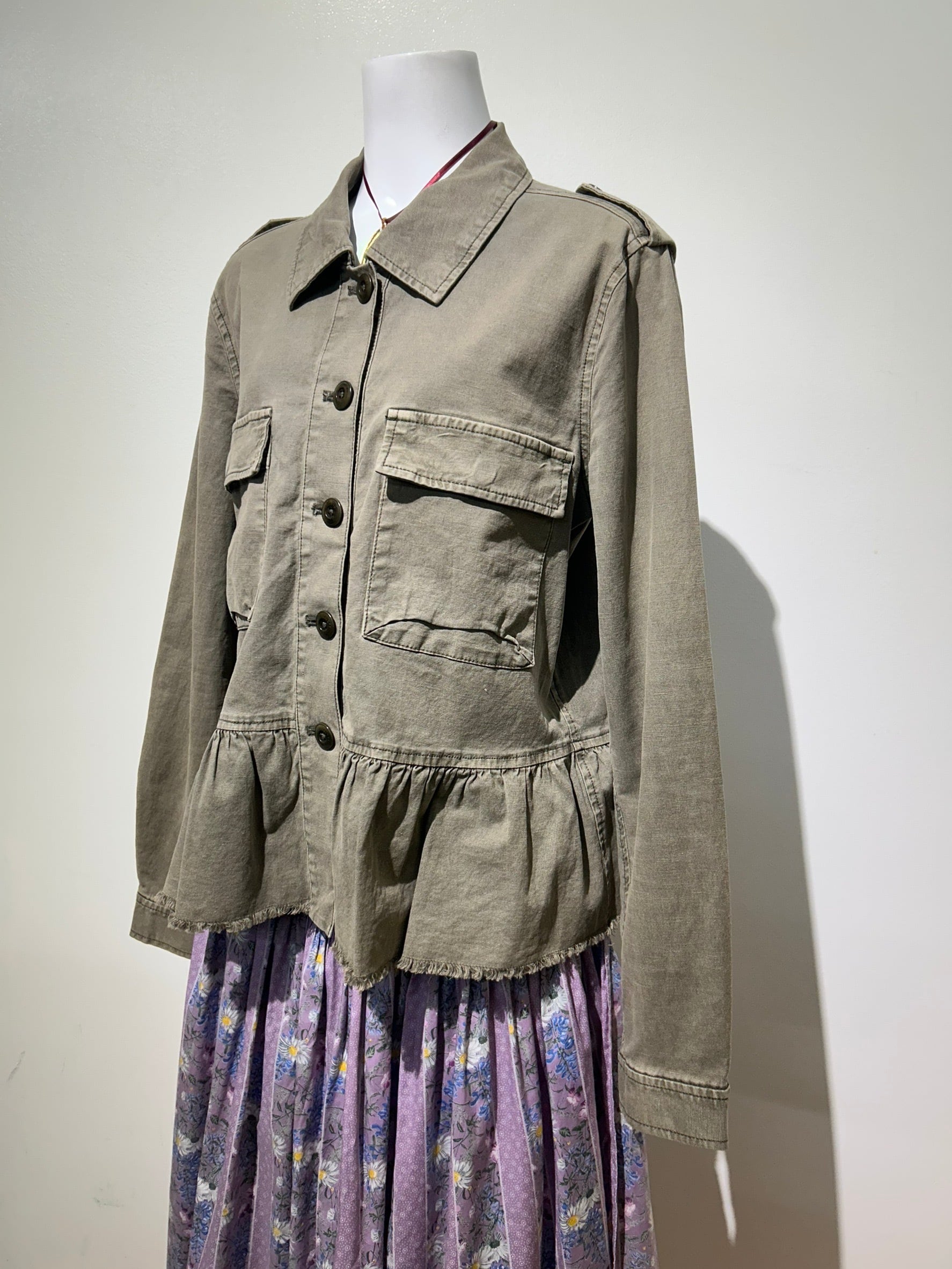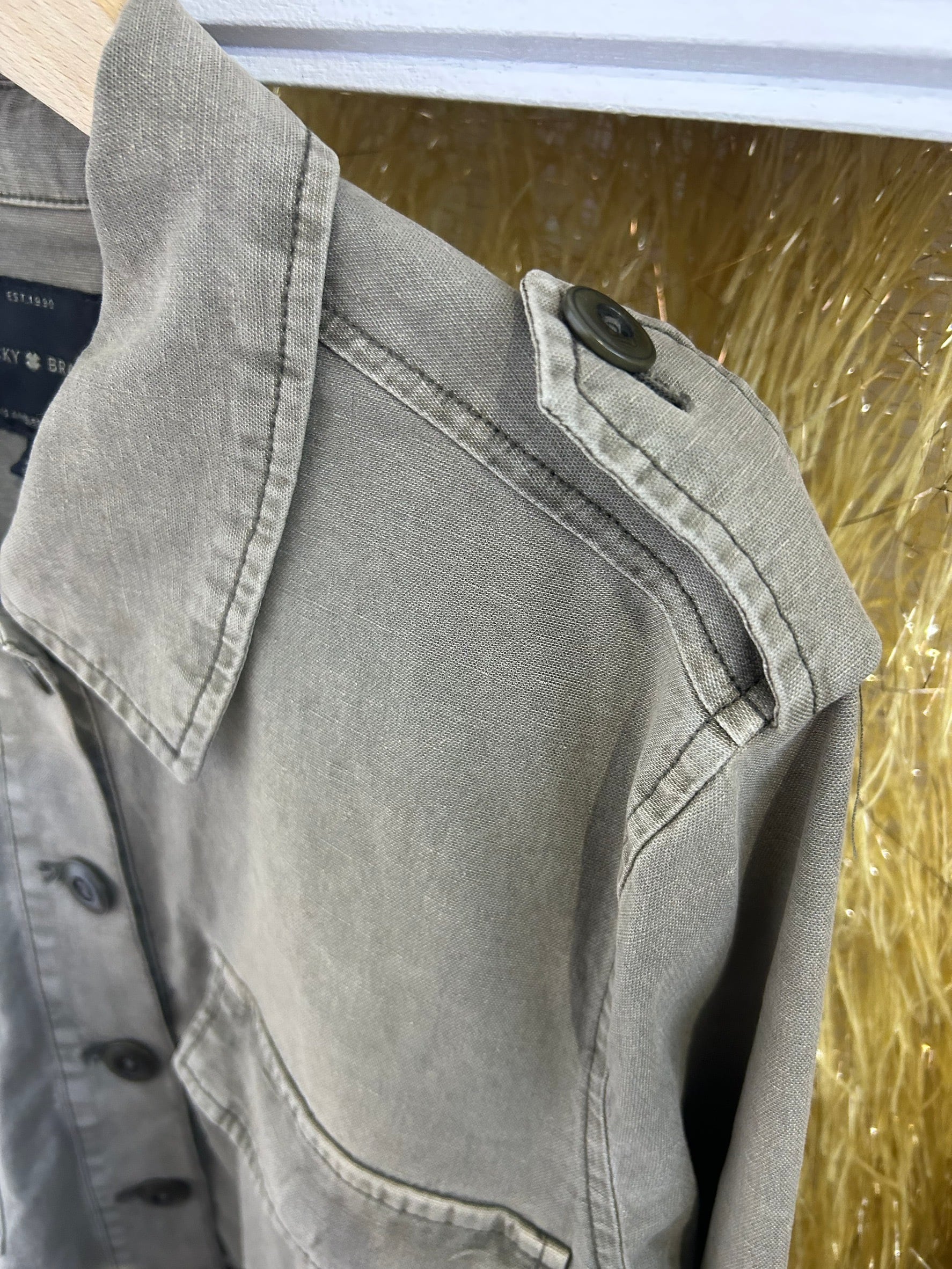 素材: 64%Cotton 18%Linen 17%Viscose 1%Elastan サイズ: S(表記) 着丈58cm 肩幅40cm 身幅49cm 袖丈61cm ダメージ: 写真20枚目の汚れがあります