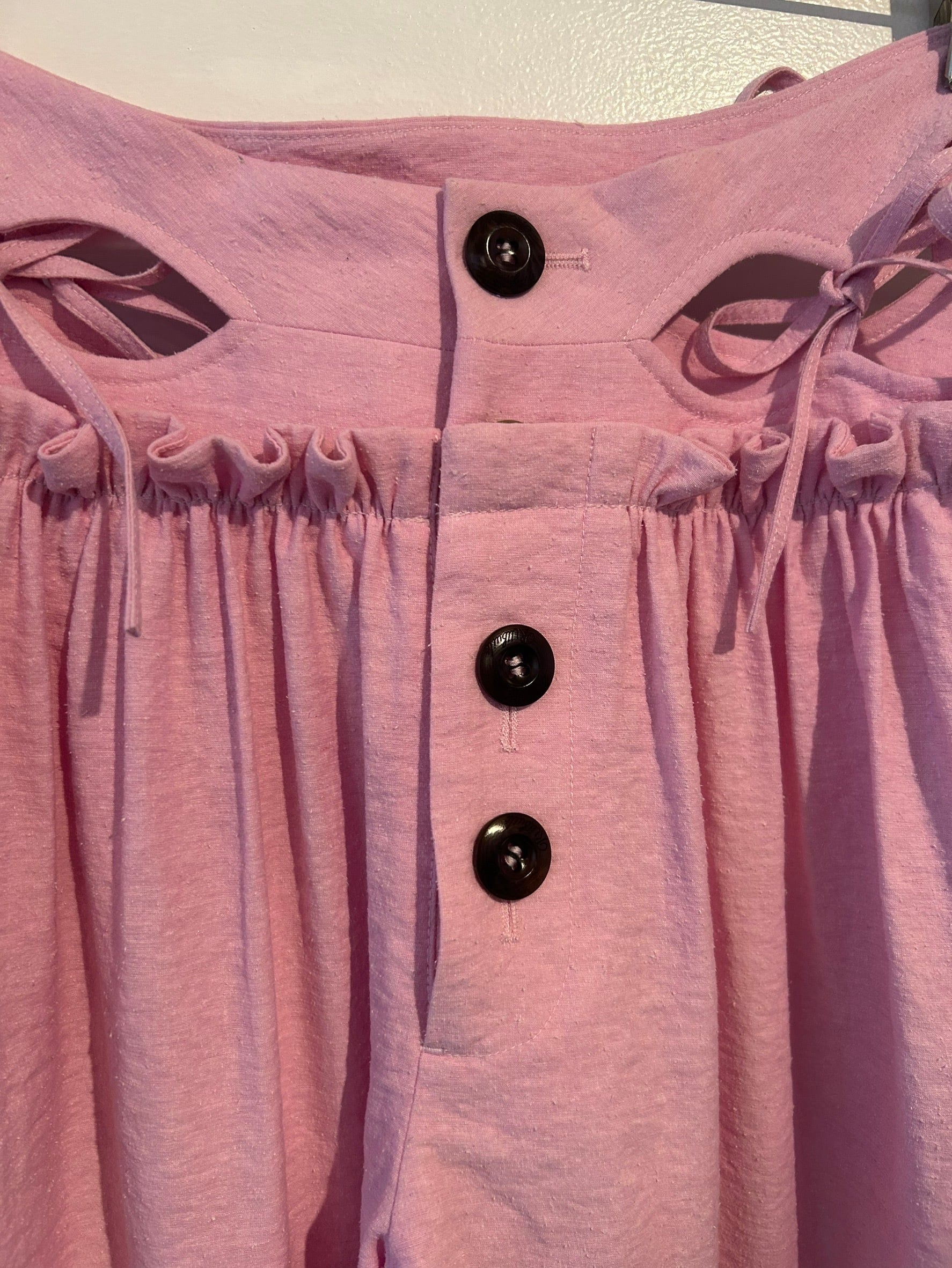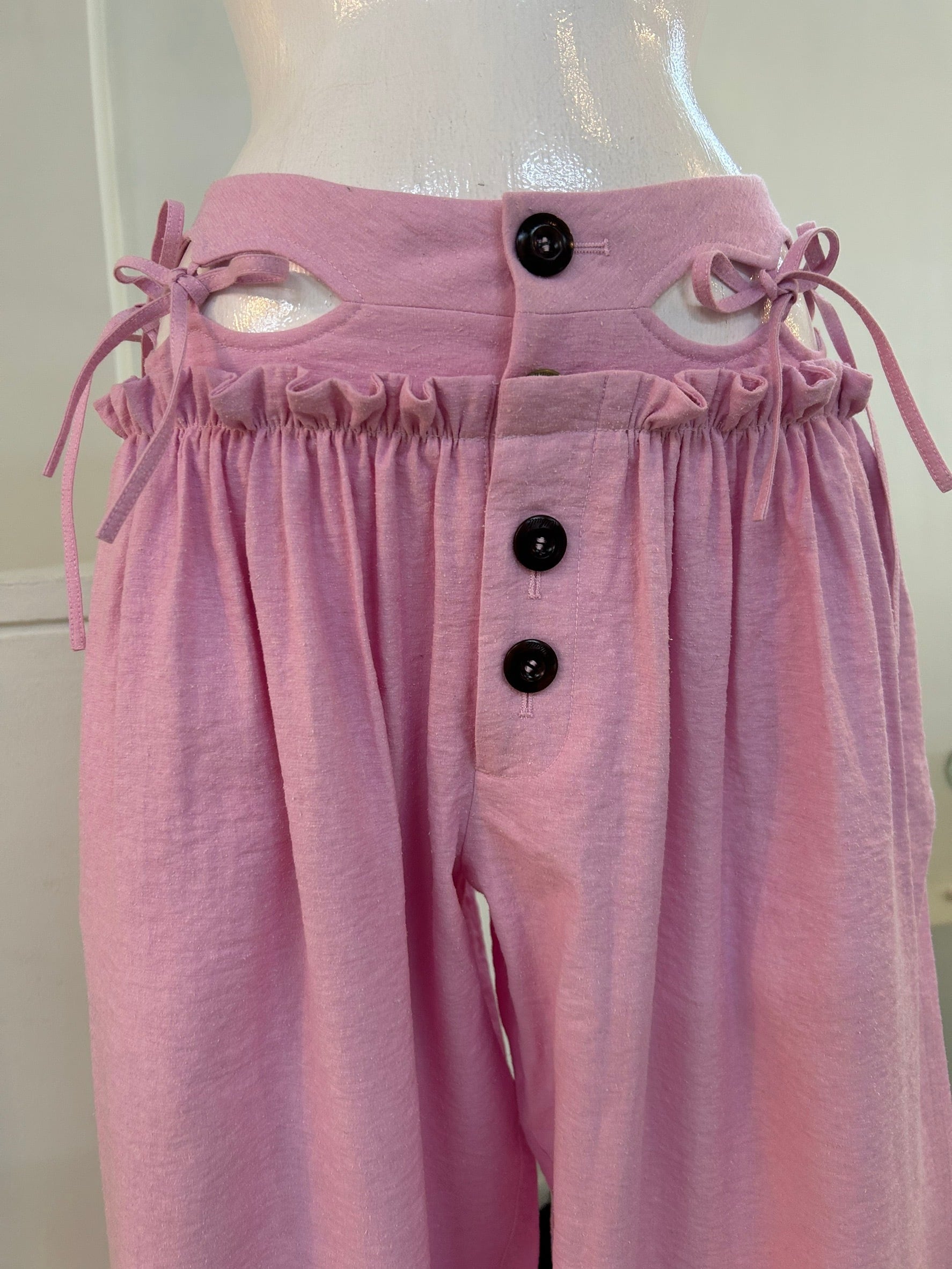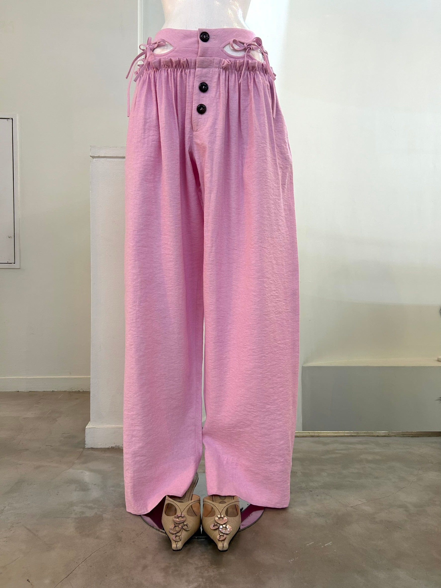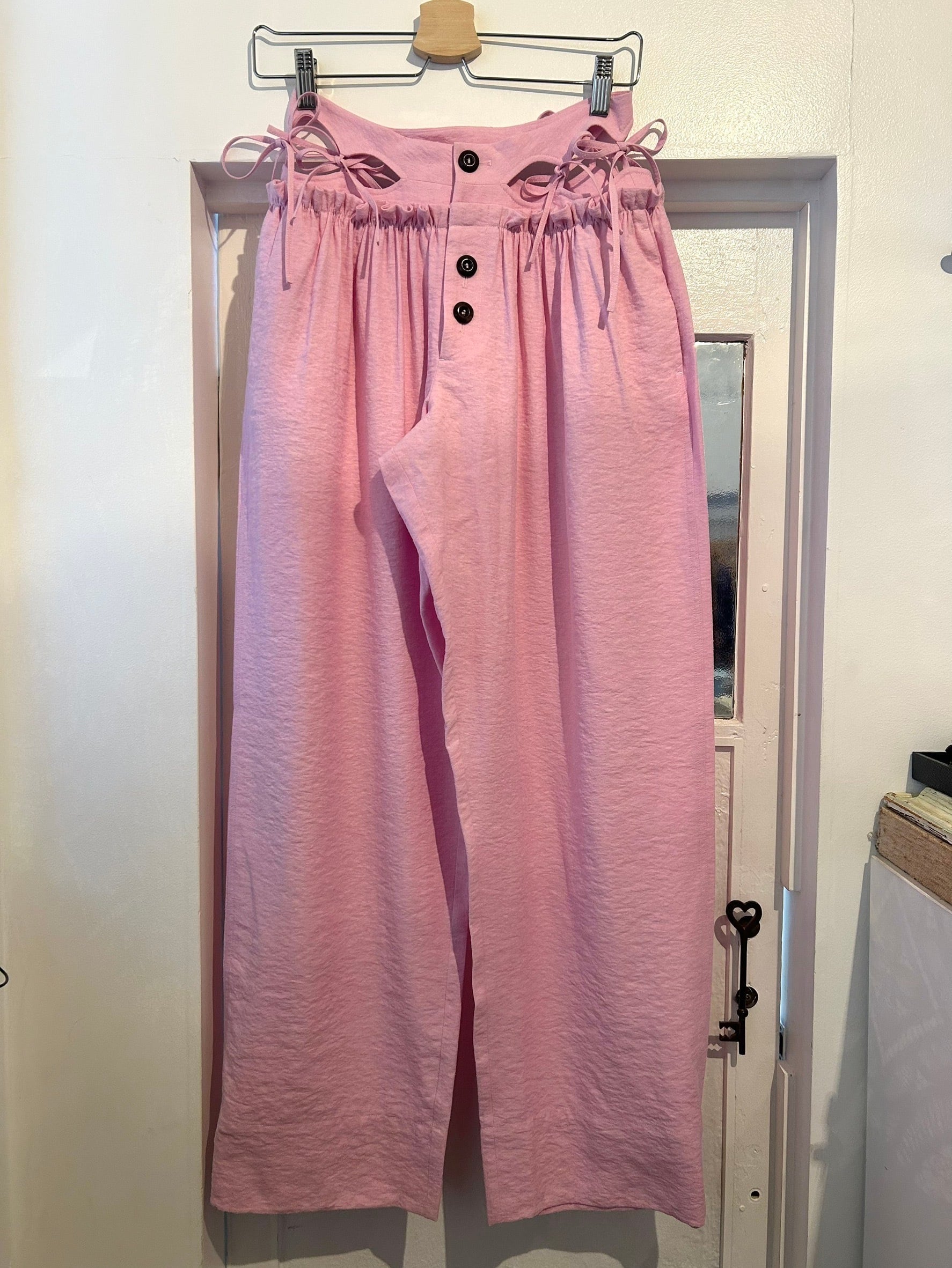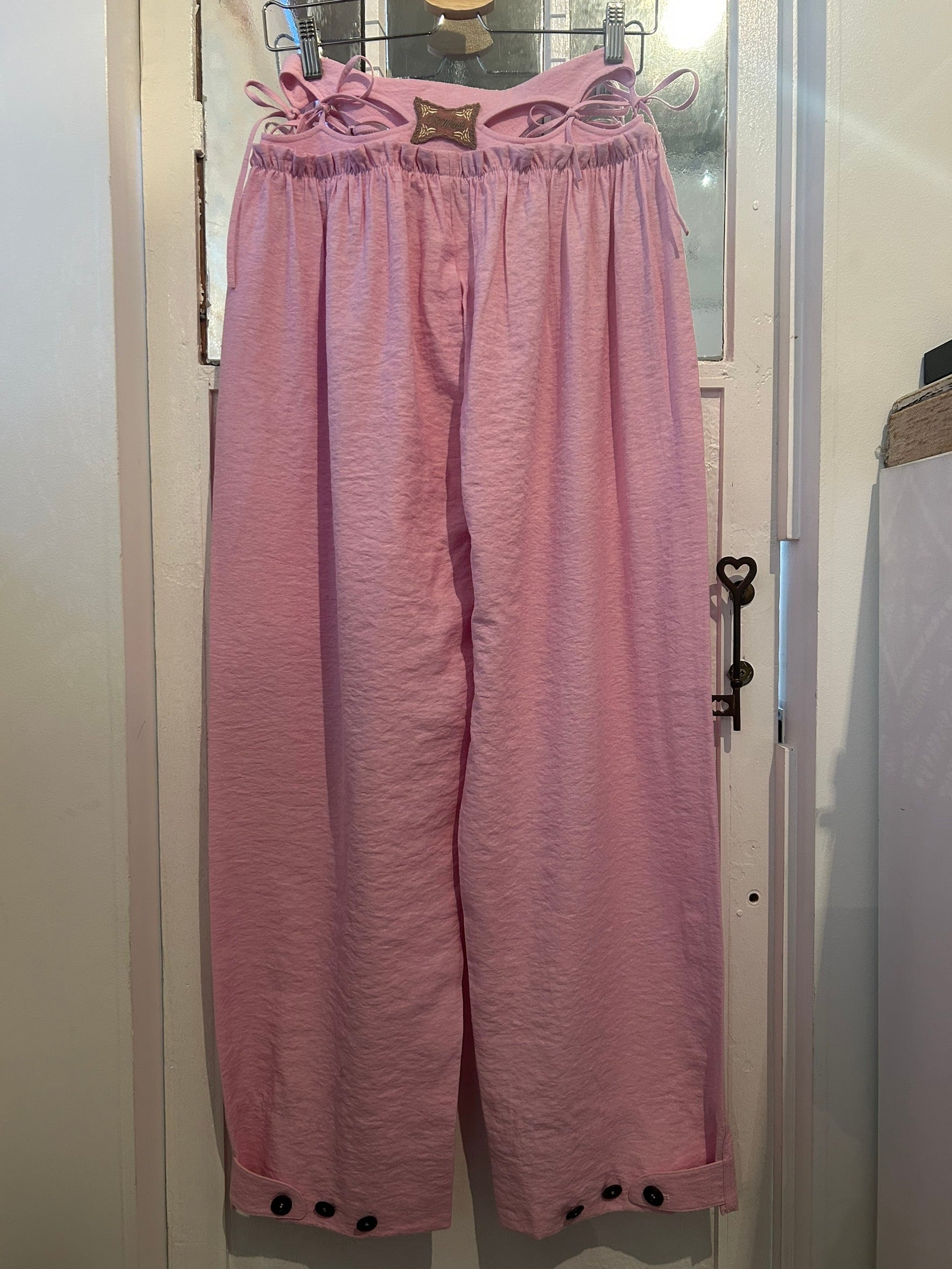サイズ: S ウエスト幅33.5cm ヒップ幅65cm 股上32cm 股下82cm ワタリ幅40cm 裾幅26cm