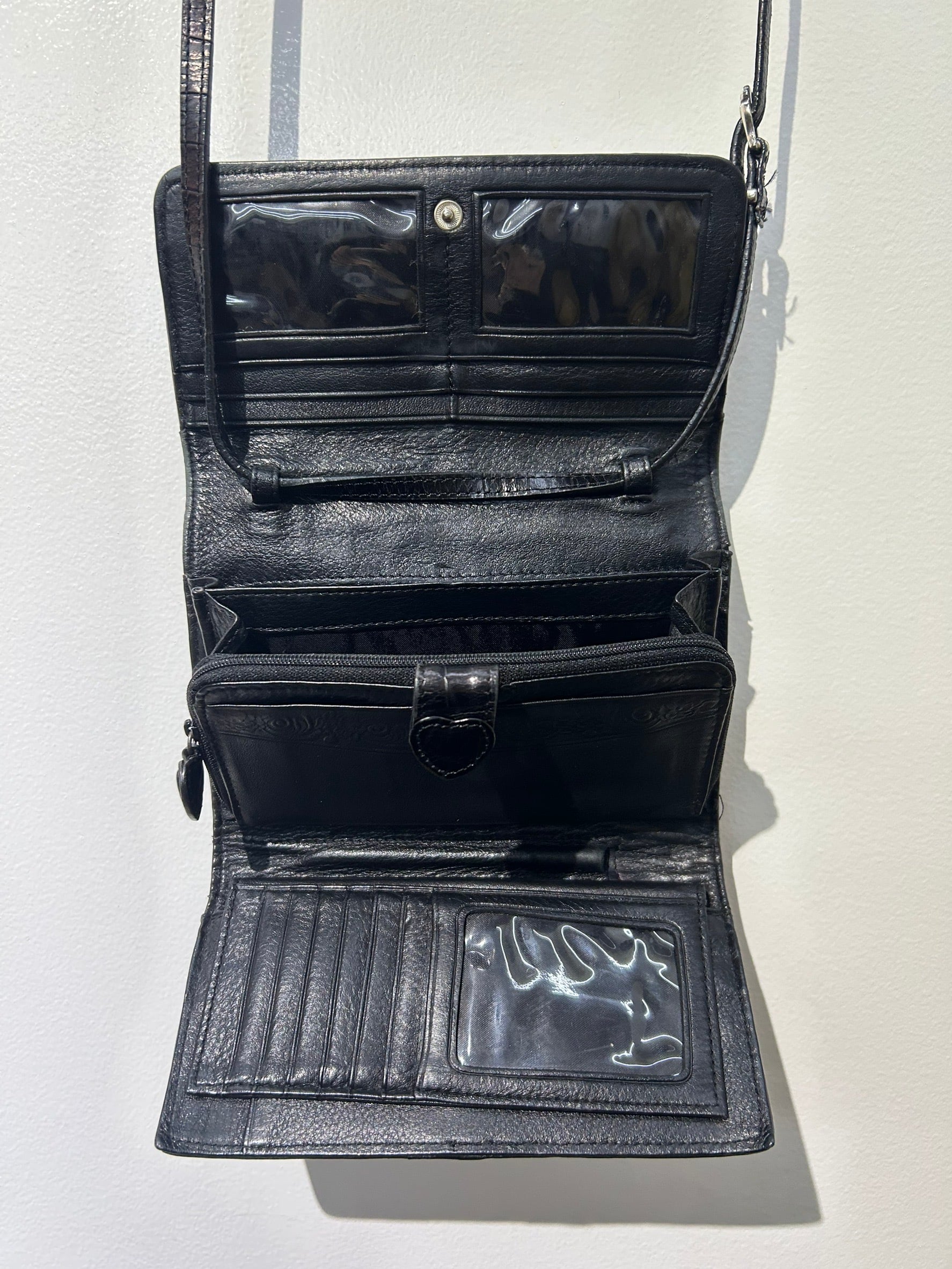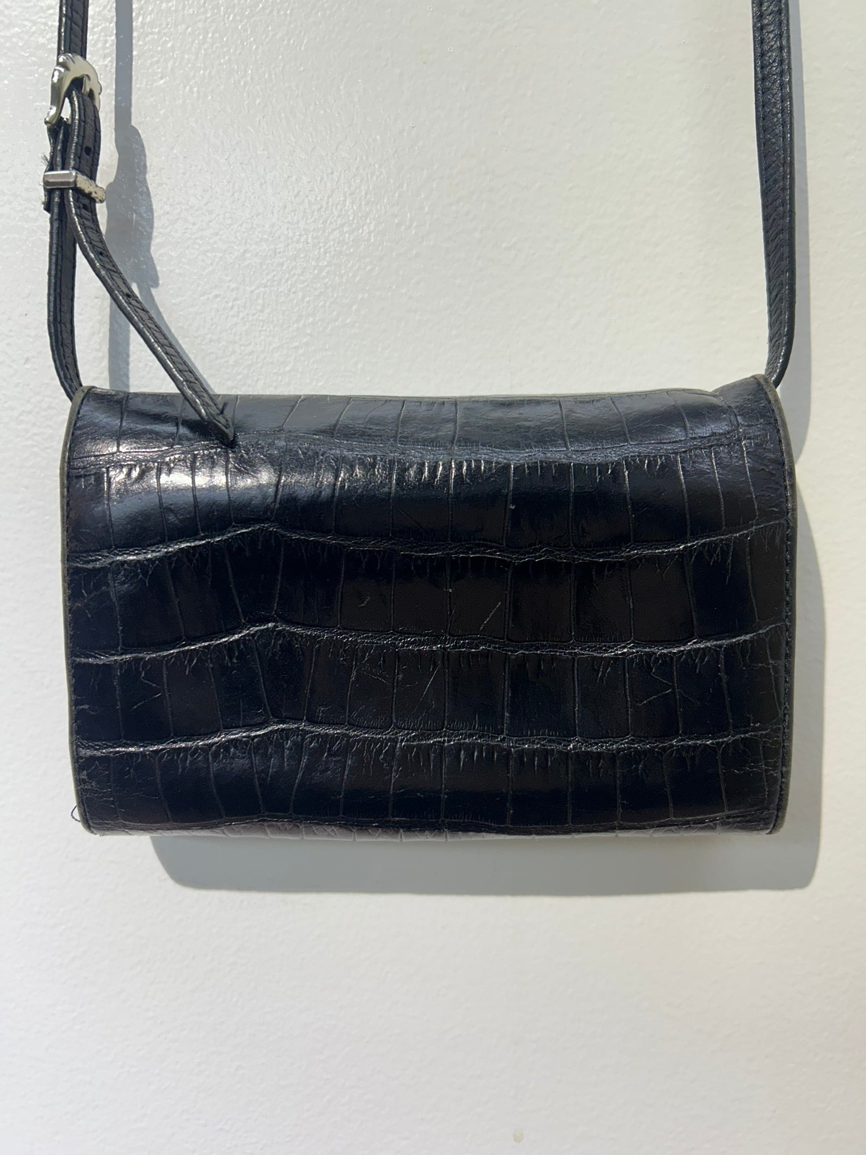 素材: Leather(表記なし) サイズ: 13×19cm 厚さ3cm 肩紐124〜130cm ダメージ: 写真15〜20枚目の汚れ、生地のダメージがあります