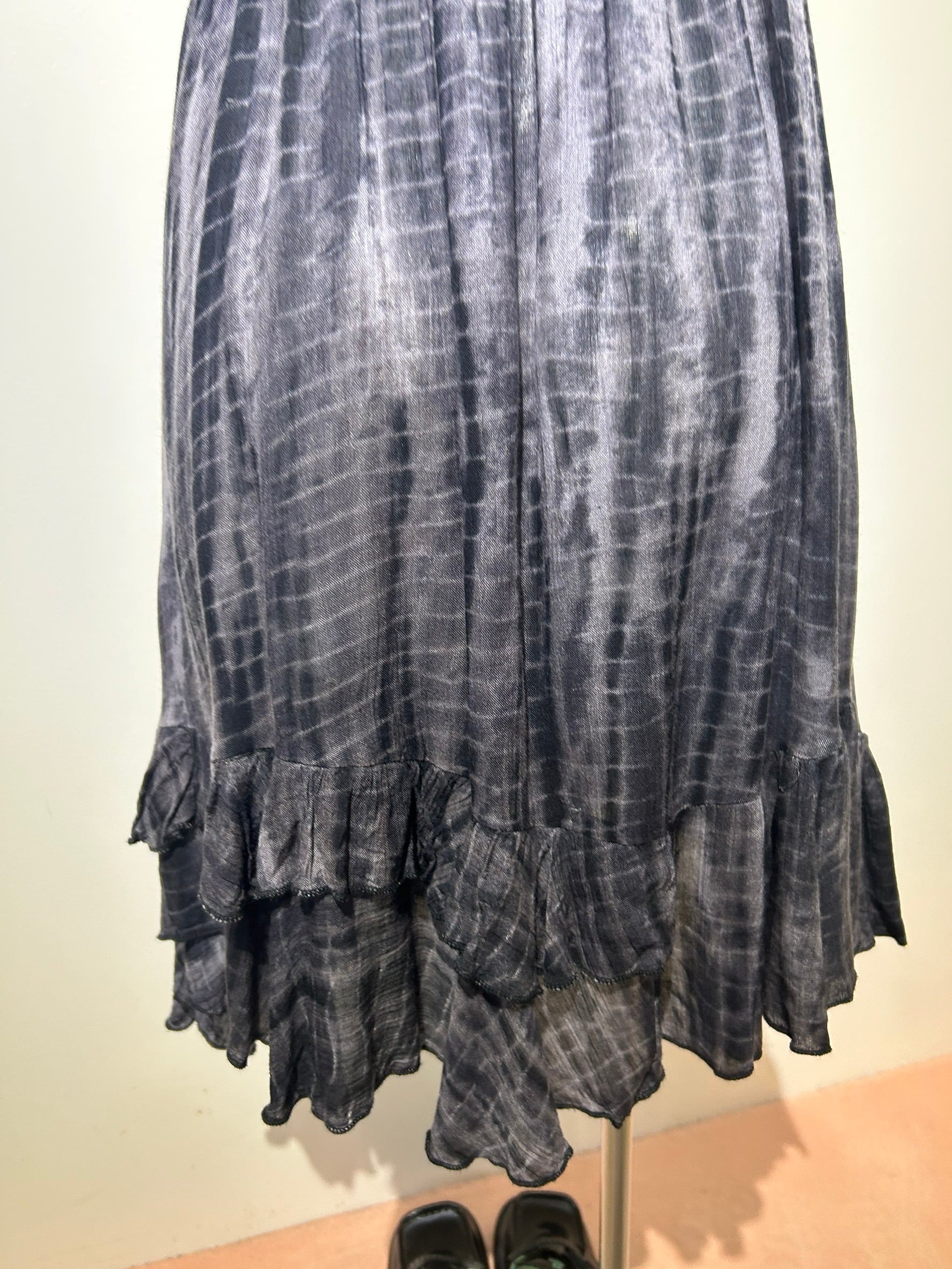 素材: 70%Viscose 20%Cotton 10%Nylon サイズ: 総丈93〜113cm(調節可能) 身幅35cm ダメージ: 写真19枚目の汚れがあります