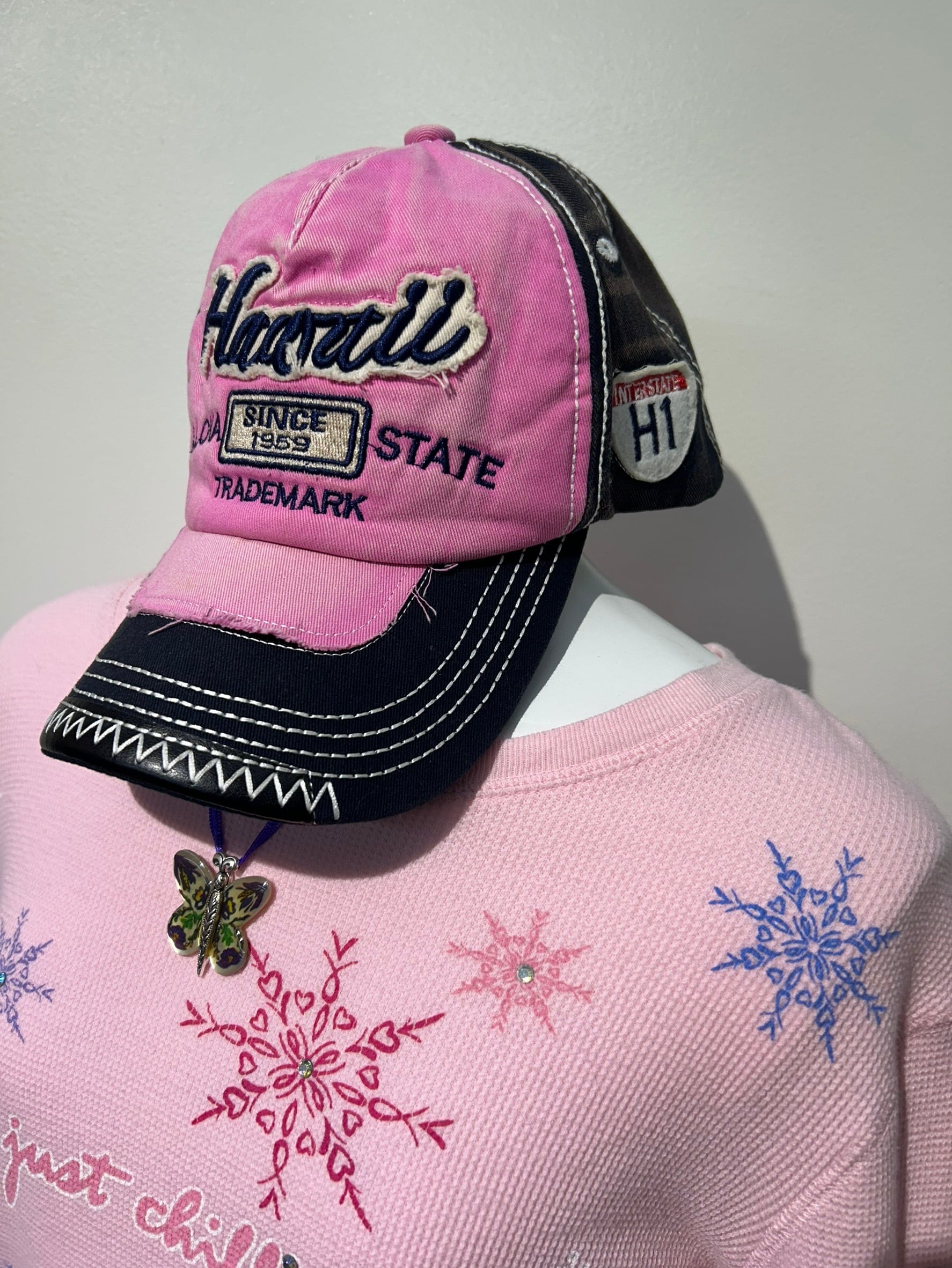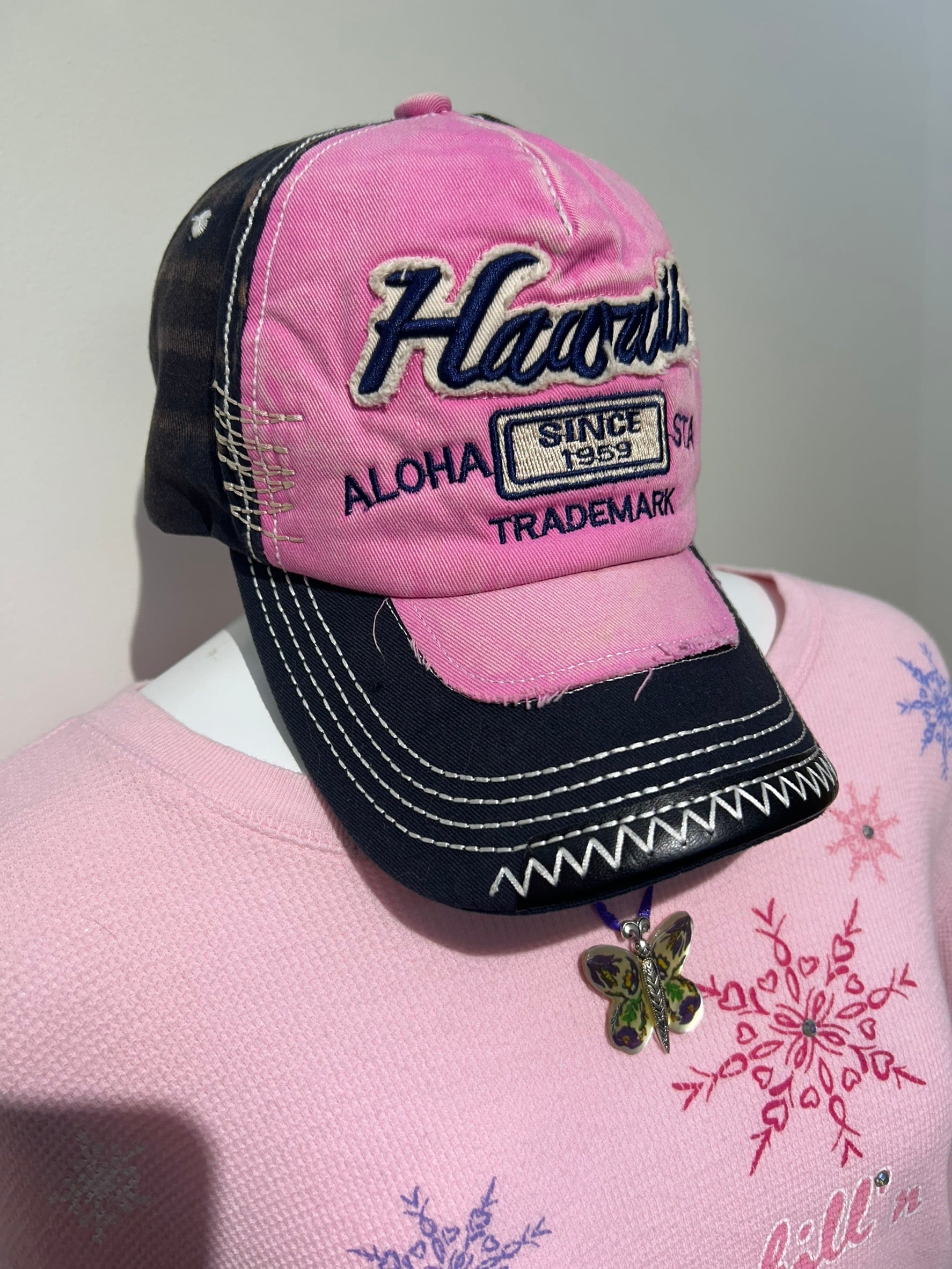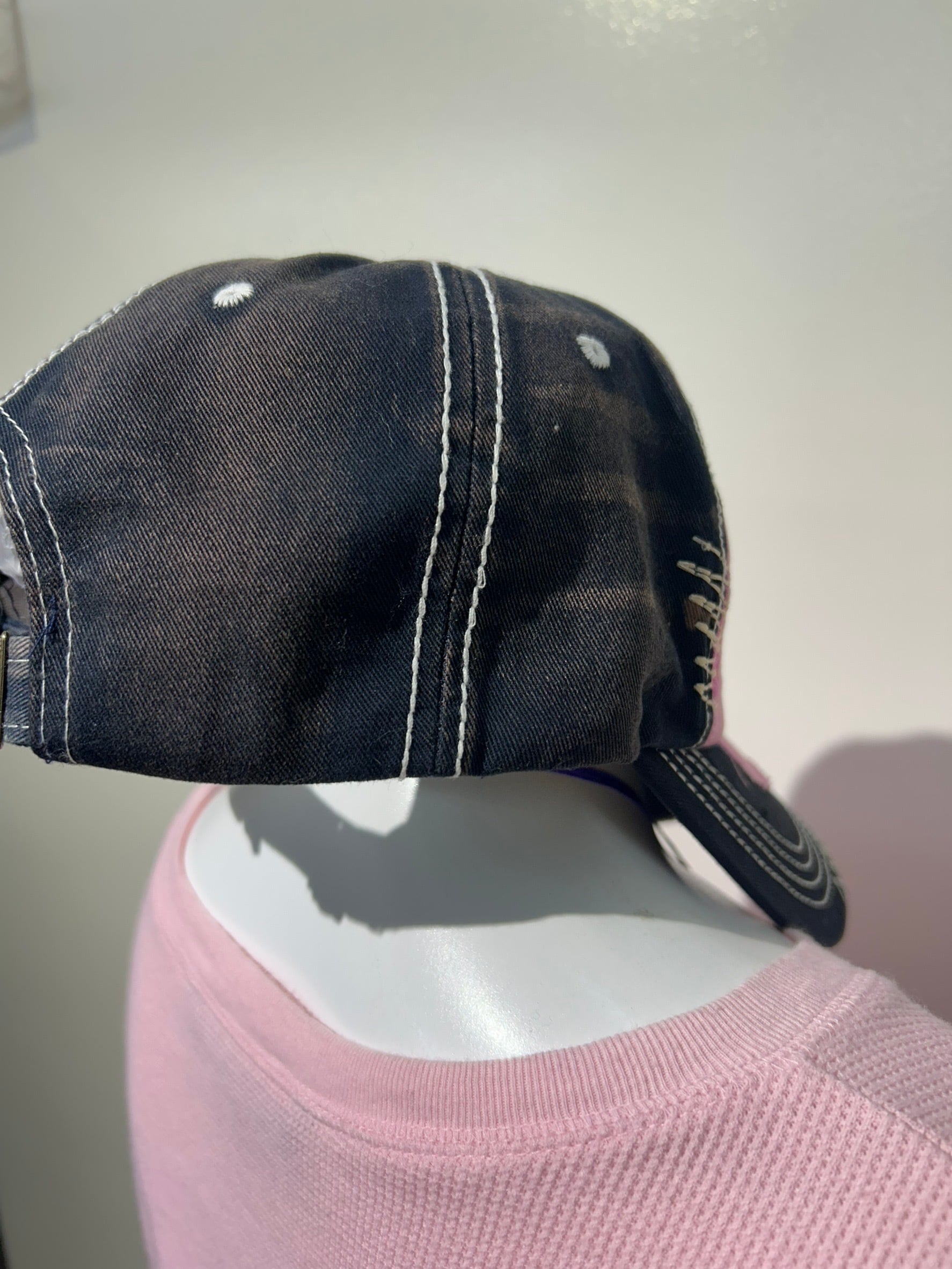 素材: 100%Cotton サイズ: 頭囲52〜59cm 高さ9cm つば7.5cm ダメージ: 写真12枚目の内側額部分の汚れがあります。左右の生地の色落ちのようなものがダメージによるものか、加工によるものかは不明です