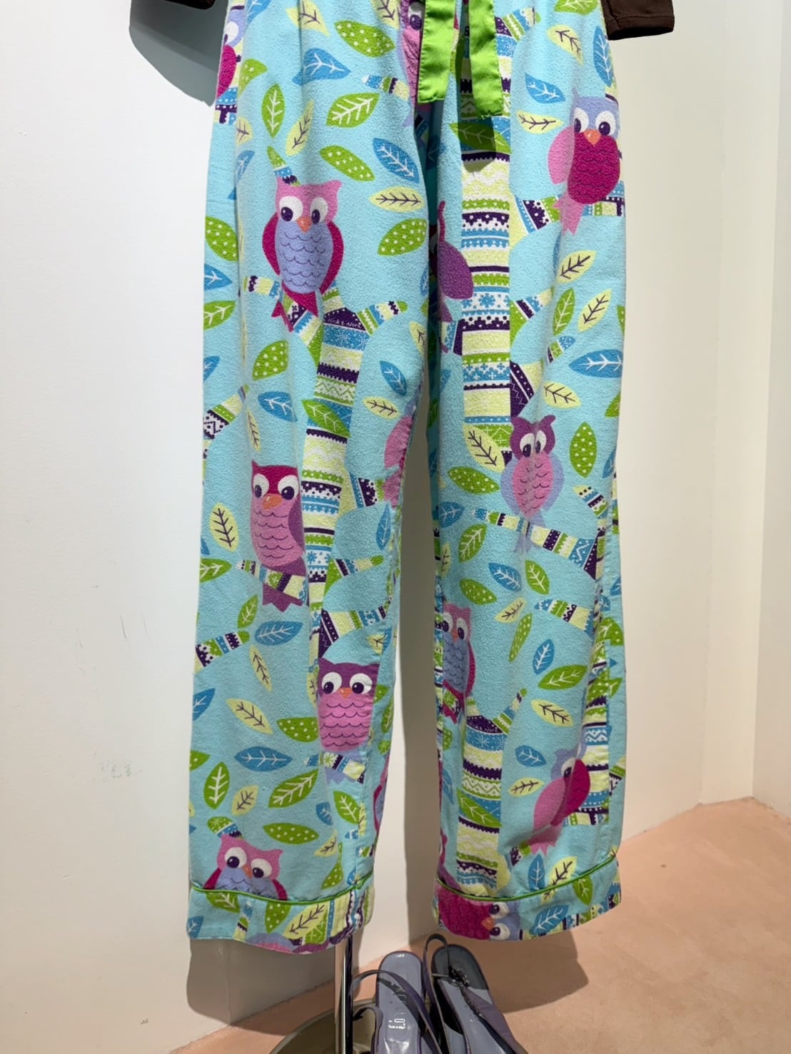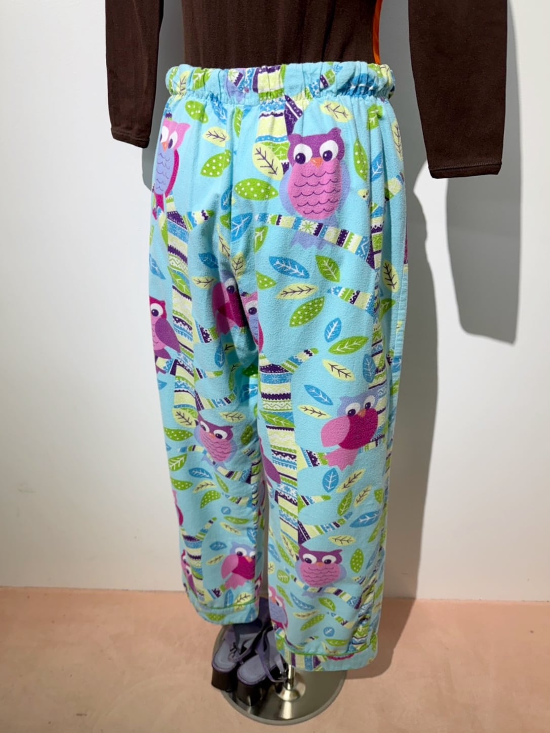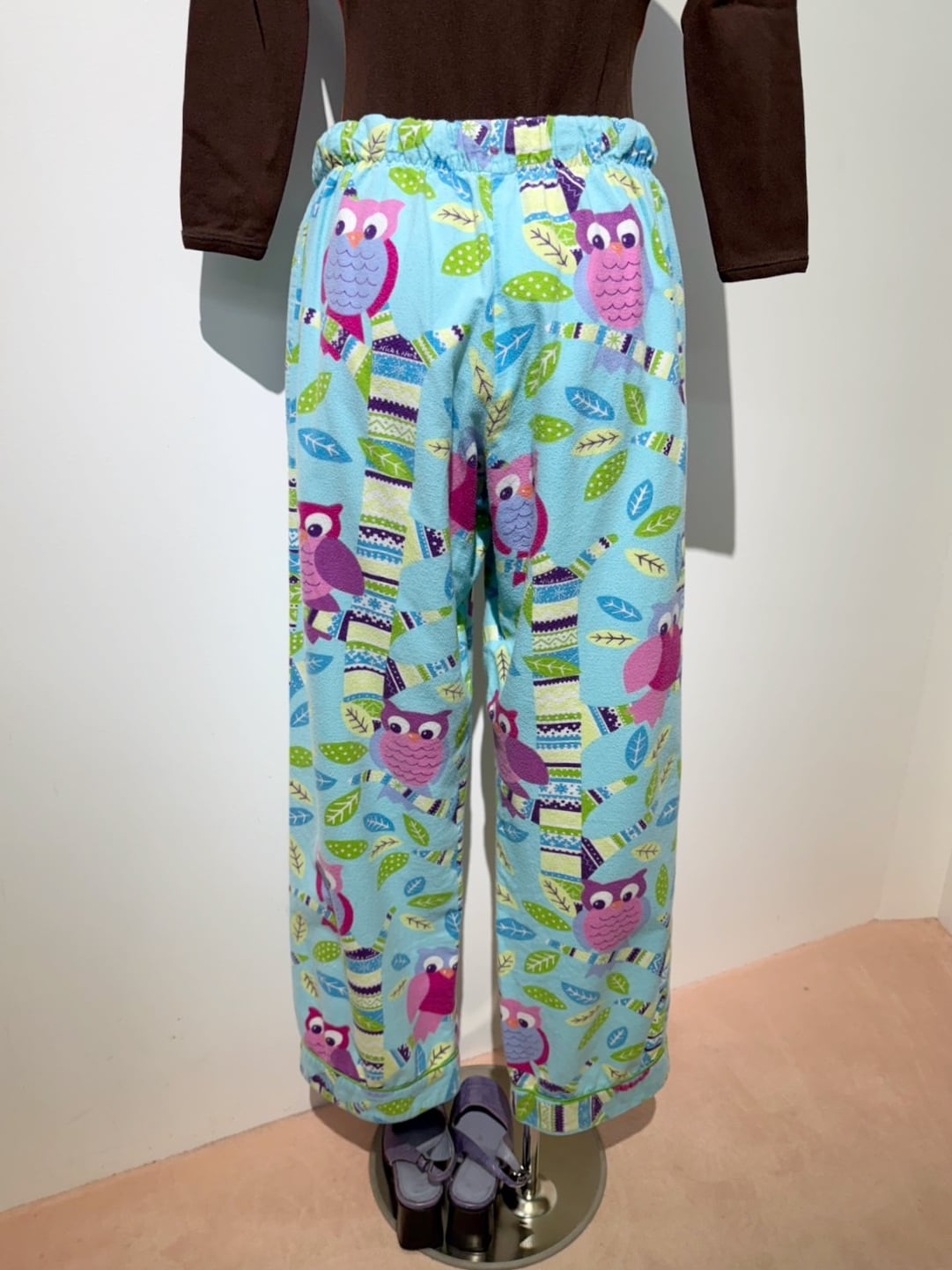 素材: Polyester(表記なし) サイズ: ウエスト幅31〜47cm(ゴムかつリボンで調節可能) 股上27cm 股下69.5cm わたり幅31cm 裾幅22.5cm