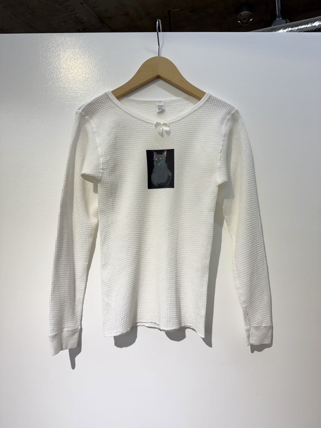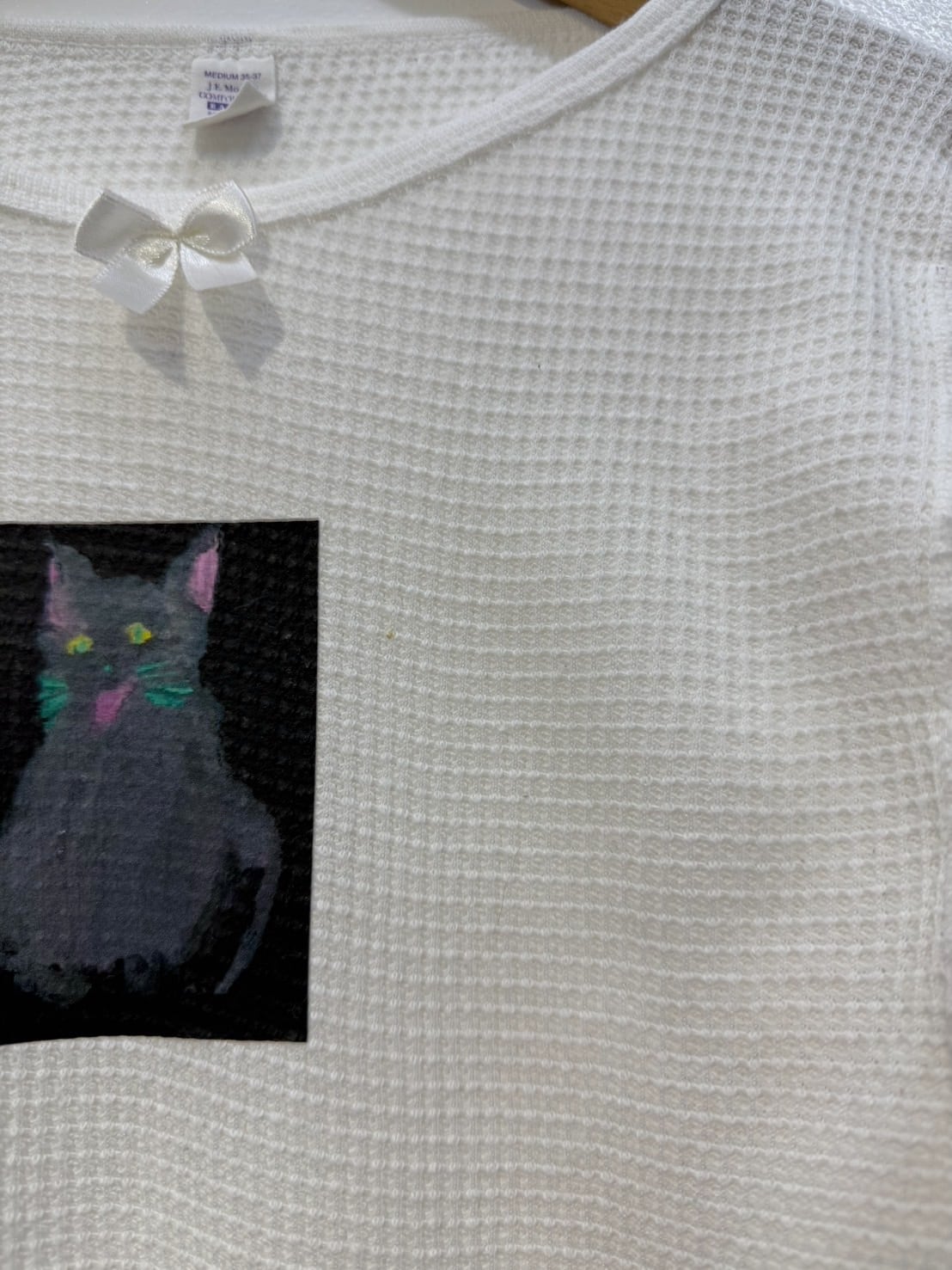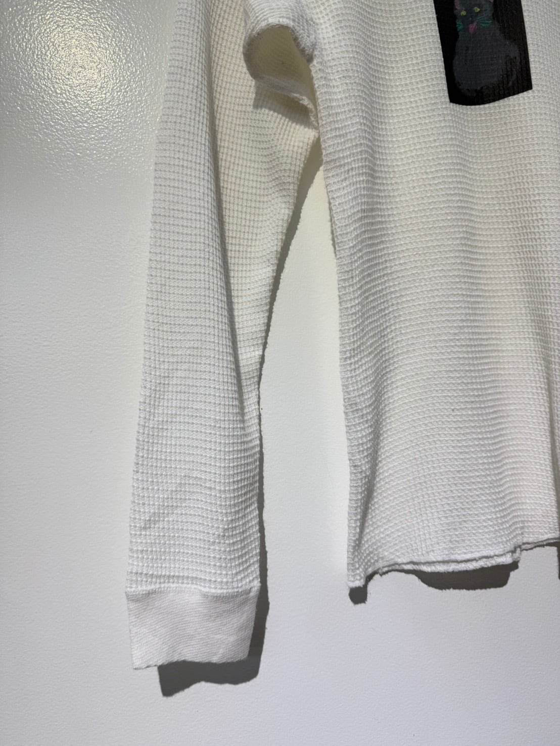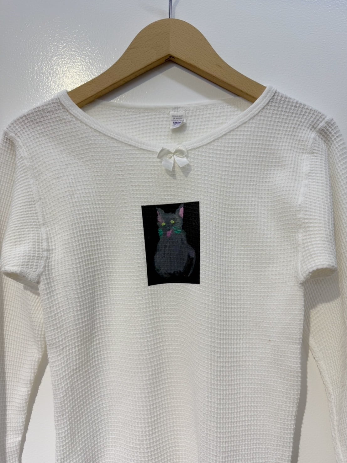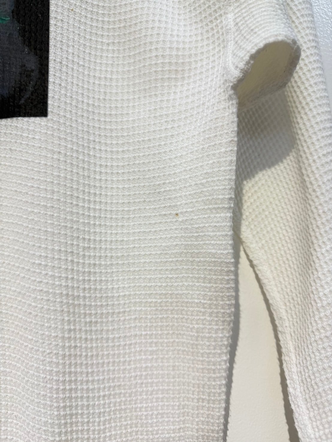 素材: 50%Cotton 50%Polyester サイズ: 肩幅36cm 袖丈55.5cm 身幅30.5cm 身丈54cm ダメージ: 写真16〜18枚目のような汚れがあります。 Made in U.S.A 安藤智展「FANCY♡」に合わせて制作したシリーズ。安藤智の油彩作品とitimiのコラボです。