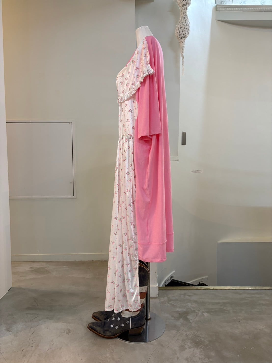 サイズ: M 肩幅68cm 身幅76cm 袖丈24.5cm 着丈前身頃127cm 着丈後ろ身頃96cm