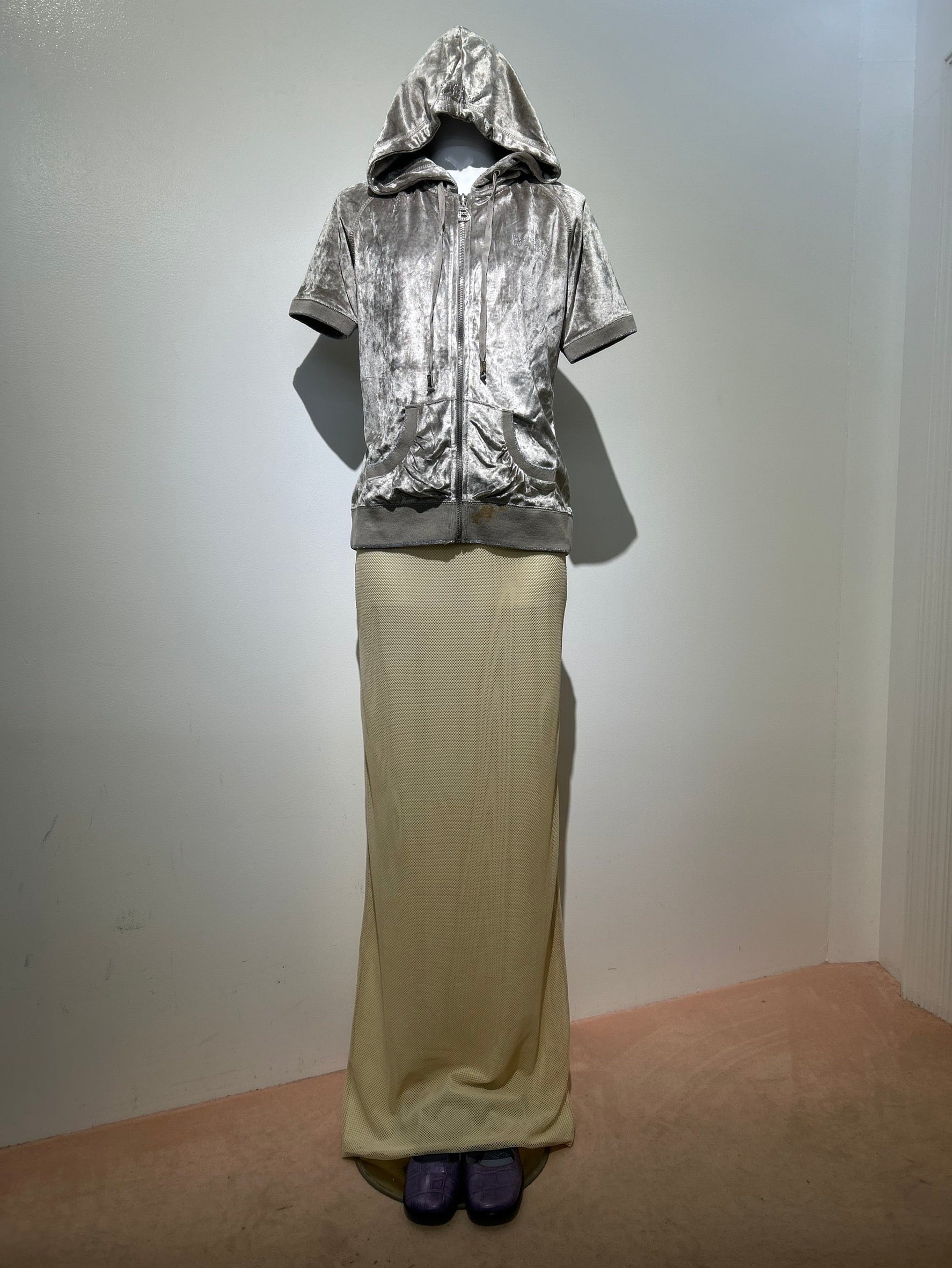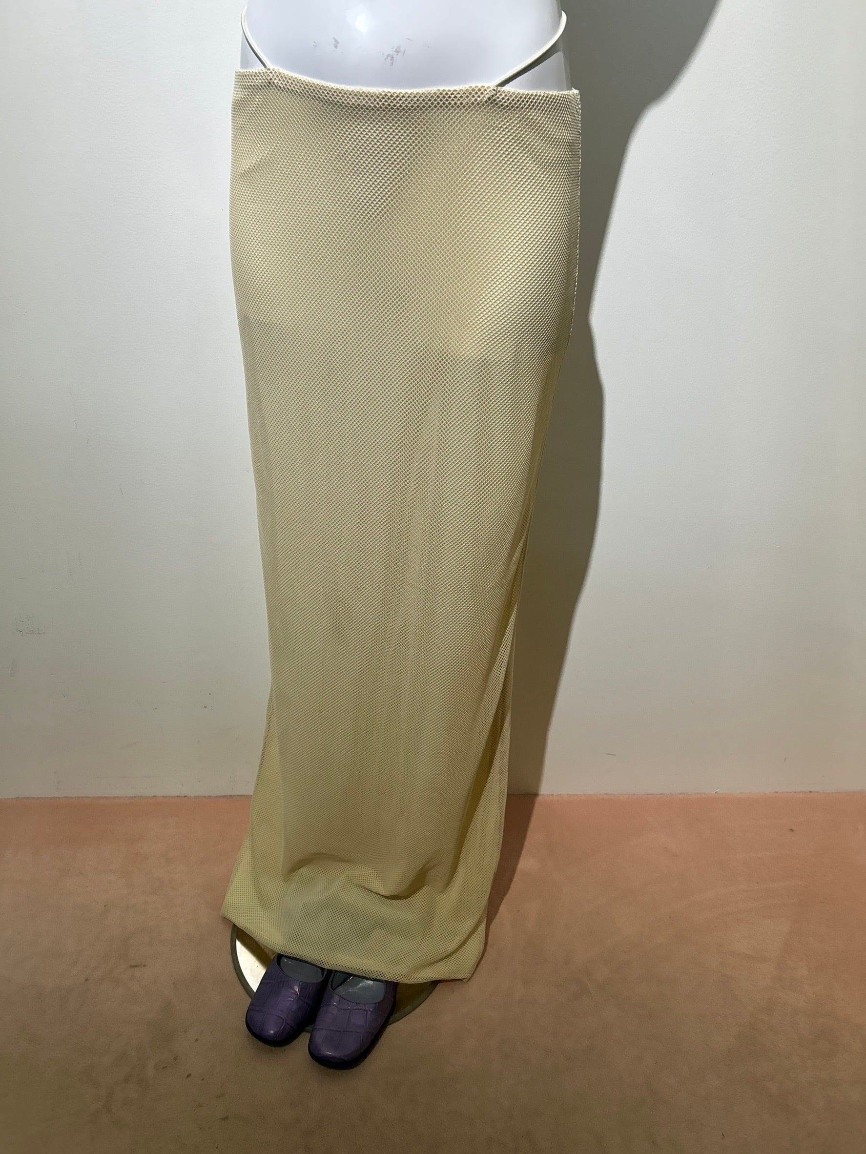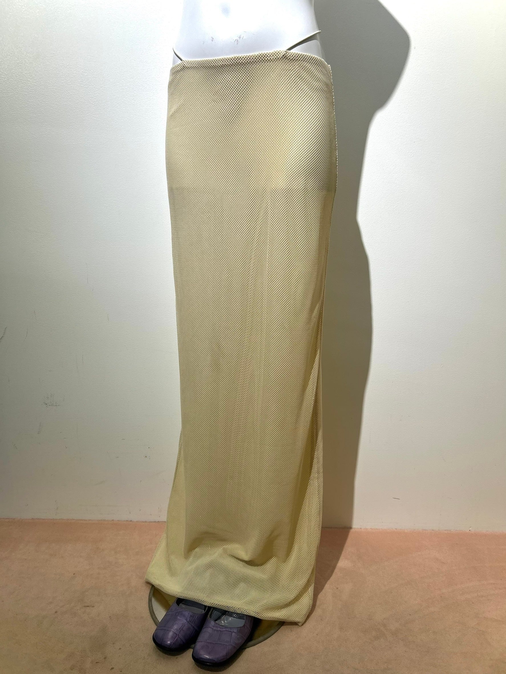 素材: Polyester(表記なし) サイズ: ウエスト幅34〜40cm(ゴム) 総丈108cm ダメージ: 写真18枚目の汚れ、19枚目の生地のダメージがあります