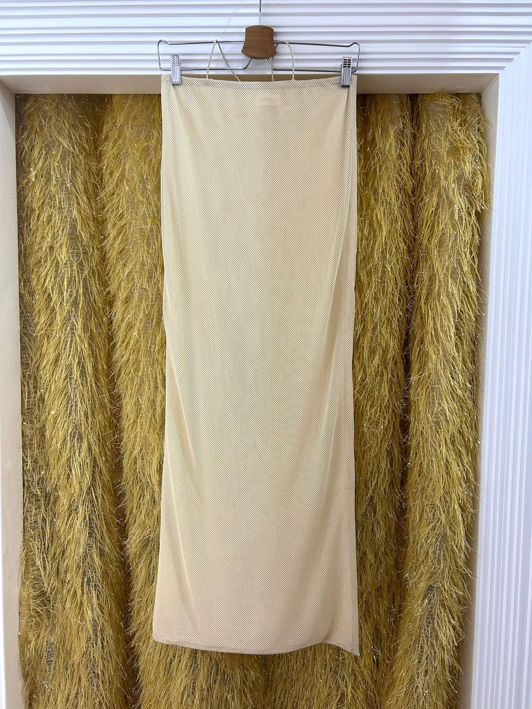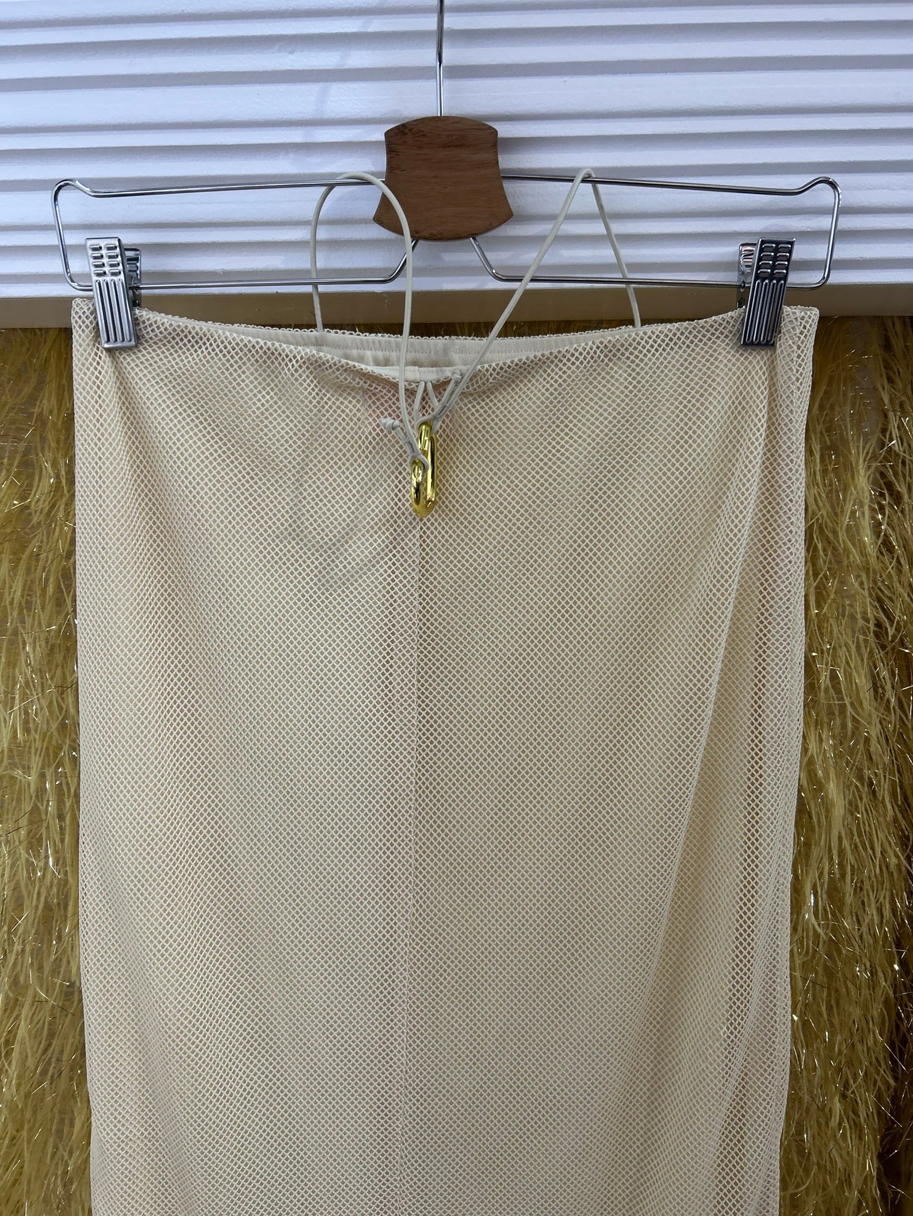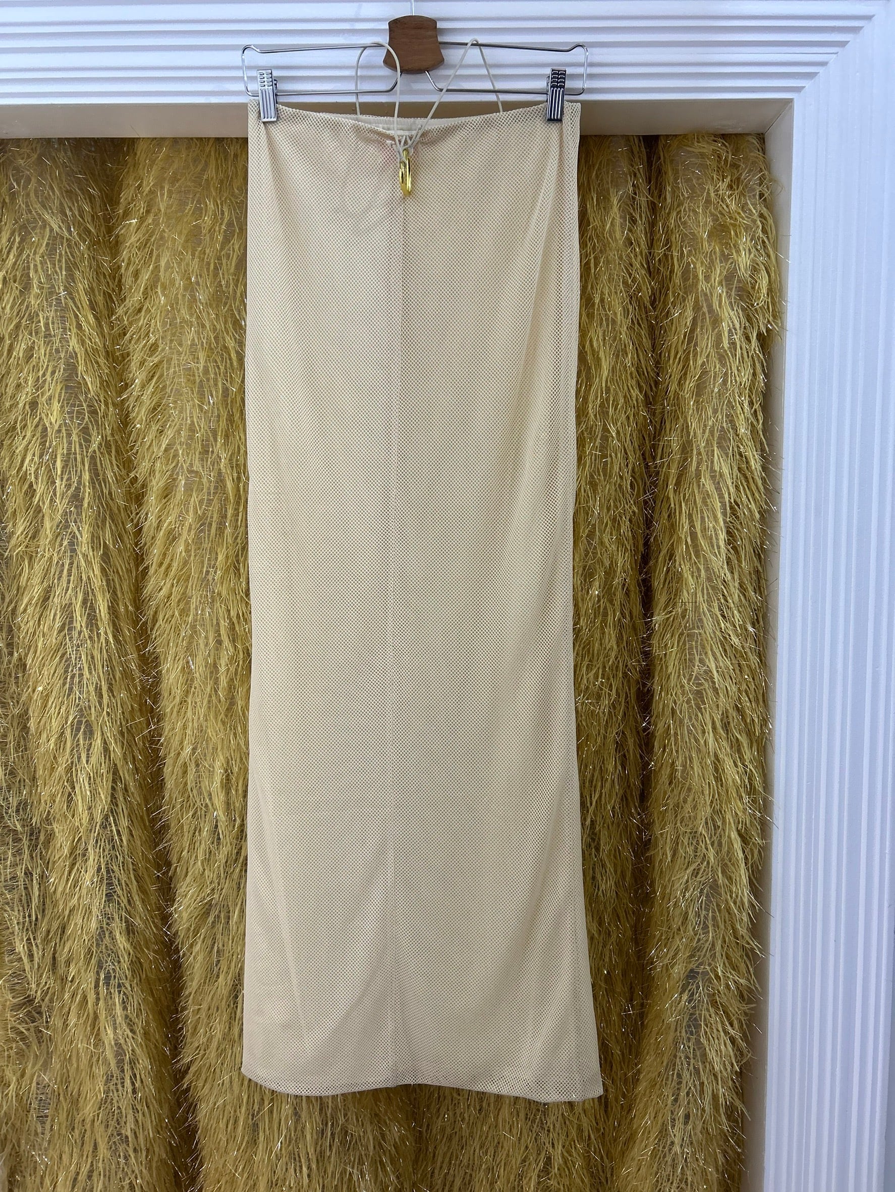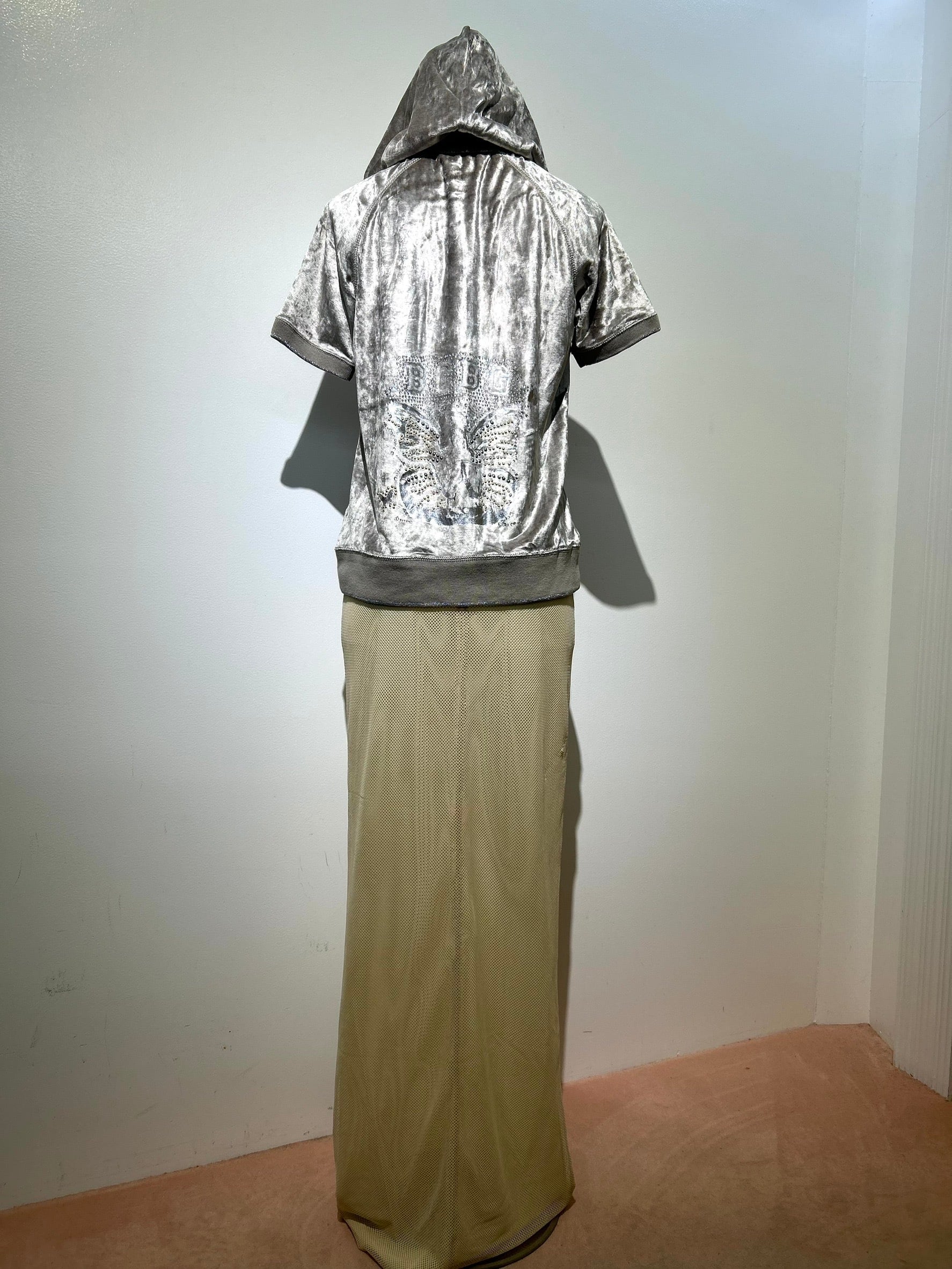 素材: Polyester(表記なし) サイズ: ウエスト幅34〜40cm(ゴム) 総丈108cm ダメージ: 写真18枚目の汚れ、19枚目の生地のダメージがあります