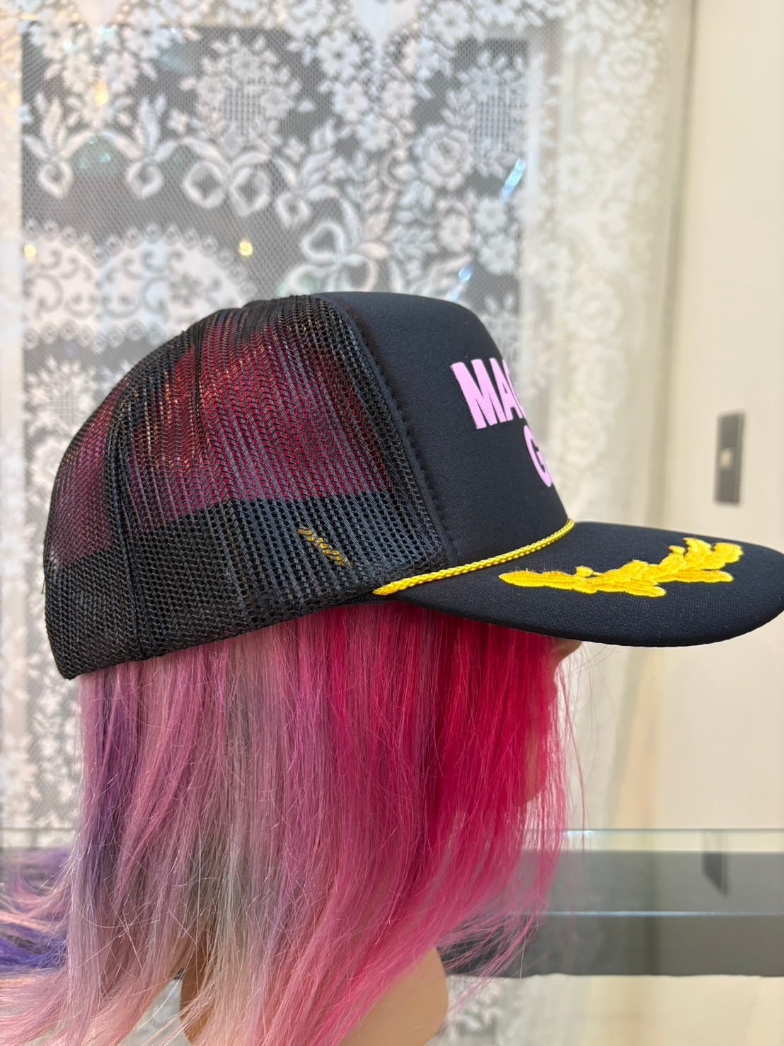 Ashley WILLIAMS BLACK EMBROIDERED TRUCKER HAT
