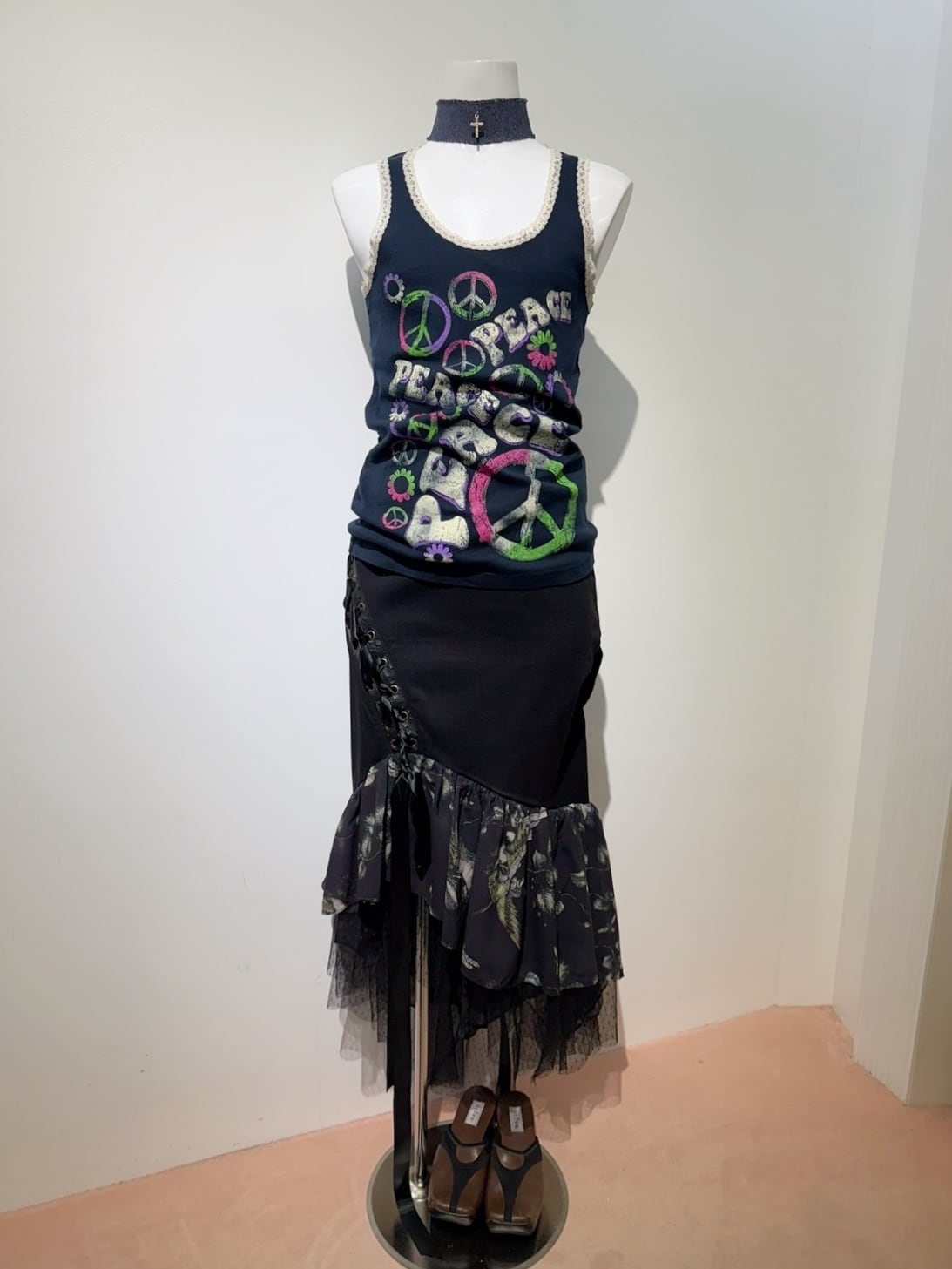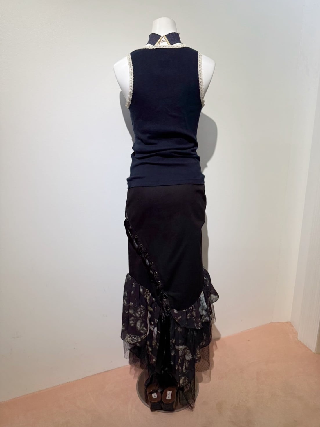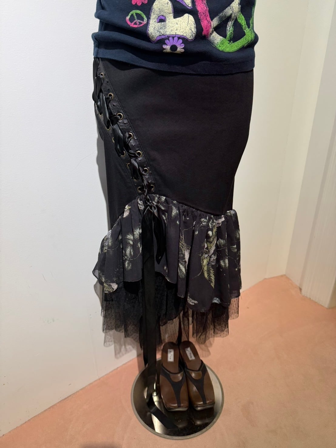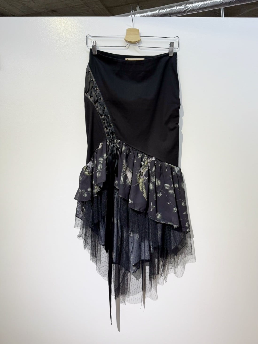 素材: Self 97%Cotton 3%Spandex Contrast 100%Polyester サイズ: ウエスト幅33cm ヒップ幅40cm 丈1m ダメージ: 写真16枚目のような汚れがあります。
