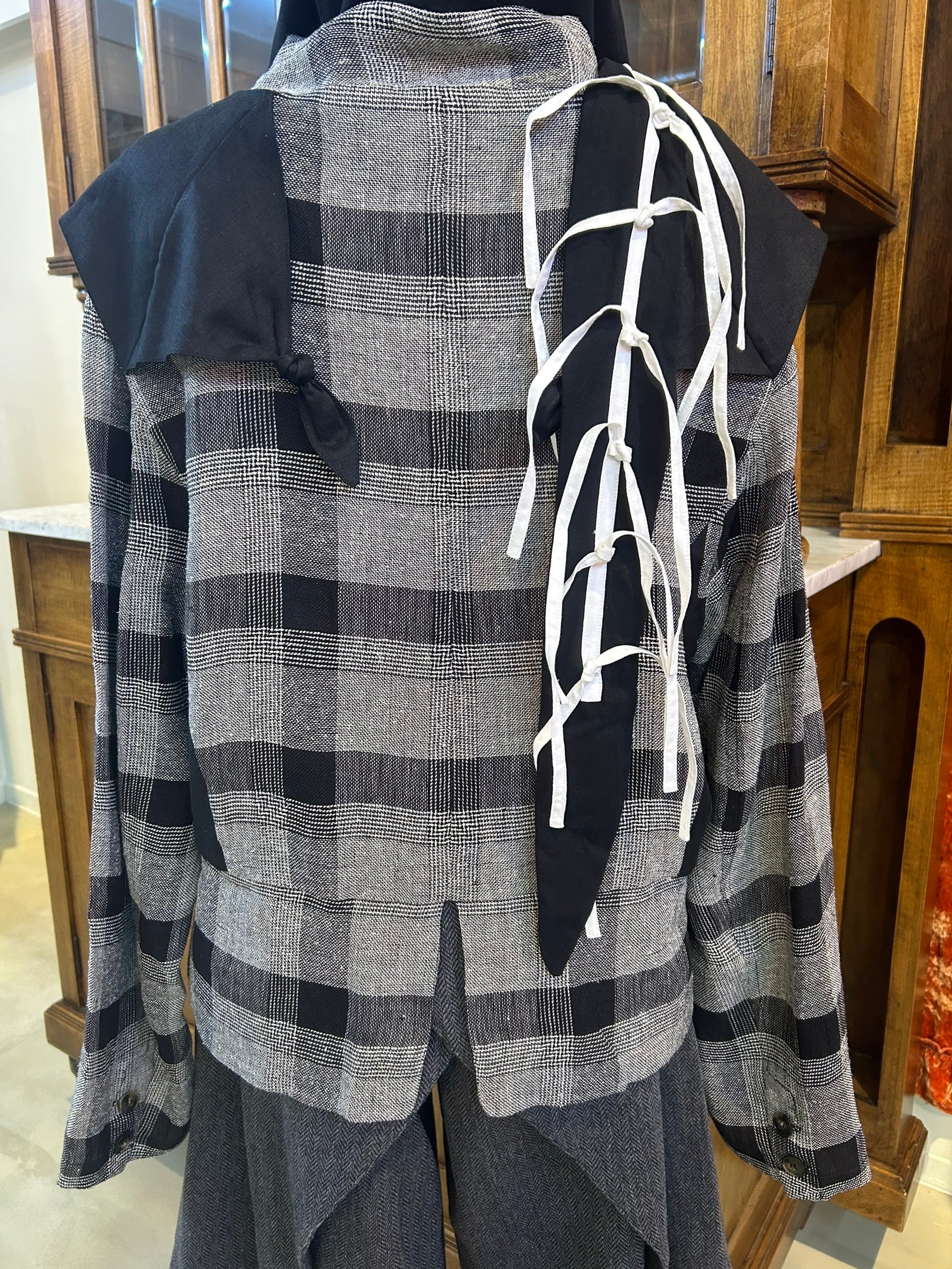結び目やドレープを用いたユニセックスなシルエットは、強さと繊細さをあわせ持つ。