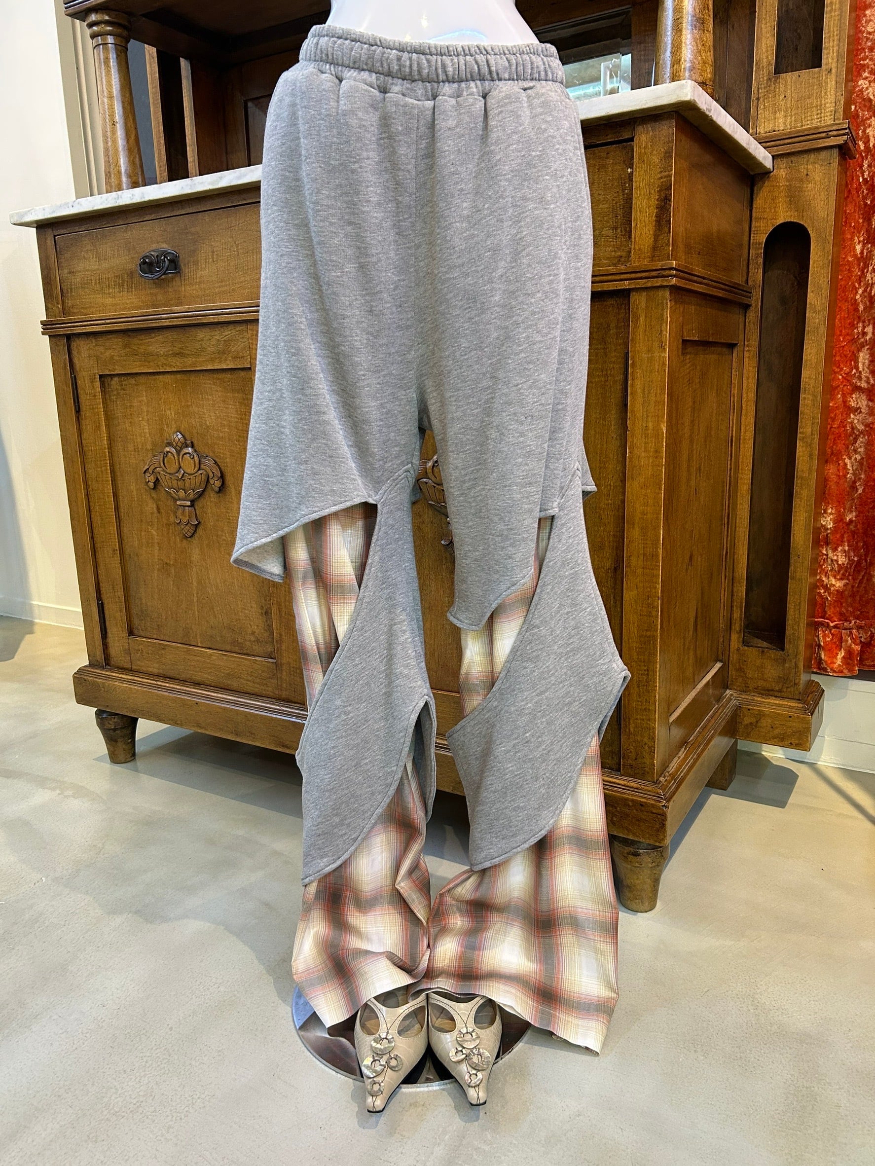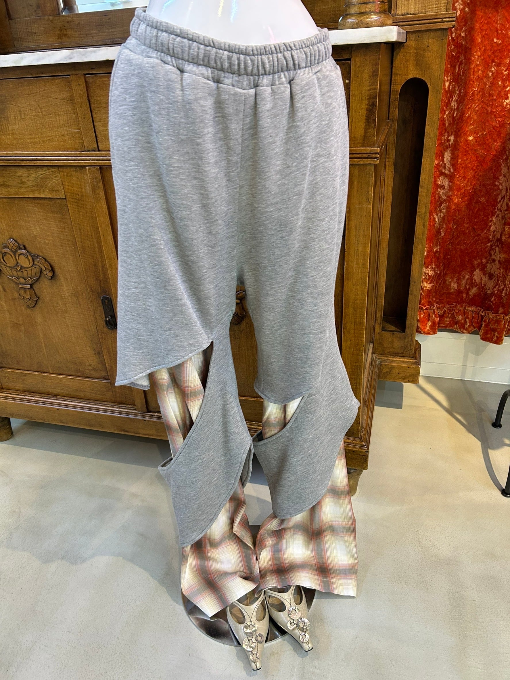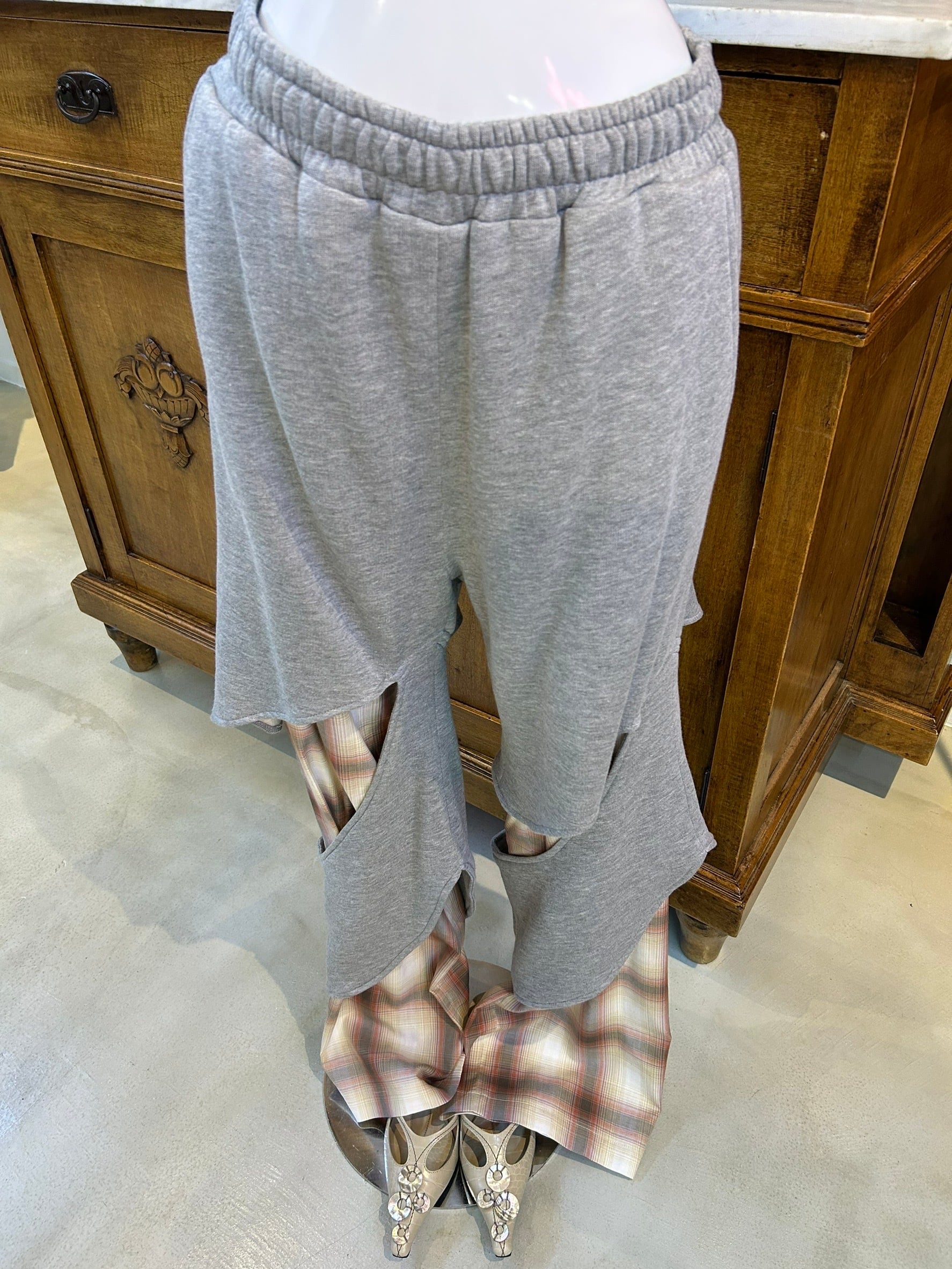 サイズ: S ウエスト幅34.5cm〜41cm(ゴム) ヒップ幅52cm 股上35.5cm 股下84cm わたり幅33cm 裾幅25.5cm