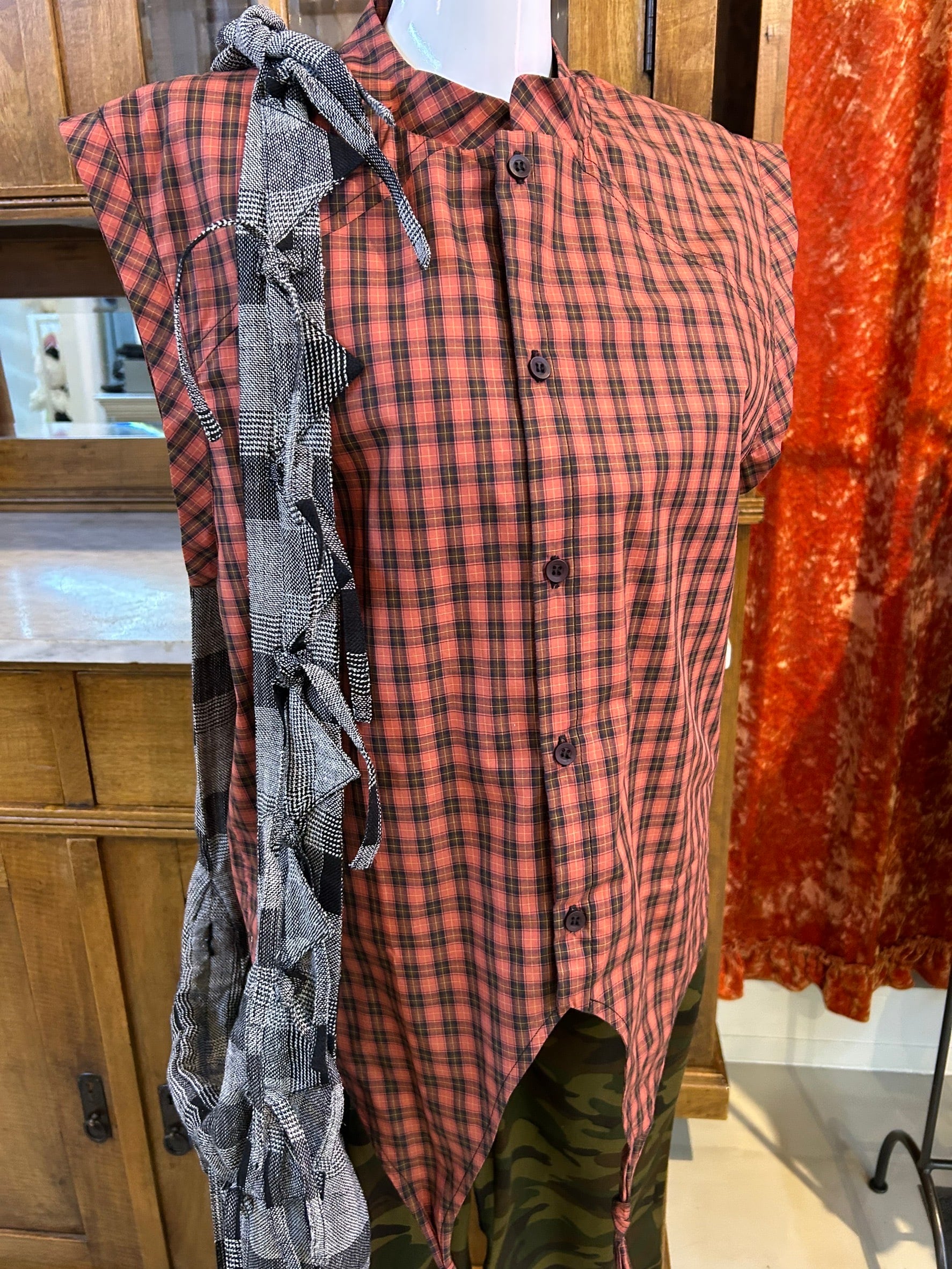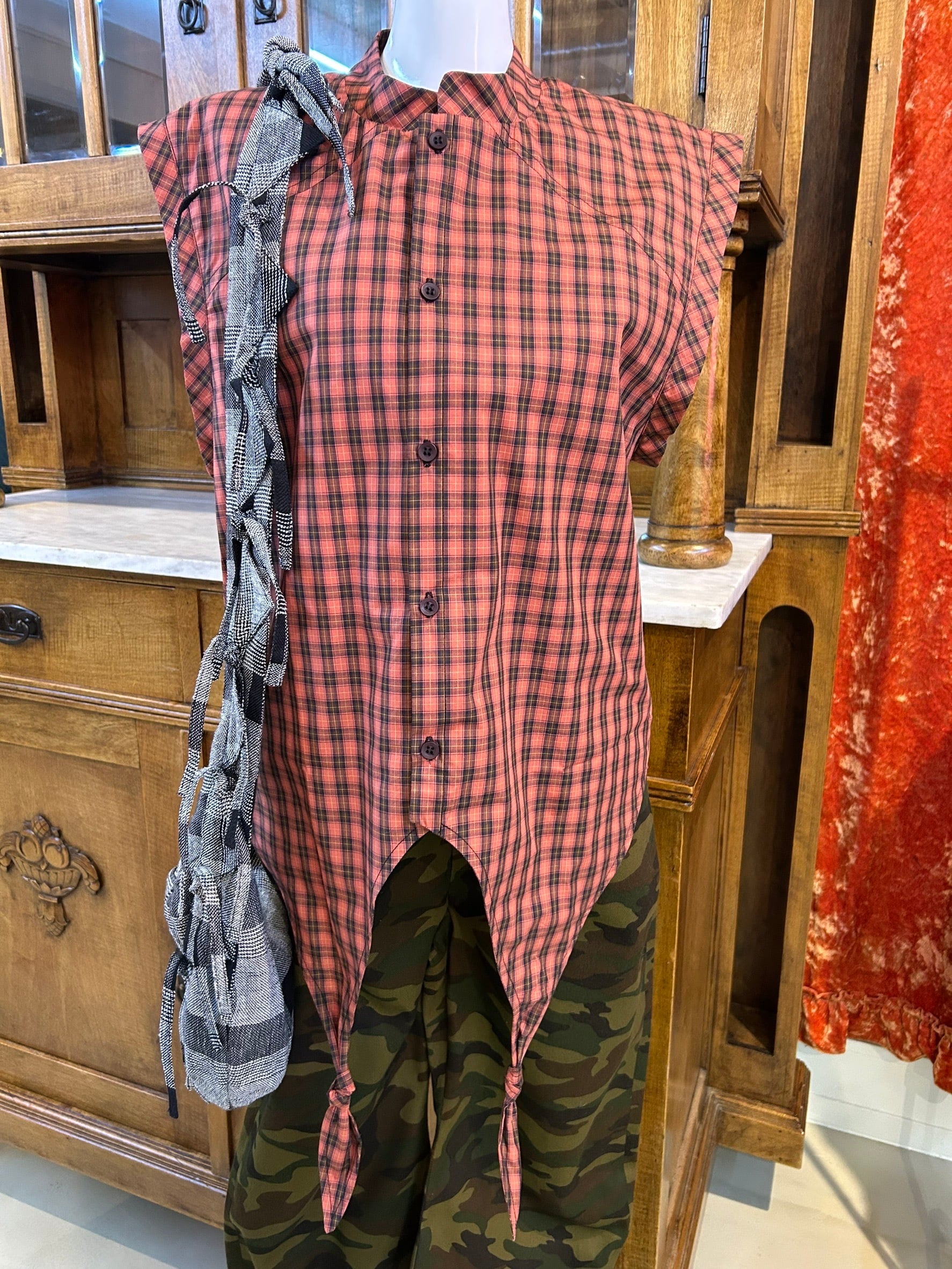 結び目やドレープを用いたユニセックスなシルエットは、強さと繊細さをあわせ持つ。