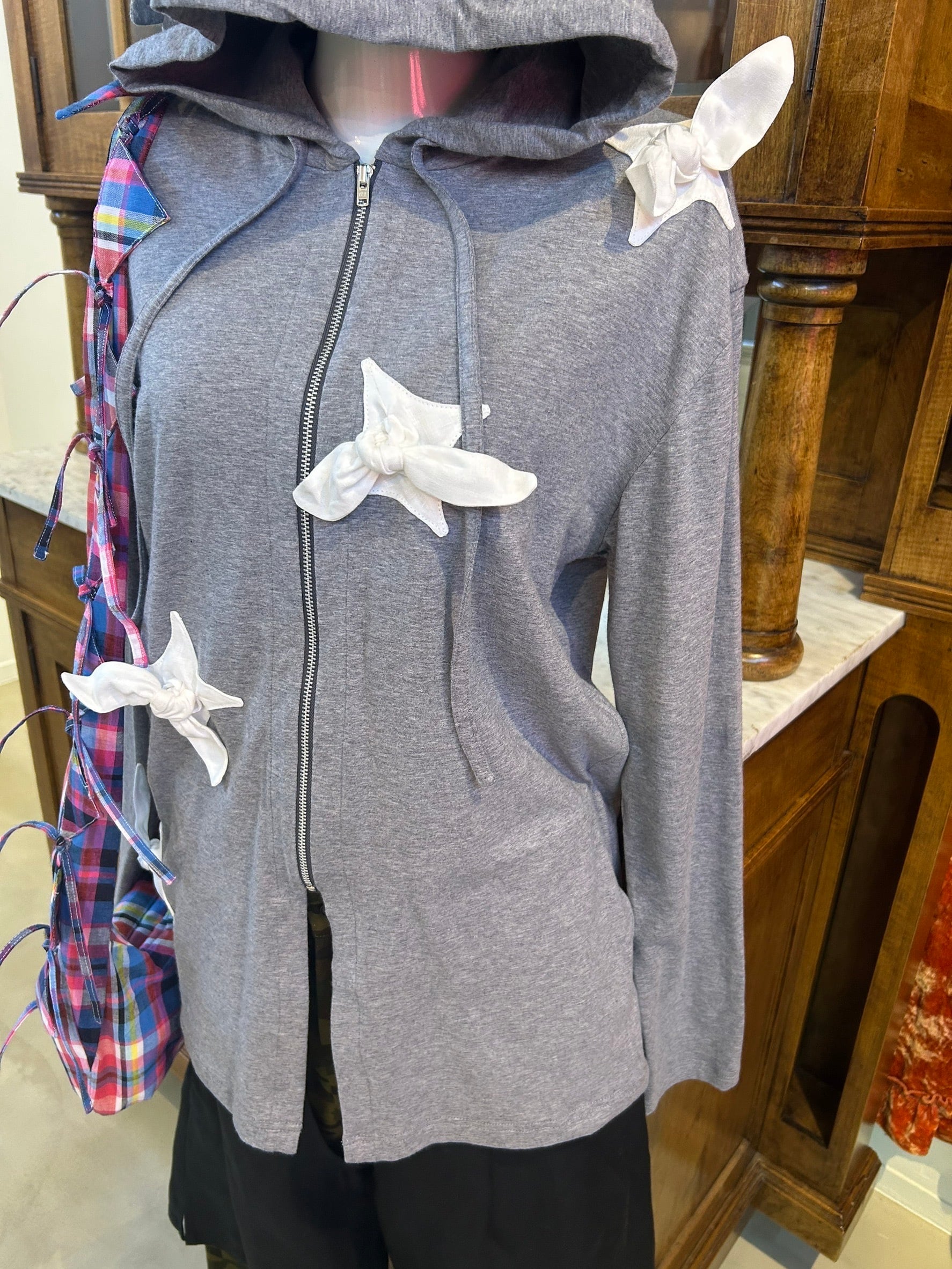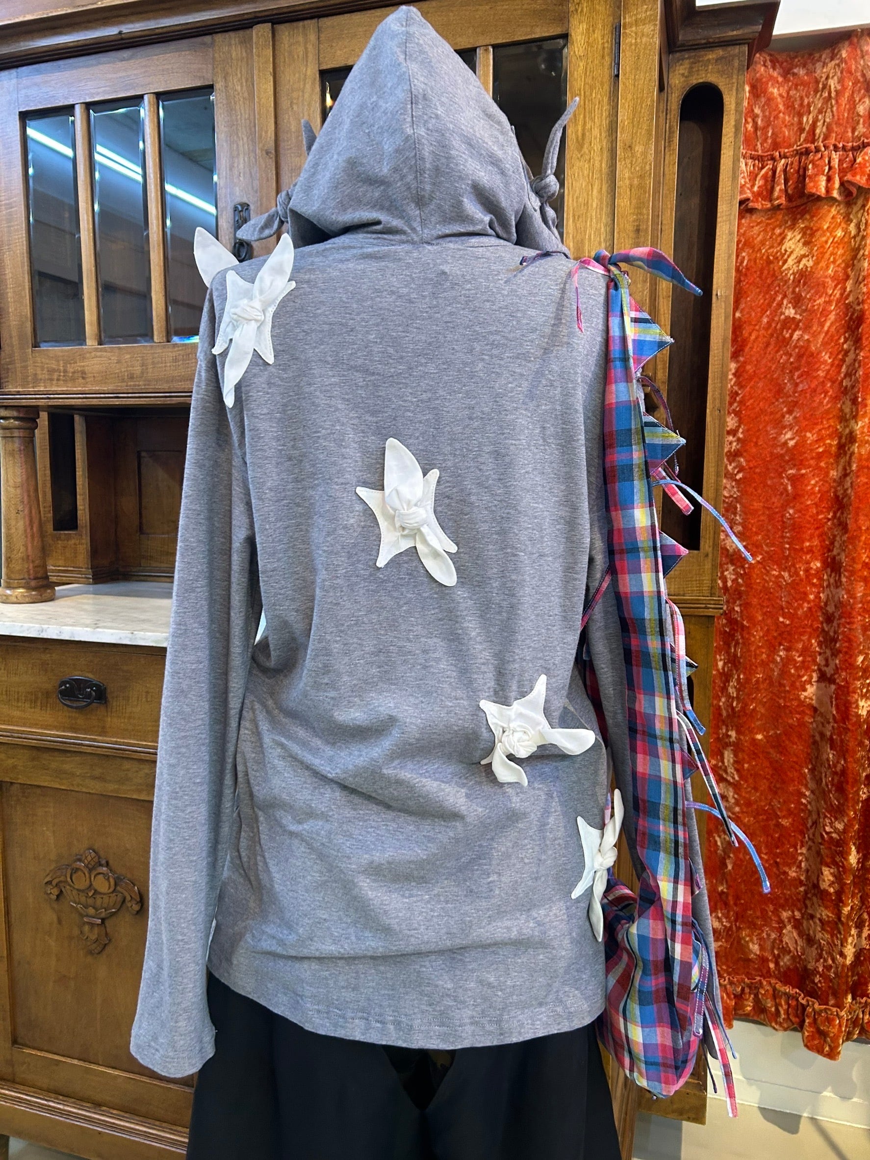 結び目やドレープを用いたユニセックスなシルエットは、強さと繊細さをあわせ持つ。