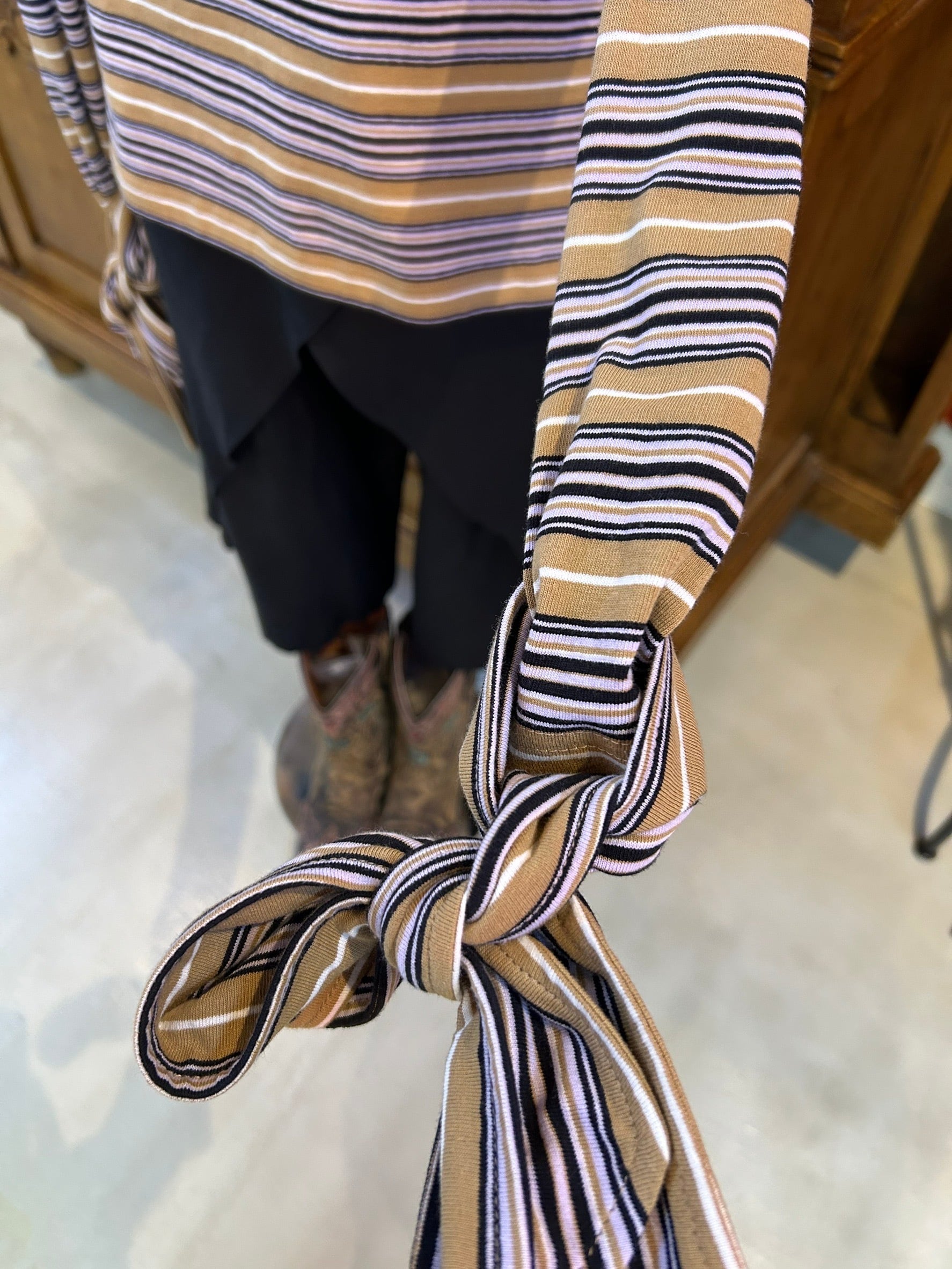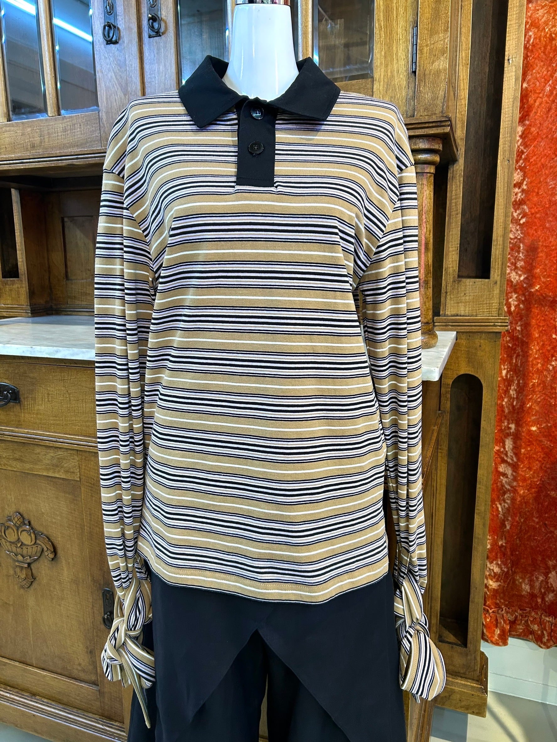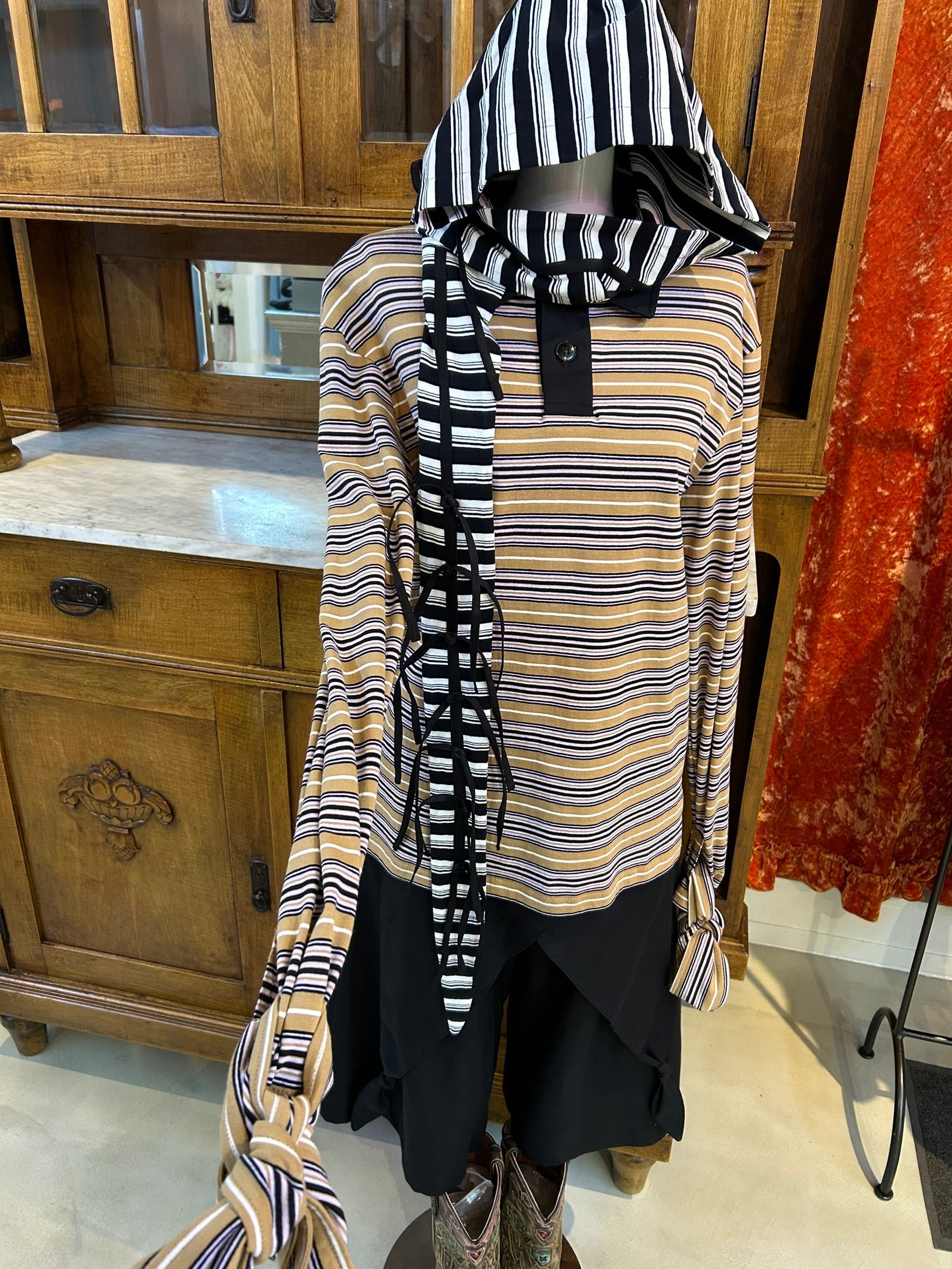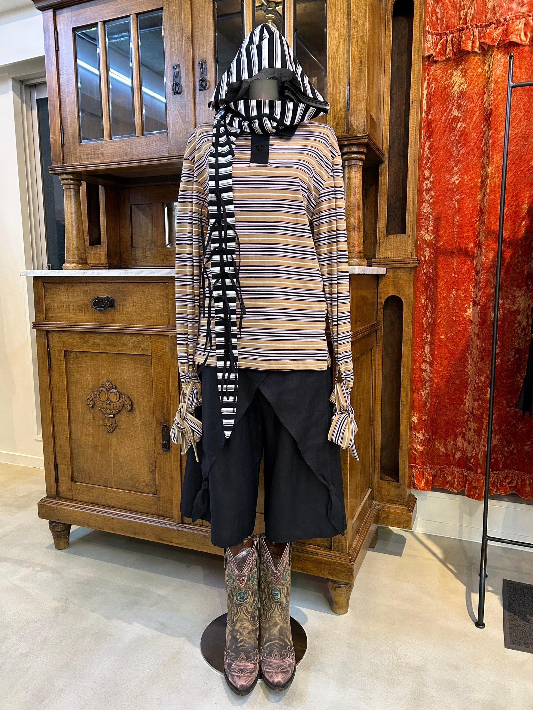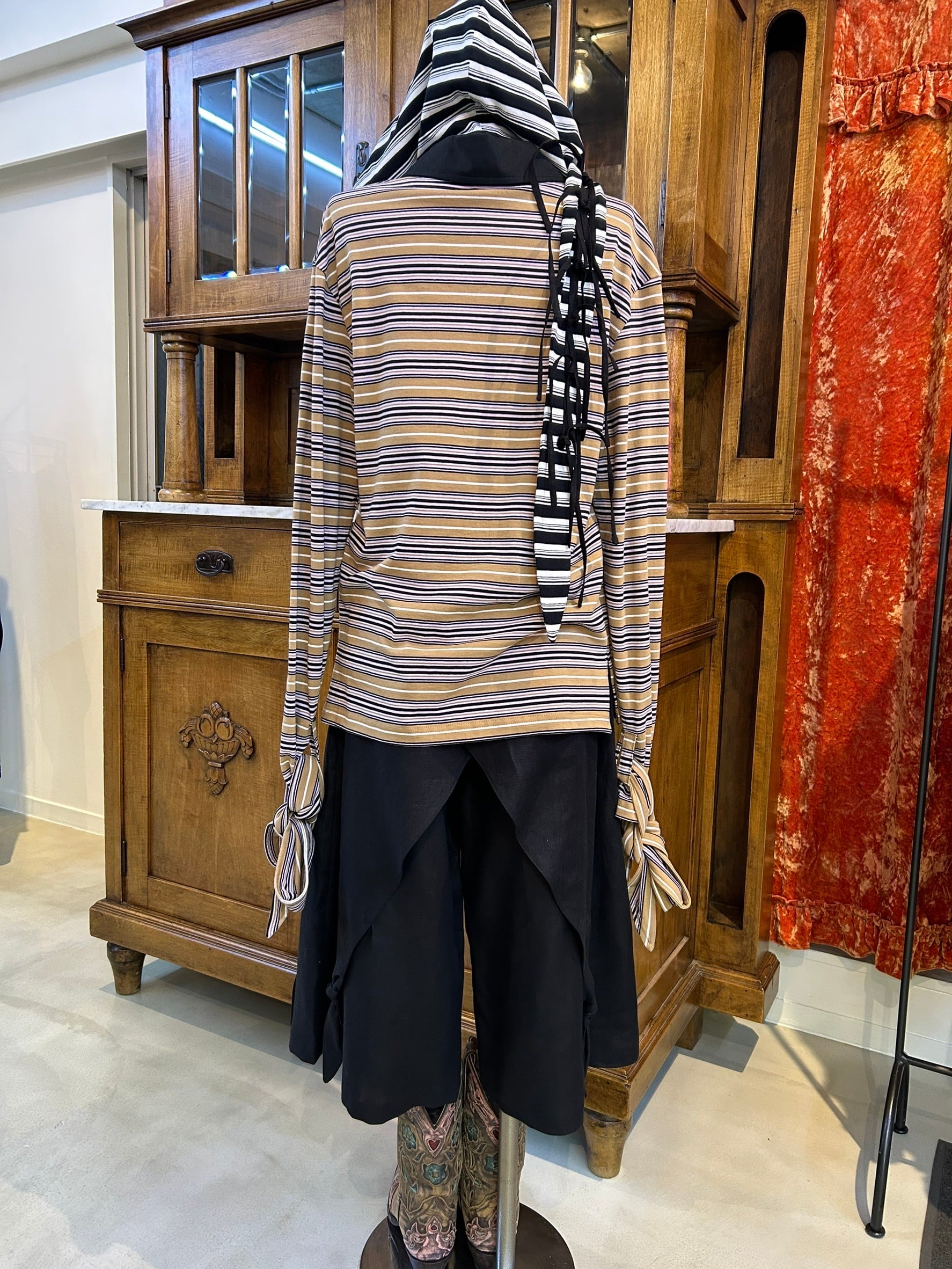 結び目やドレープを用いたユニセックスなシルエットは、強さと繊細さをあわせ持つ。