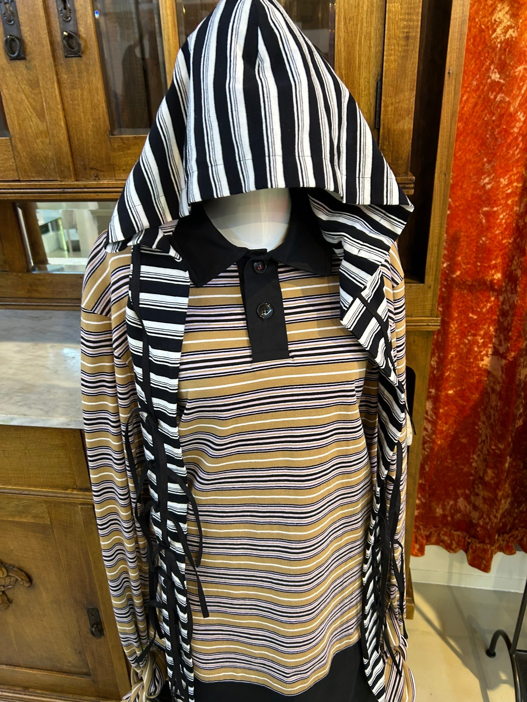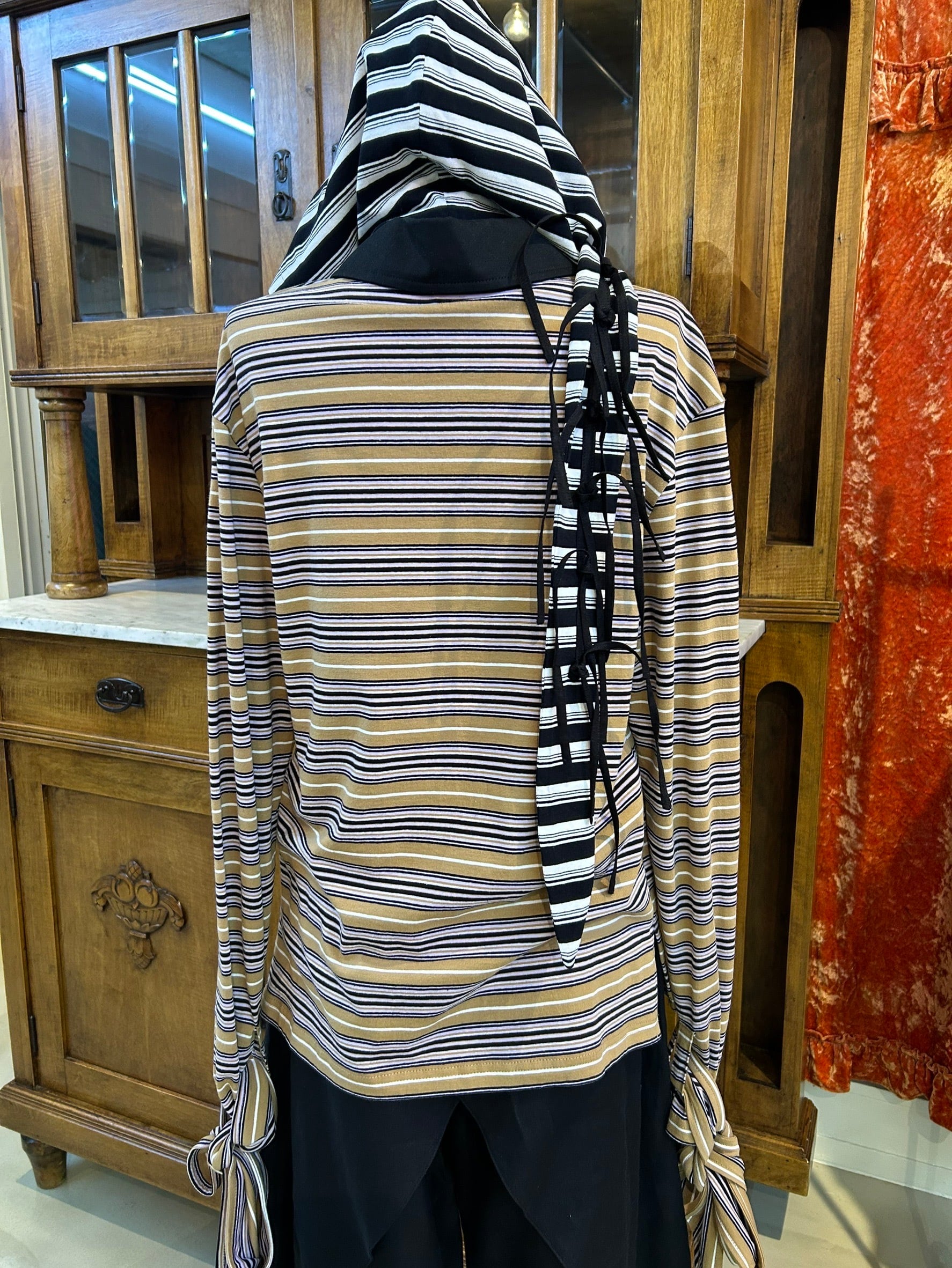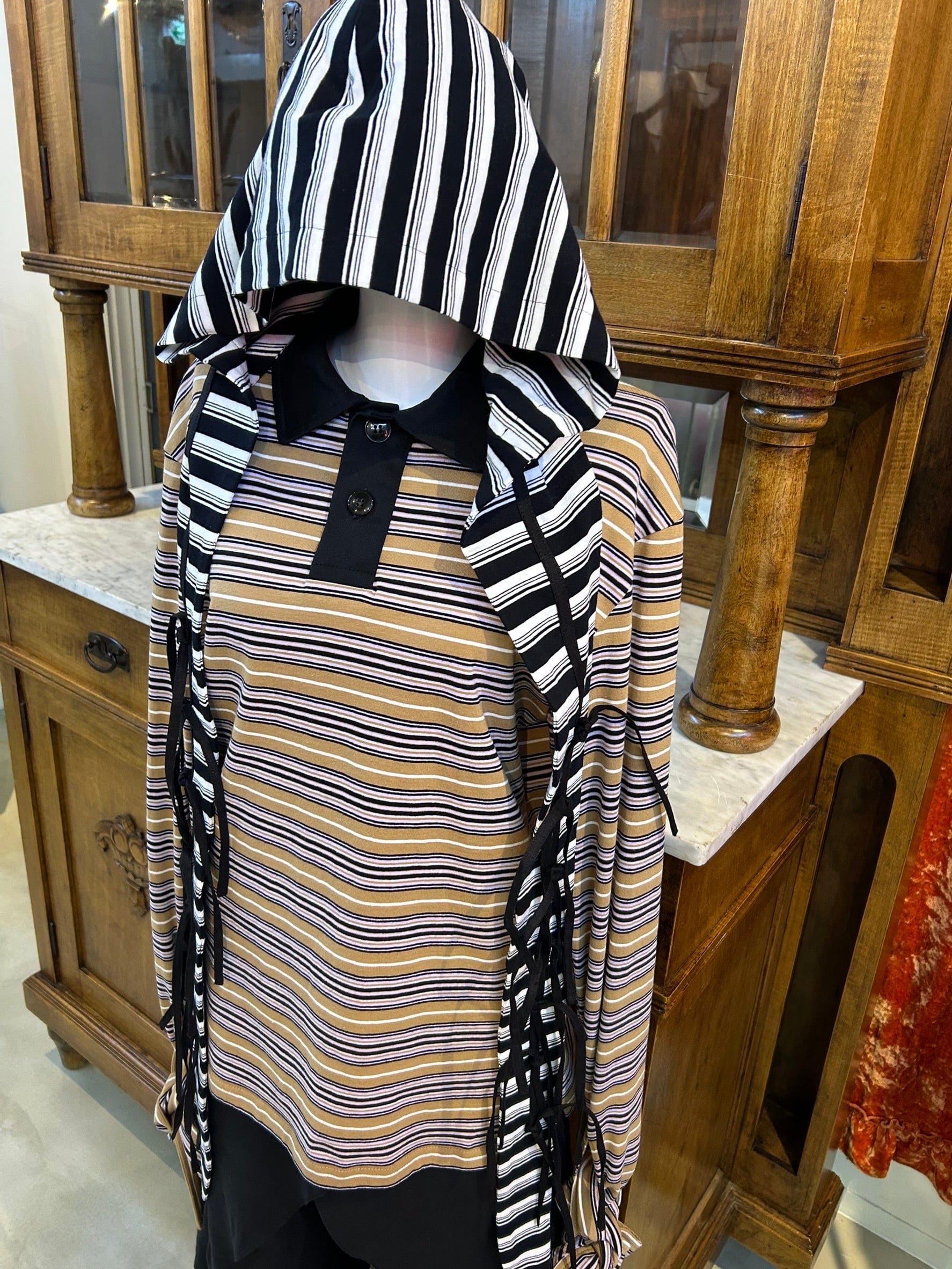 結び目やドレープを用いたユニセックスなシルエットは、強さと繊細さをあわせ持つ。