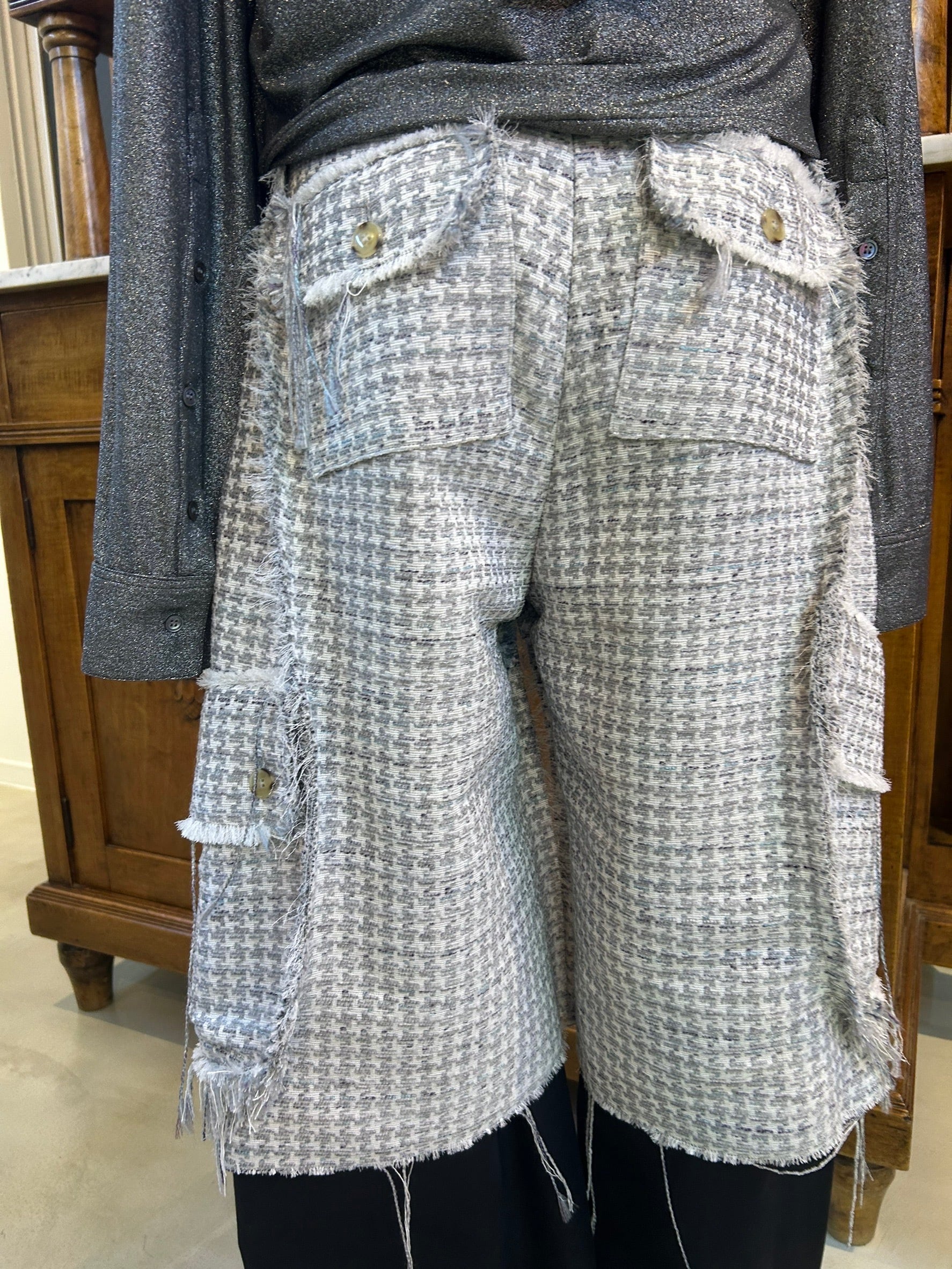 結び目やドレープを用いたユニセックスなシルエットは、強さと繊細さをあわせ持つ。