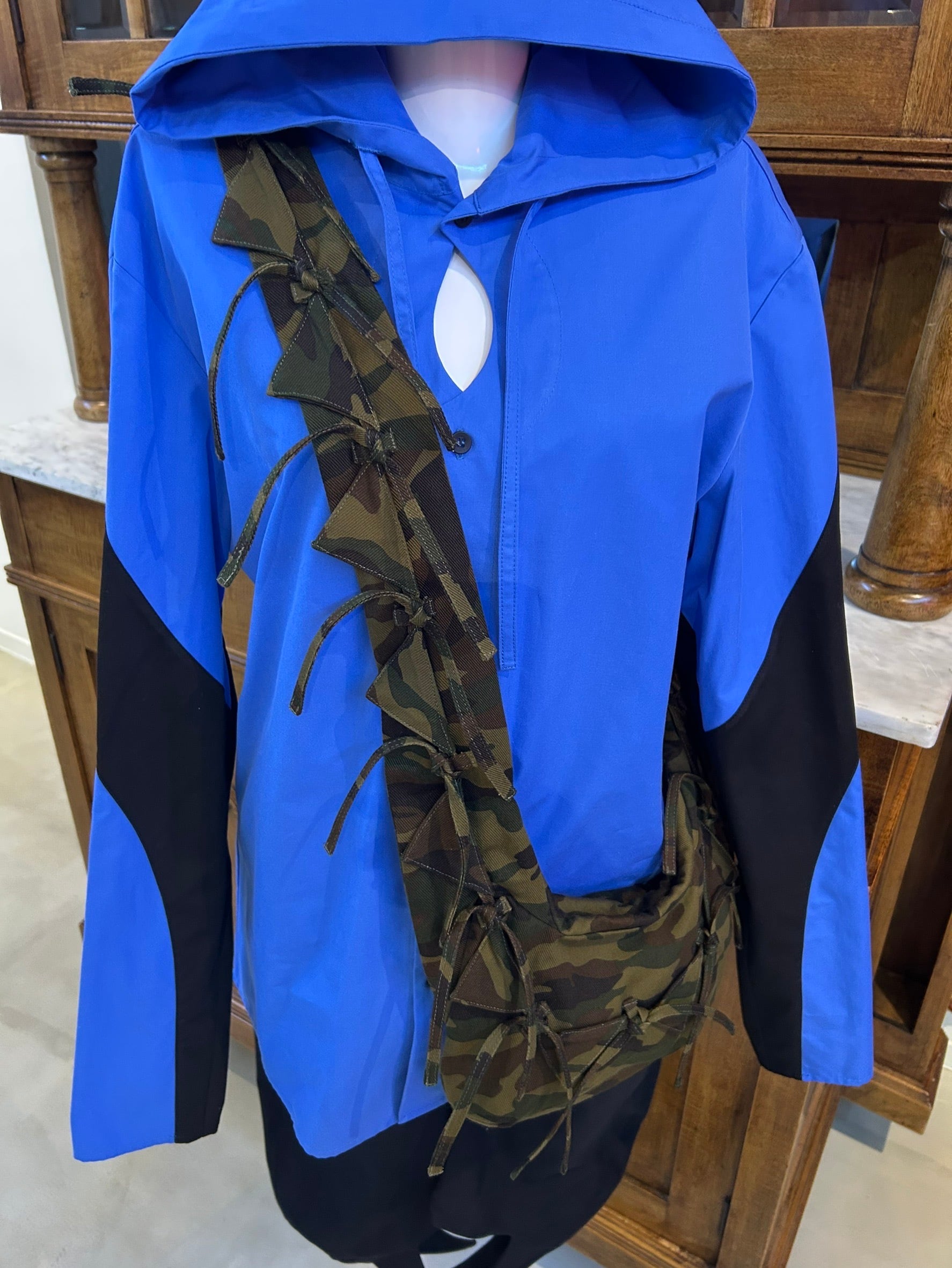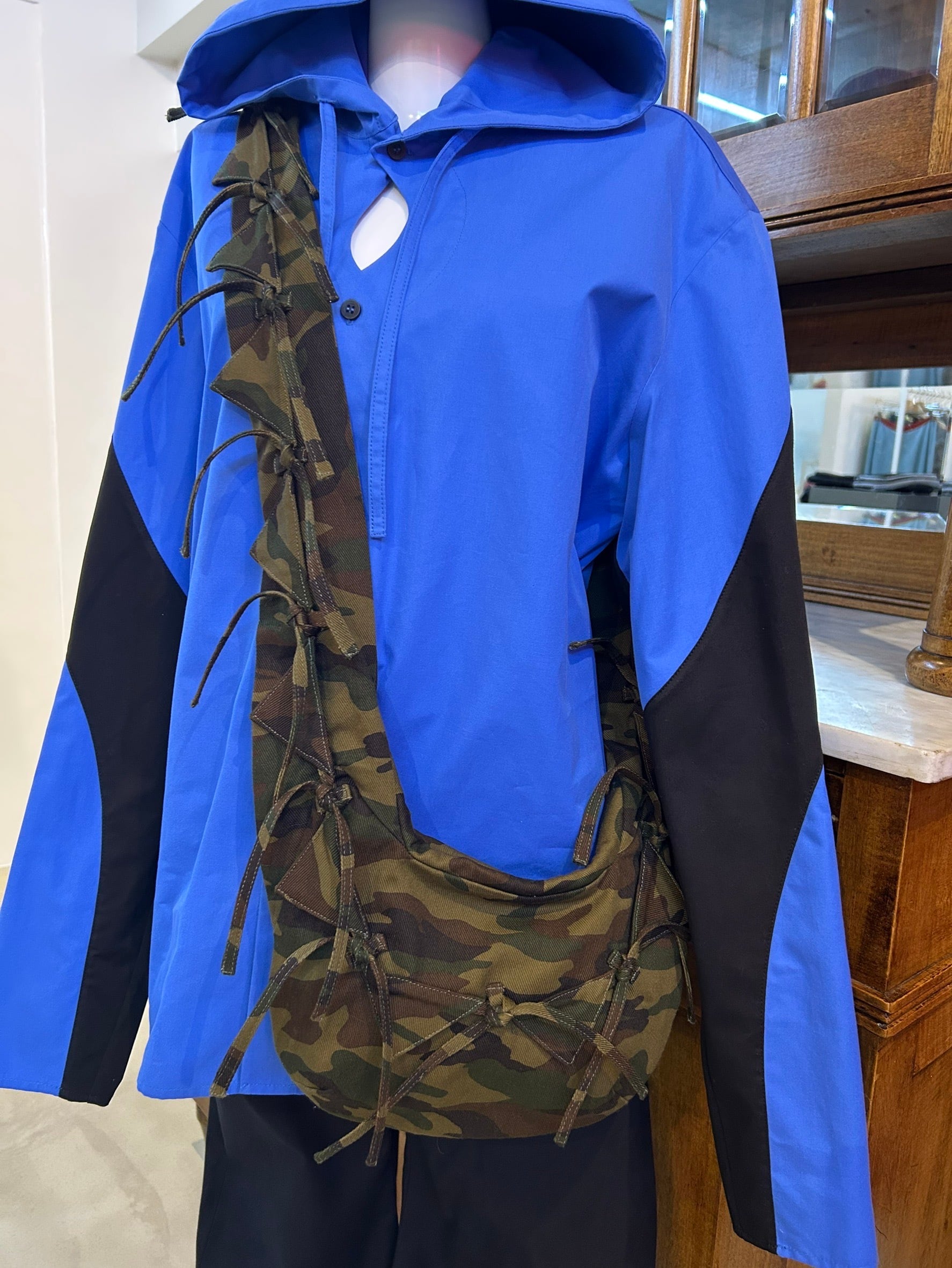 結び目やドレープを用いたユニセックスなシルエットは、強さと繊細さをあわせ持つ。