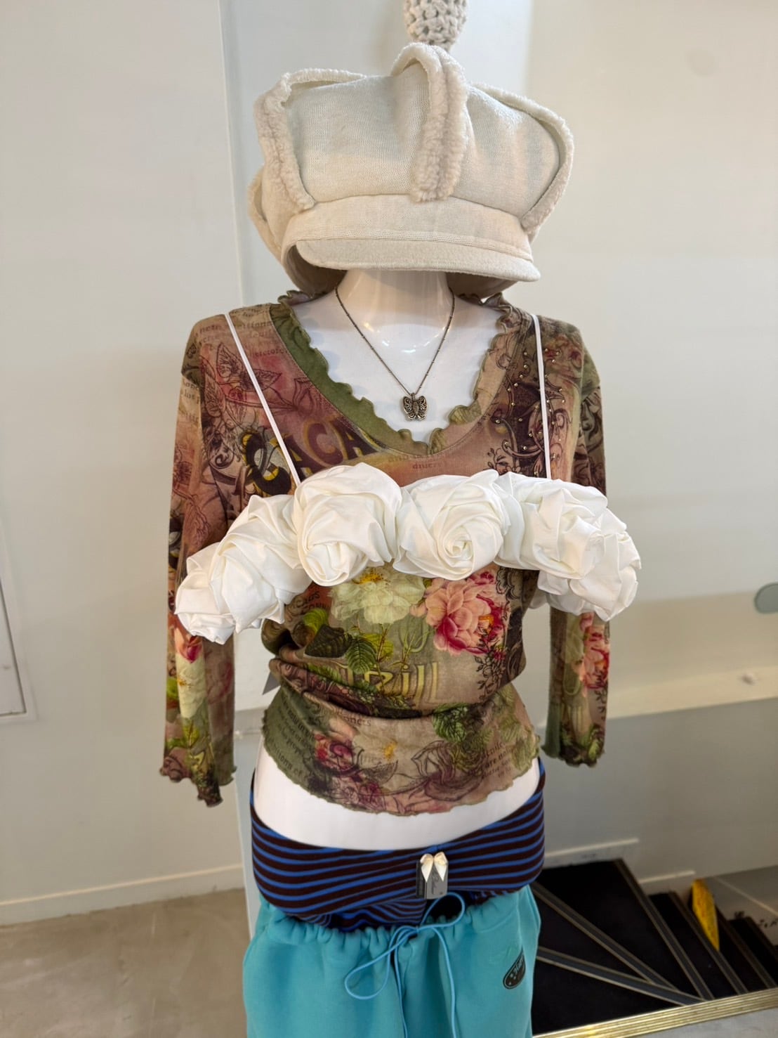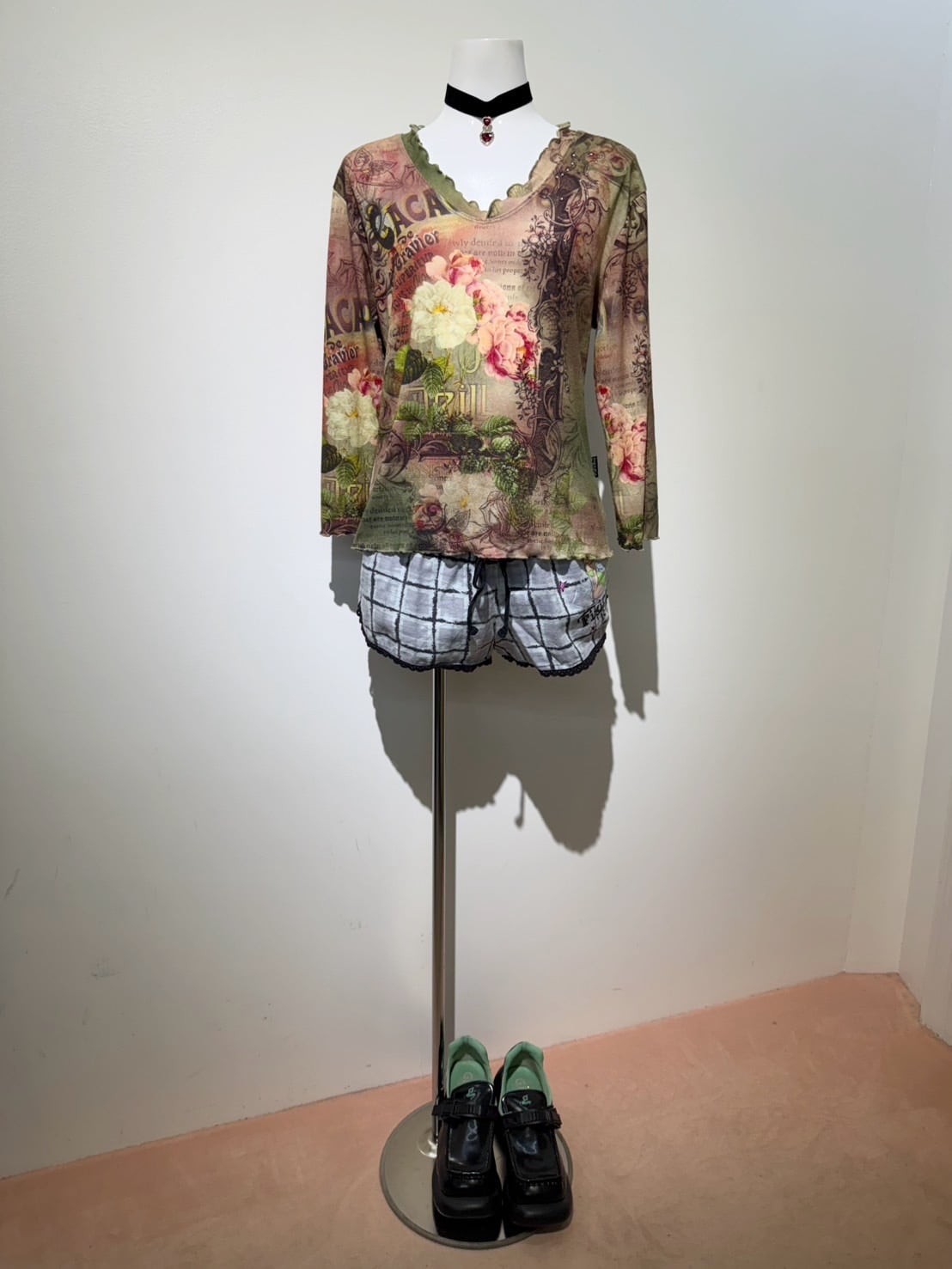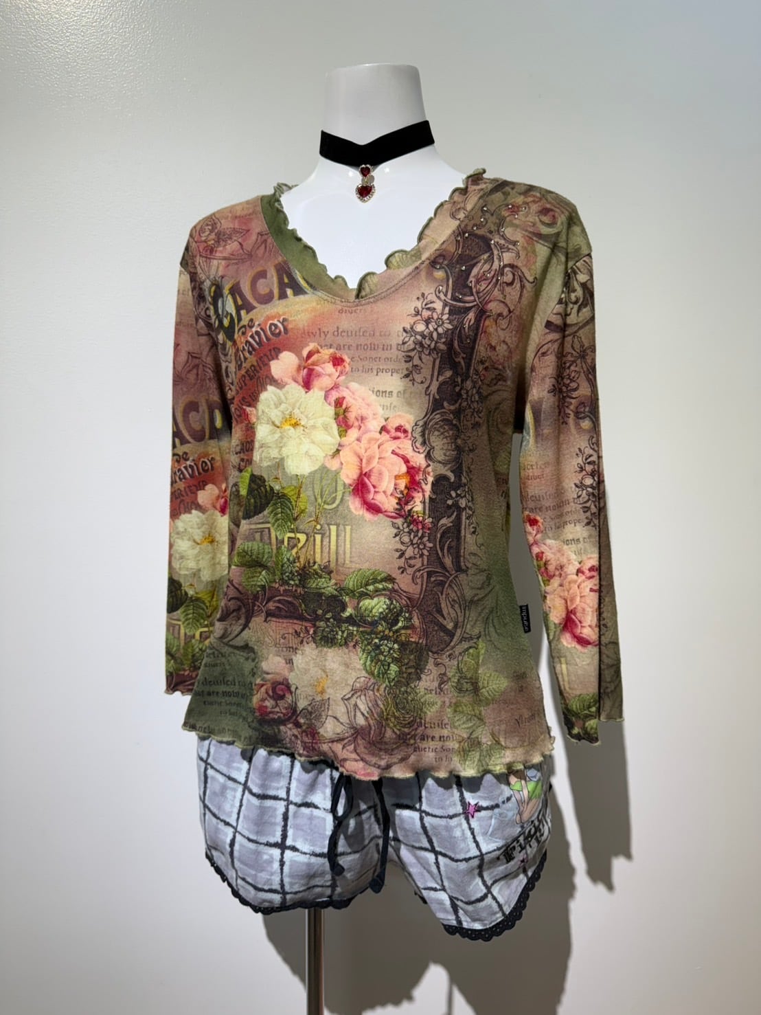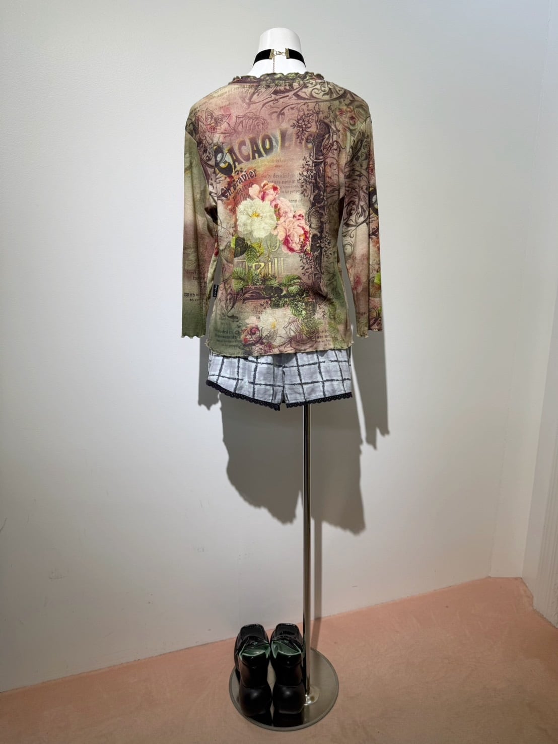 素材: Polyester(表記なし) サイズ: M(表記)肩幅38cm 袖丈43cm 身幅44.5cm 身丈52cm 襟フリル幅2.5cm ダメージ: 写真14〜16枚目のような毛玉があります。 Made in USA